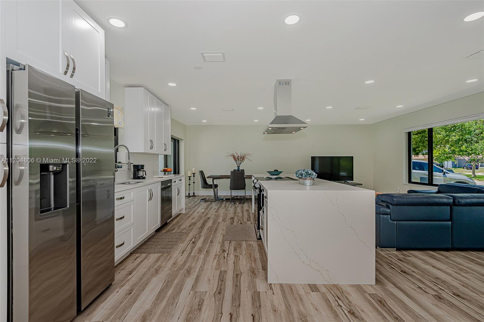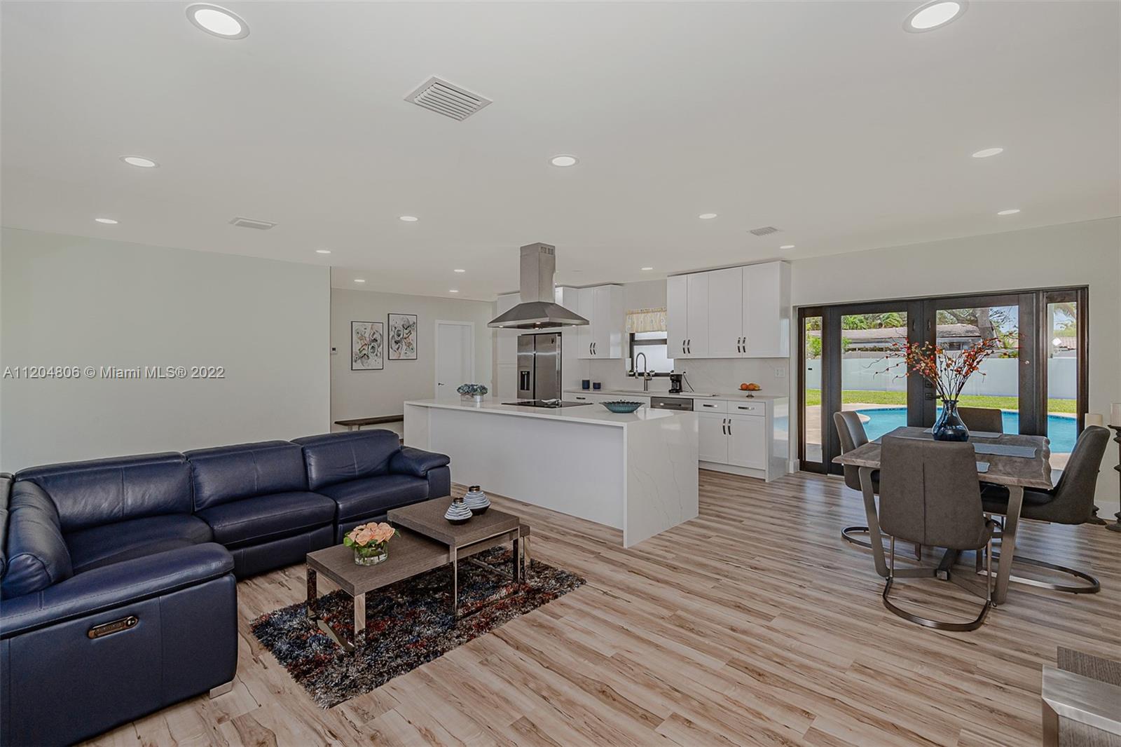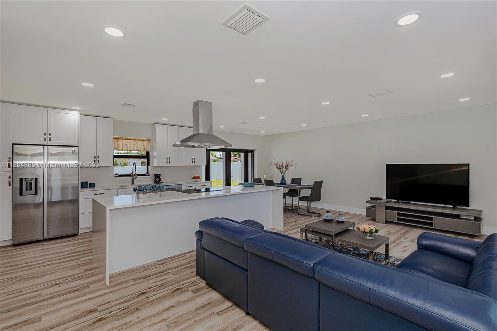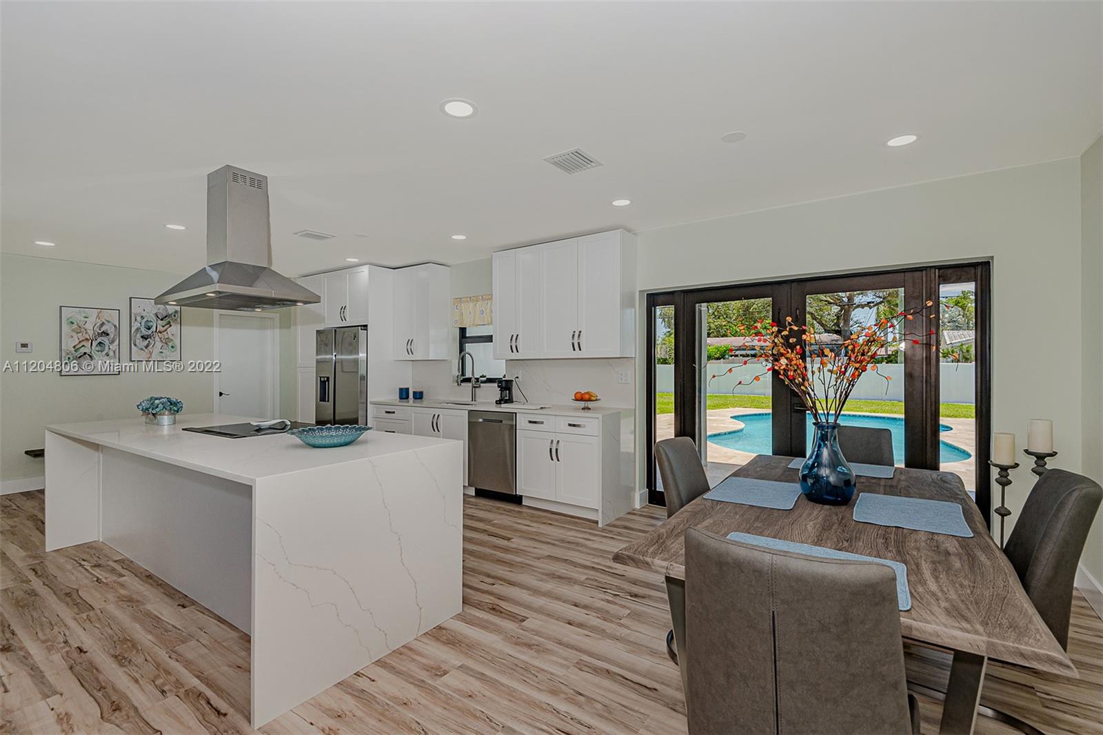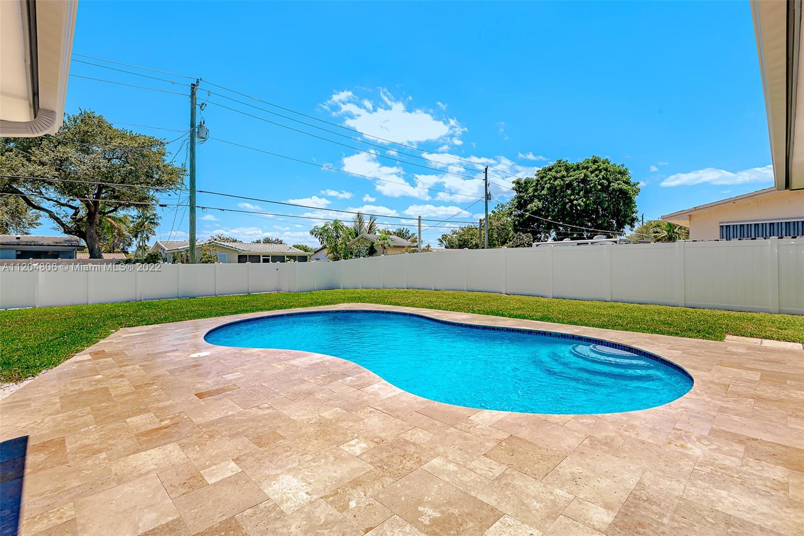 Fully remodeled Hills 3/3 gem on oversized fenced lot with stunning pool. All new with high impact windows and doors, new plumbing including source and drain lines, all new beautiful flooring, full slab quartz counters in kitchen including island and baths. New HVAC system, recessed lighting plus a newly refinished pool complete with gorgeous new sealed French pattern marble pool deck and front entry. Full three bedrooms with ample closets. All new high end stainless appliances including updraft outdoor venting range hood. Solid hardwood cabinets throughout. All new 3rd full bath is cabana, perfect for outdoor family entertaining. New high quality white PVC fencing on oversized lot with double gate from back alley - great for boat or RV access. Adj sq ft is Living sq ft per Seller.
