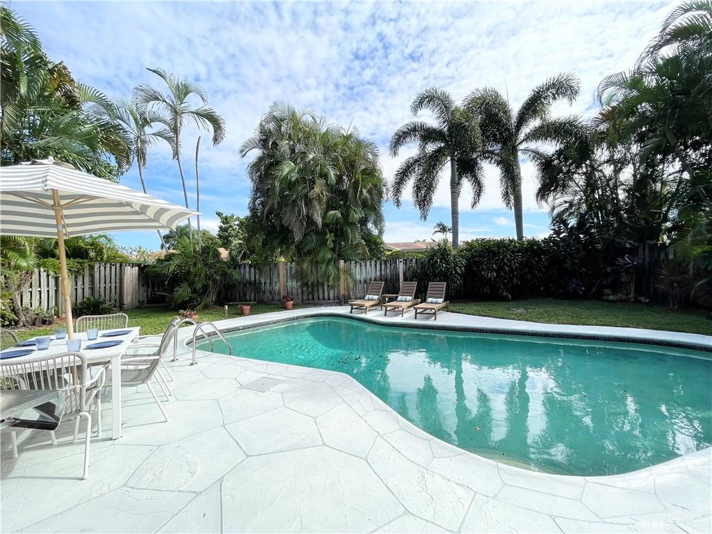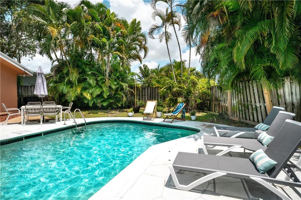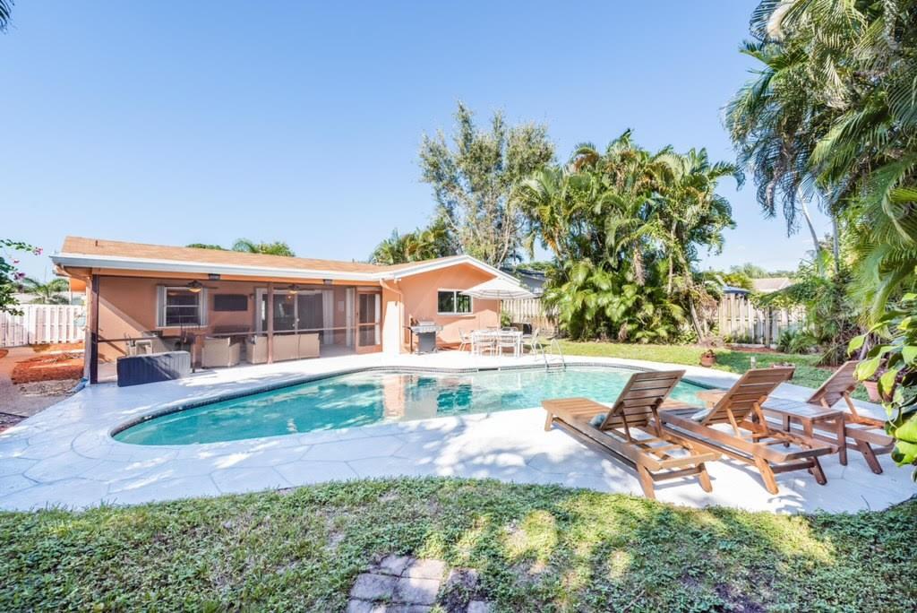 Look No Further! Great opportunity for investors and primary residents alike. This beautifully updated move-in ready pool home is currently being used as a second home. This 3-bedroom, 2-bathroom with a 1 car garage masterpiece sits on a large lot in Palm Aire Village with a fully fenced and very private backyard. It features a 2021 Roof, impact windows, new electric panel, a new pool heater. Ceramic tiles throughout the main living areas and the large primary bedroom which has a walk-in closet with custom cabinetry. The custom kitchen has stainless steel appliances, granite countertops and recessed lighting. Relax on the huge covered screened-in patio or soak up the sun while laying poolside in your tropical backyard. Close to the beach. NO HOA