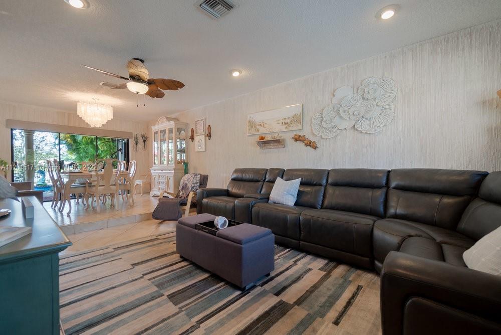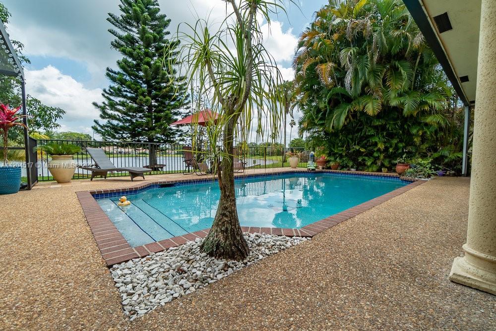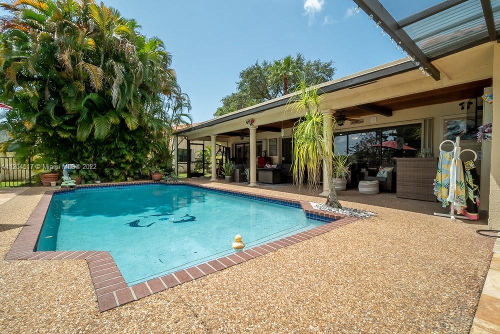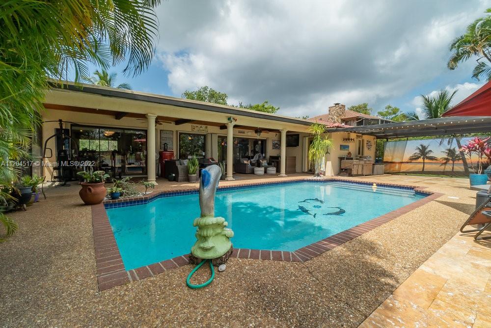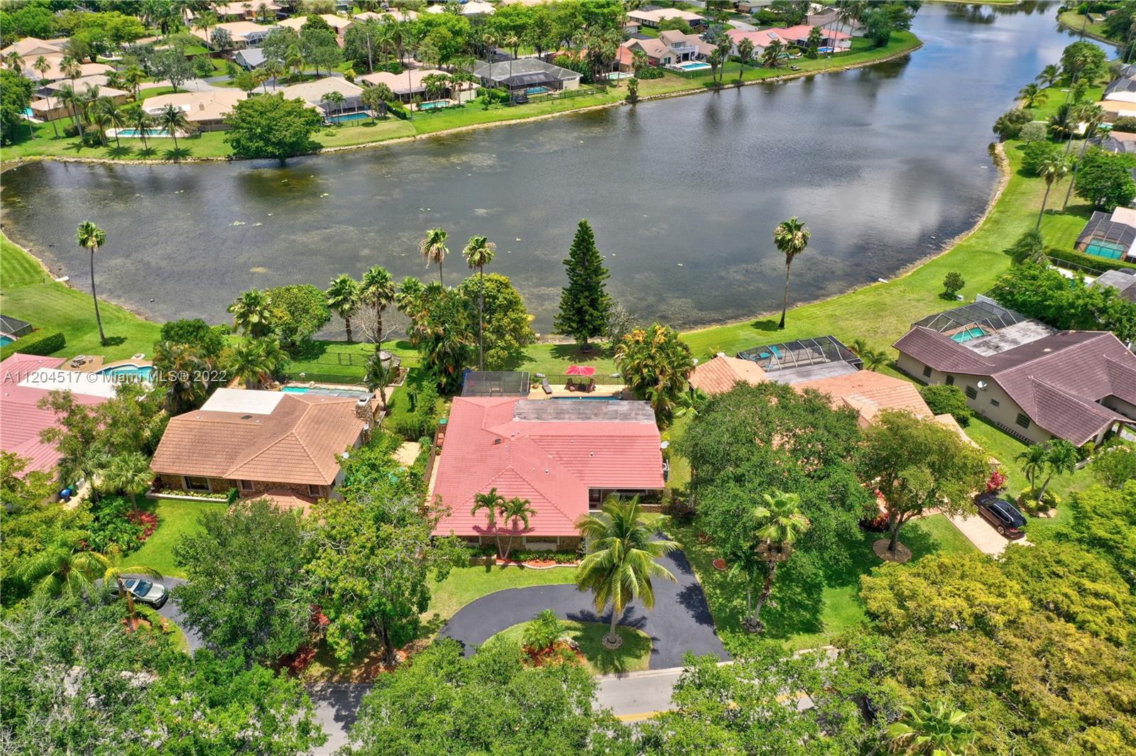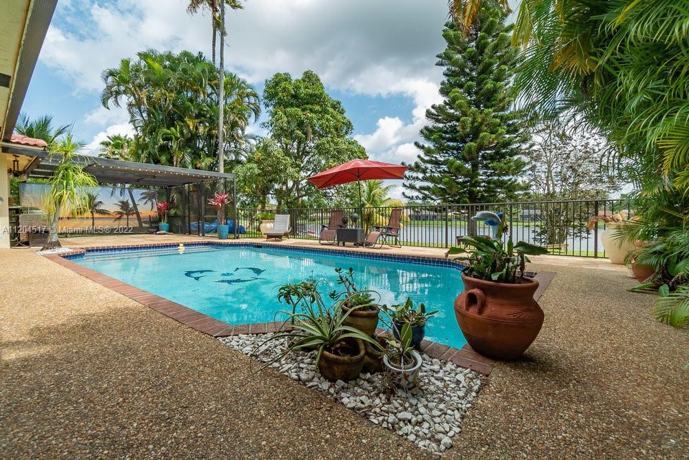 Single-family home is a one story, 4 bedroom, 2 bathroom, 2 car garage with pool in the tree-lined neighborhood of Oakwood. Nestled between a nature filled lake and a Wetland Preserve/park, you will find your forever Staycation home. Sunrise fishing, Sunset canoeing. Bright open floor plan extends to outdoor living, with outdoor kitchen, a magnet for family time. Dancing and pool parties. Kitchen has granite counters, stainless steel appliances, wood cabinets with pull out drawers, pantry, breakfast bar and wet bar. Unique textures throughout. Imported river stone. Mango and coconut trees. Entire yard has sprinkler system sourced from lake. Private side deck. Hurricane accordion shutters. Top schools. Close to shopping & dining. Filled with love! No HOA.