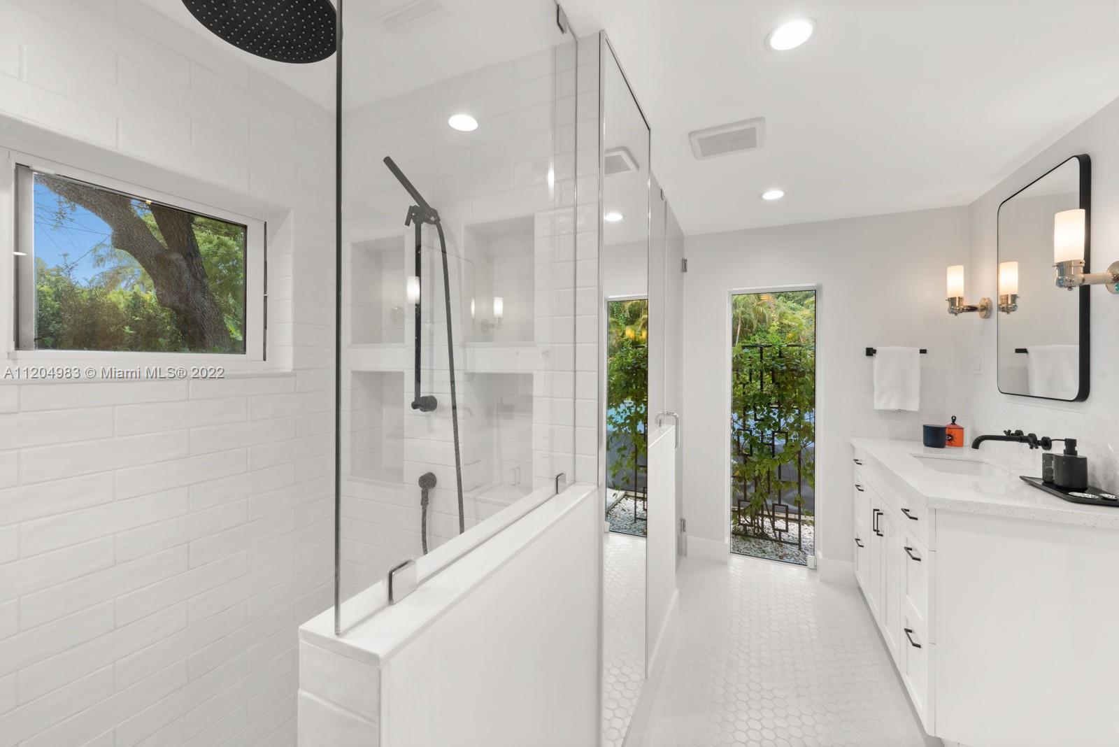 Fully renovated 1930s bungalow in an oversized 11,500 SqFt lot in the heart of coveted Miami Shores. This immaculate pool home offers all the charm and character of a 1930s home with the comfort of modern-day living. Featuring 3 bedroom, 2 bathrooms + den, this home has new everything: roof (2020), electrical, plumbing and impact windows and doors, kitchen, and bathrooms. The master suite features double custom walk-in closets and a large en-suite bathroom with double vanities and a walk-in shower. Additional features include vaulted ceilings, a heated pool, an oversized professionally-landscaped yard, tons of natural light and a laundry room. The home is conveniently located within walking distance of downtown Miami Shores, easy access to i95 and it is NOT within a flood zone.