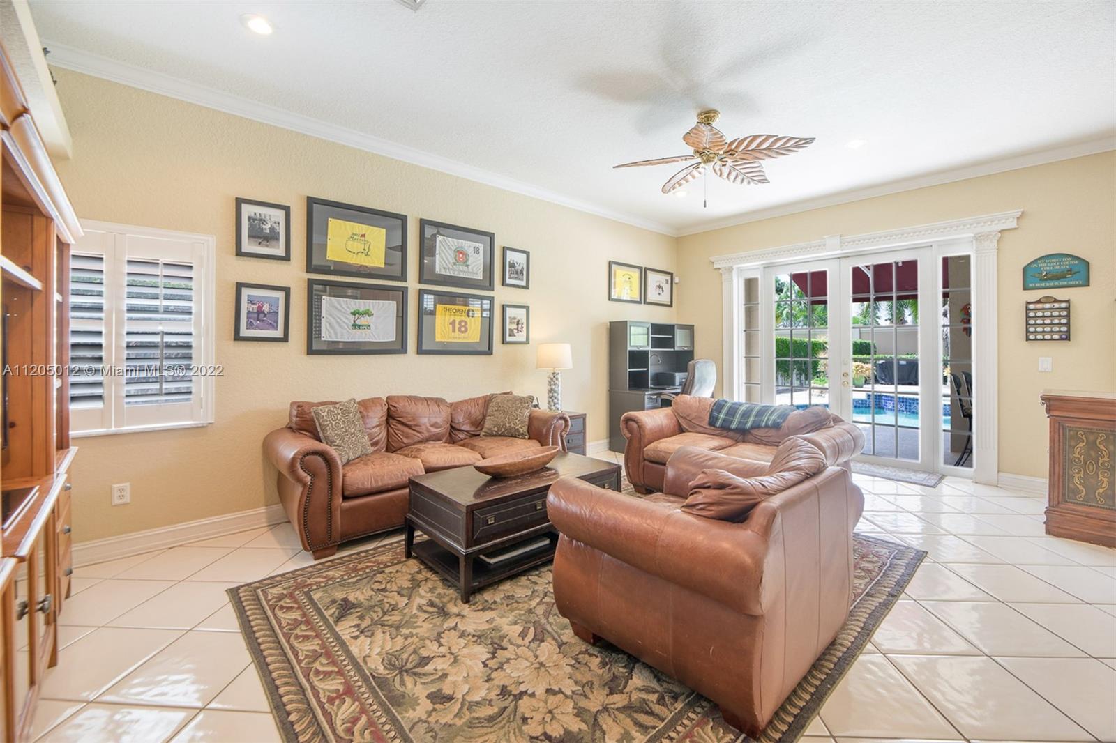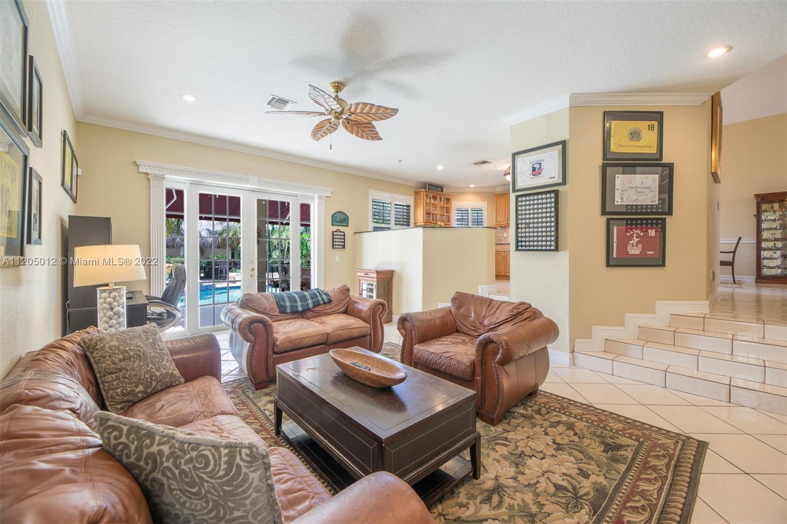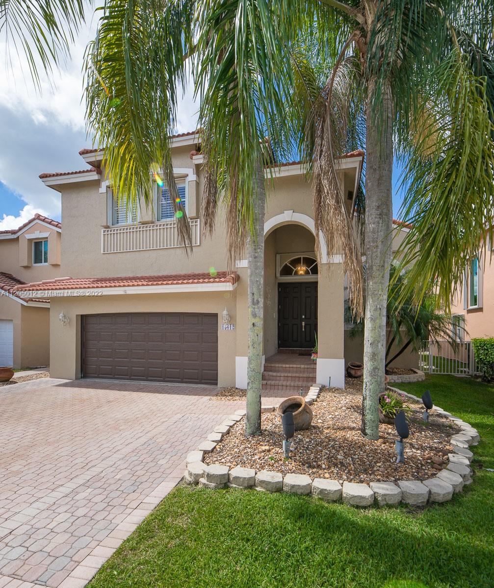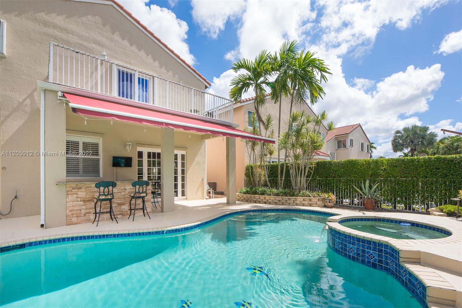Stunning Entertainer's Paradise! Situated in prestigious and much sought after Grand Palms Golf Resort. First time ever on the market, this beautiful home features 4 spacious bedrooms and 3 full baths, updated kitchen w granite counters, wood cabinetry and SS appliances. Large family room, formal living room, formal dining room with very high ceilings, laundry room and first floor cabana bath. NEW ROOF! Spectacular outdoors with built-in bar, outstanding landscaping, large pool and jacuzzi spa, 12X20 Tikki Hut, and oversized balcony coming off the main bedroom to overlook your fabulous lush and inviting backyard space. A+ school district, Whole Foods, Publix and Costco nearby and 25 minutes from FLL.