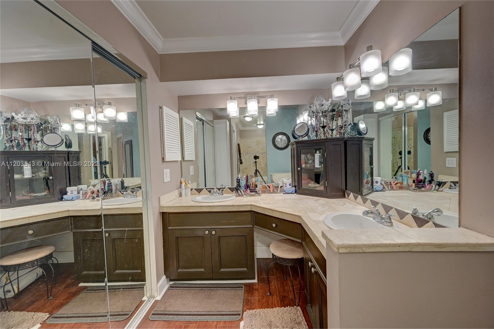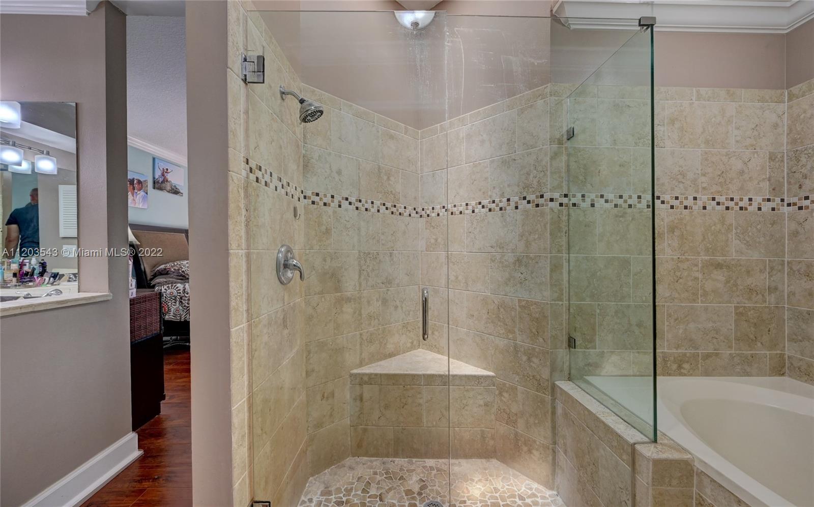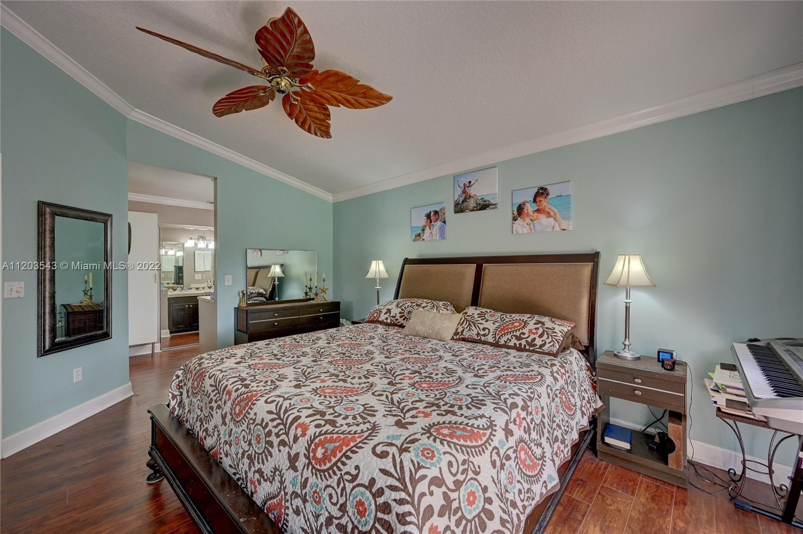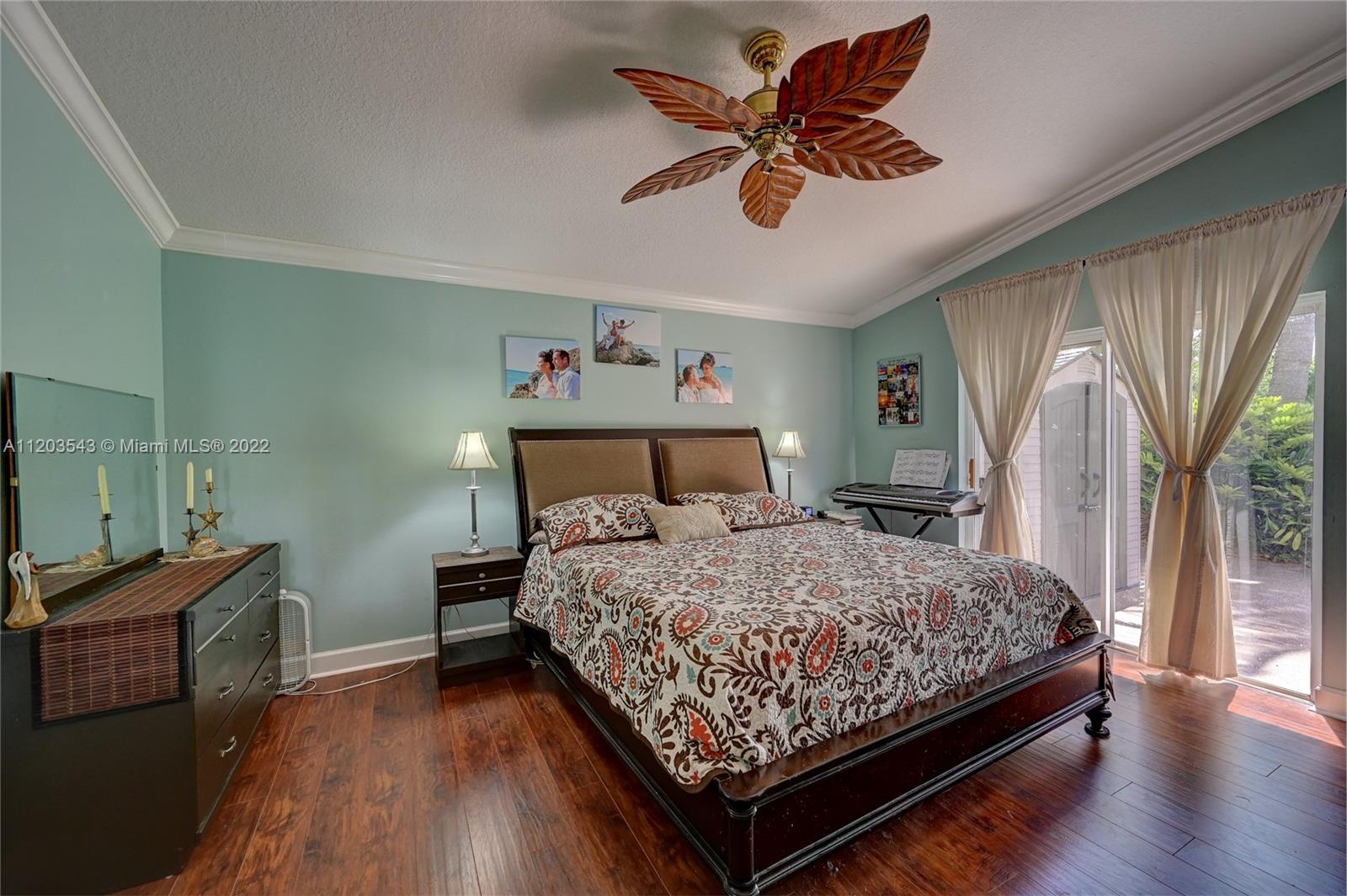 Rarely Available Wedgewood Cove in Shenandoah! Lake view on a cul-de-sac! Well maintained 2 story 4/2.5 with the master on the first floor. Updated kitchen with quartz counters and stainless appliances. Updated bathrooms as well. Open living space with crown molding, natural stone floors. Upstairs and back patio have accordion shutters, hurricane glass in living room. Roof was replaced in 2010. The attached garage has been made into a gym (equipment is negotiable); but can easily be converted back to garage. Washer/dryer stay and the shed in the back yard and the yard equipment inside are negotiable as well. Beautiful landscaping to go with the beautiful view and the landscape lighting enhances the outdoor space. Showing on Thursday and Friday May 19 and 20, open house on Saturday May 21.