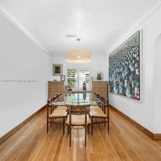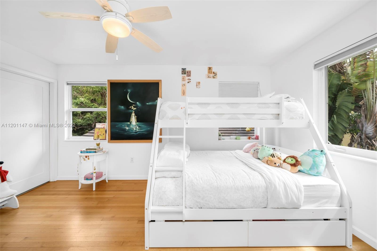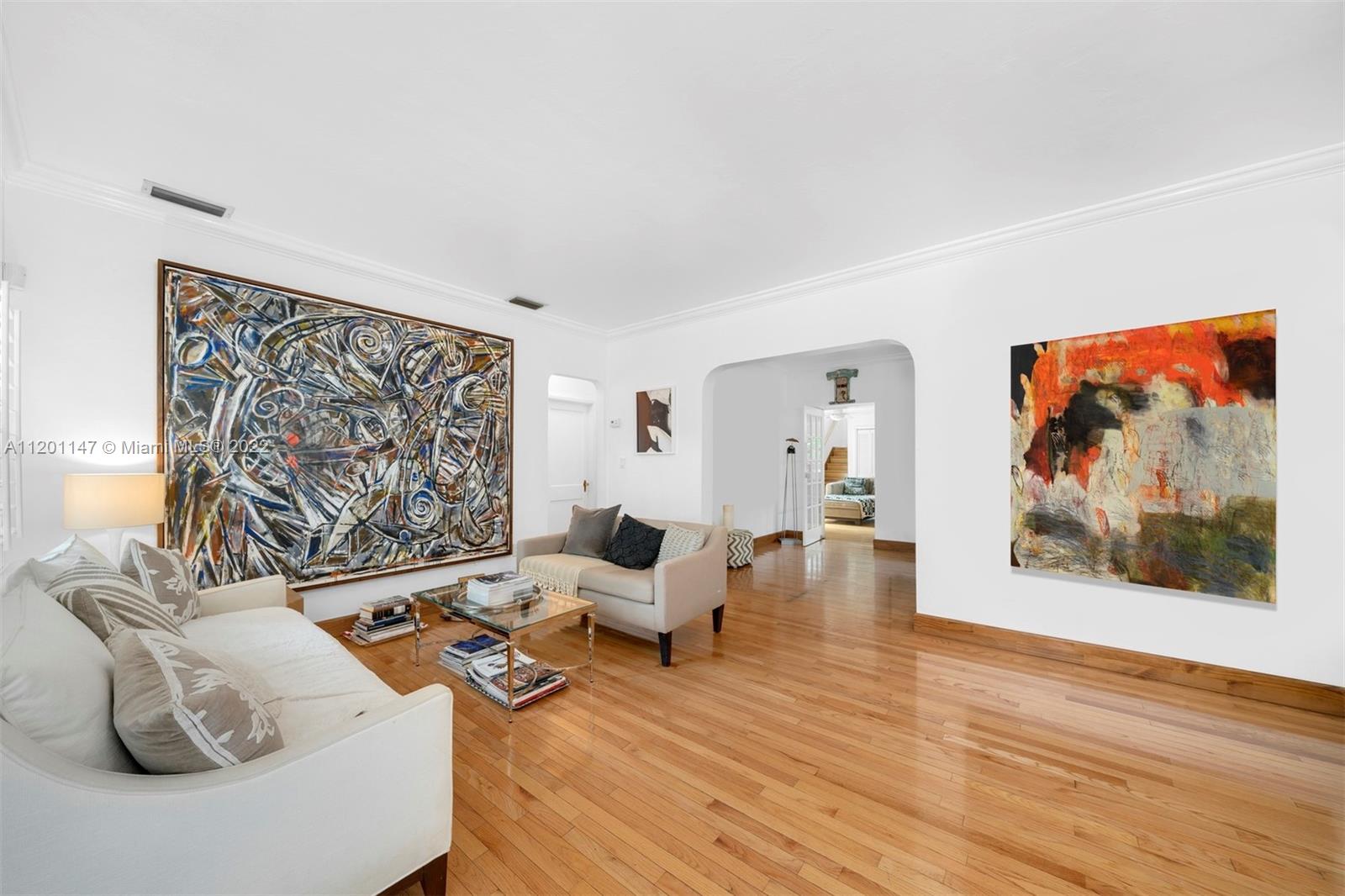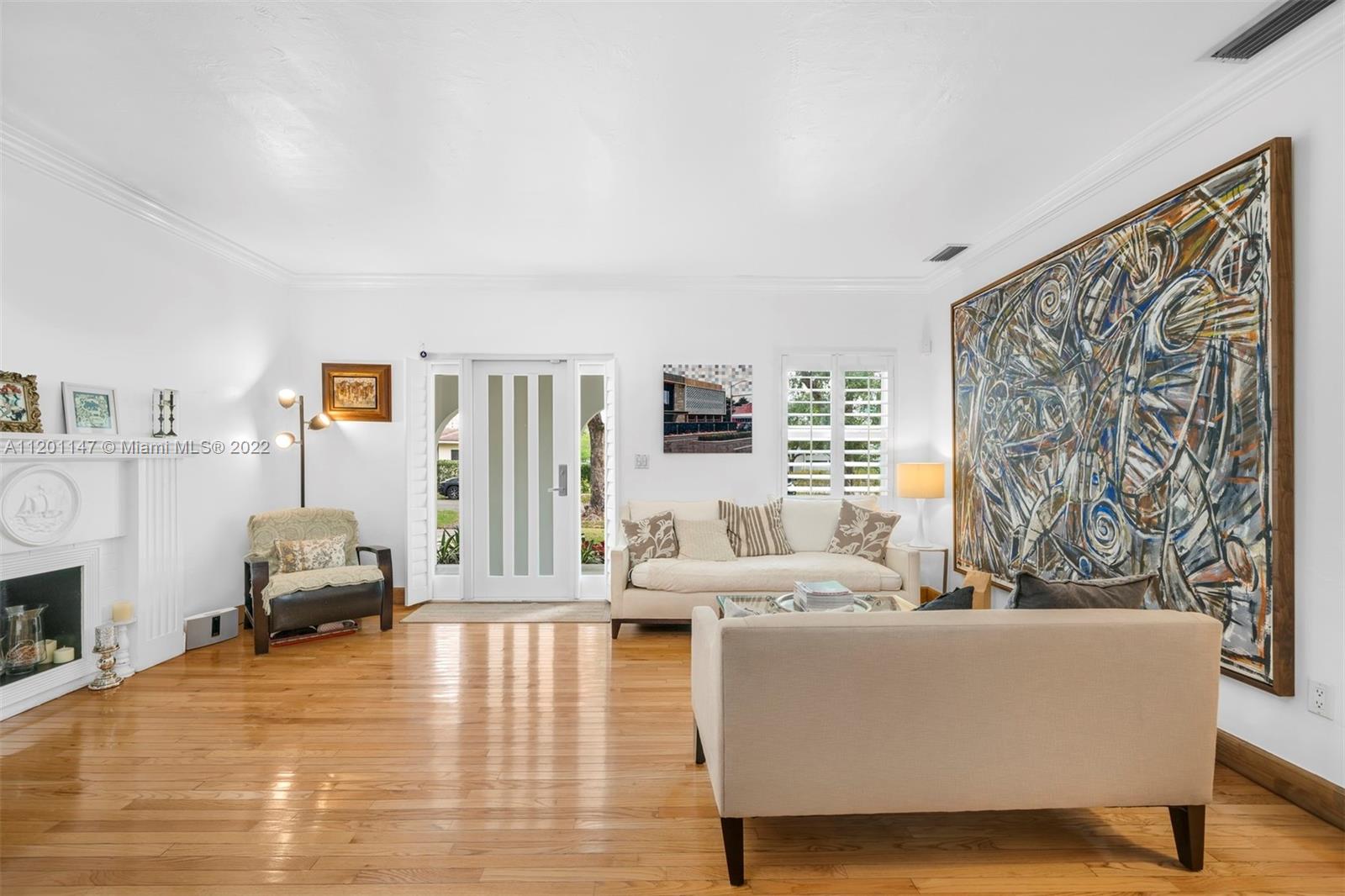 Pristine Coral Gables home with 4 Bedrooms and 3 & 1/2 Baths, in immaculate move-in condition. The living room & dining room offers open space for entertaining, including built-in sideboard & cabinets. The Great Room offers HUGE entertaining areas with large kitchen, separate breakfast nook, bookshelves, 1/2 bath, French doors open garden terrace. Two Bedrooms downstairs with separate bath. Second floor master bedroom suite and an additional large bedroom, both with on-suite bathrooms and HUGE walk-in closets. Bonus room garage conversion with AC, closets & mezzanine storage. Many home updates including storm windows, plantation shutters throughout, new electric & plumbing, hardwood flooring, and recent flat tile roof. Location offers privacy, safety, and a fabulous tree-lined street.