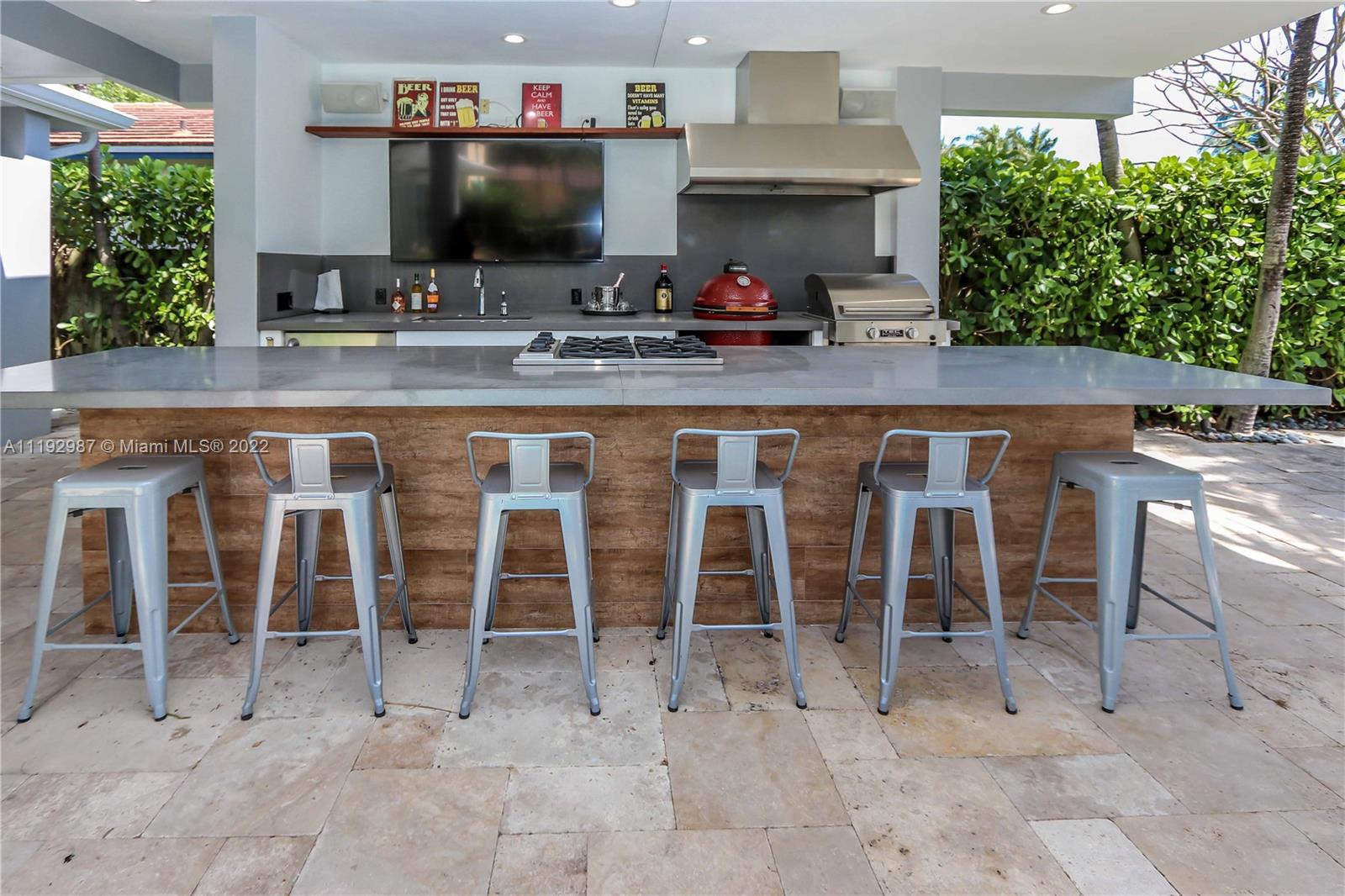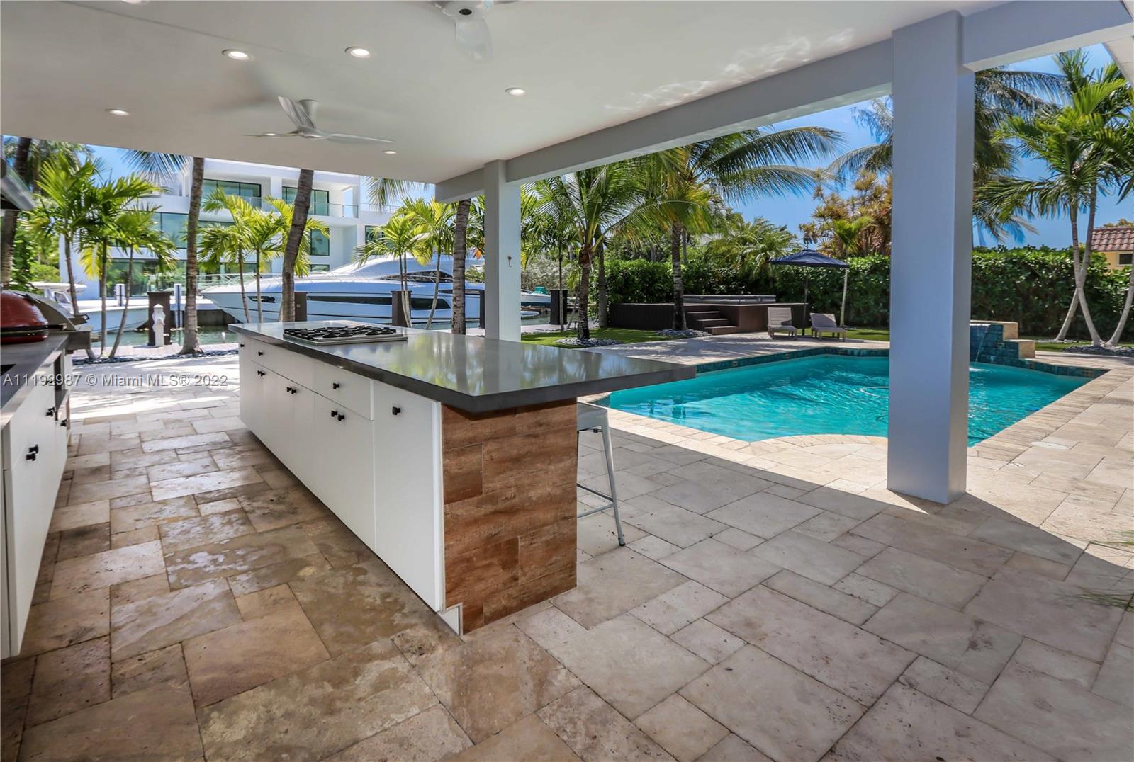 Your piece of paradise on Las Olas, move-in condition! 75ft fully-equipped dock on 90ft canal width; No fixed bridges and just minutes to the Intracoastal Inlet. This waterfront 3 bedrooms 3 1/2 baths is completely remodeled with open floors, impact windows & doors, a working fireplace and equipped with a smart home system. Large master bedroom with own seating/office area featuring electric shutters, large closet and built-in cabinetry. Spectacular summer kitchen built in 2015, with gas stove, Kamado ceramic grill, infrared grill and more, overlooking the pool and water offering all amenities for outside entertainment and relaxation including an outside cabana bath for guests. Large heated salt water pool with fountain and hot tub.