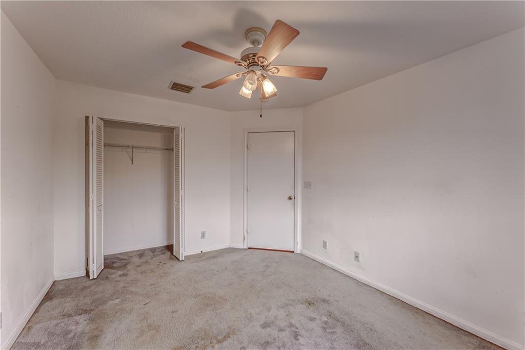 End unit townhome with large fenced yard sitting on a lake. Upstairs has 3 bedrooms, downstairs has a den/media room that could also be used as a bedroom. Half bathroom downstairs. Eat in kitchen with formal dining room as well. Large patio faces west.