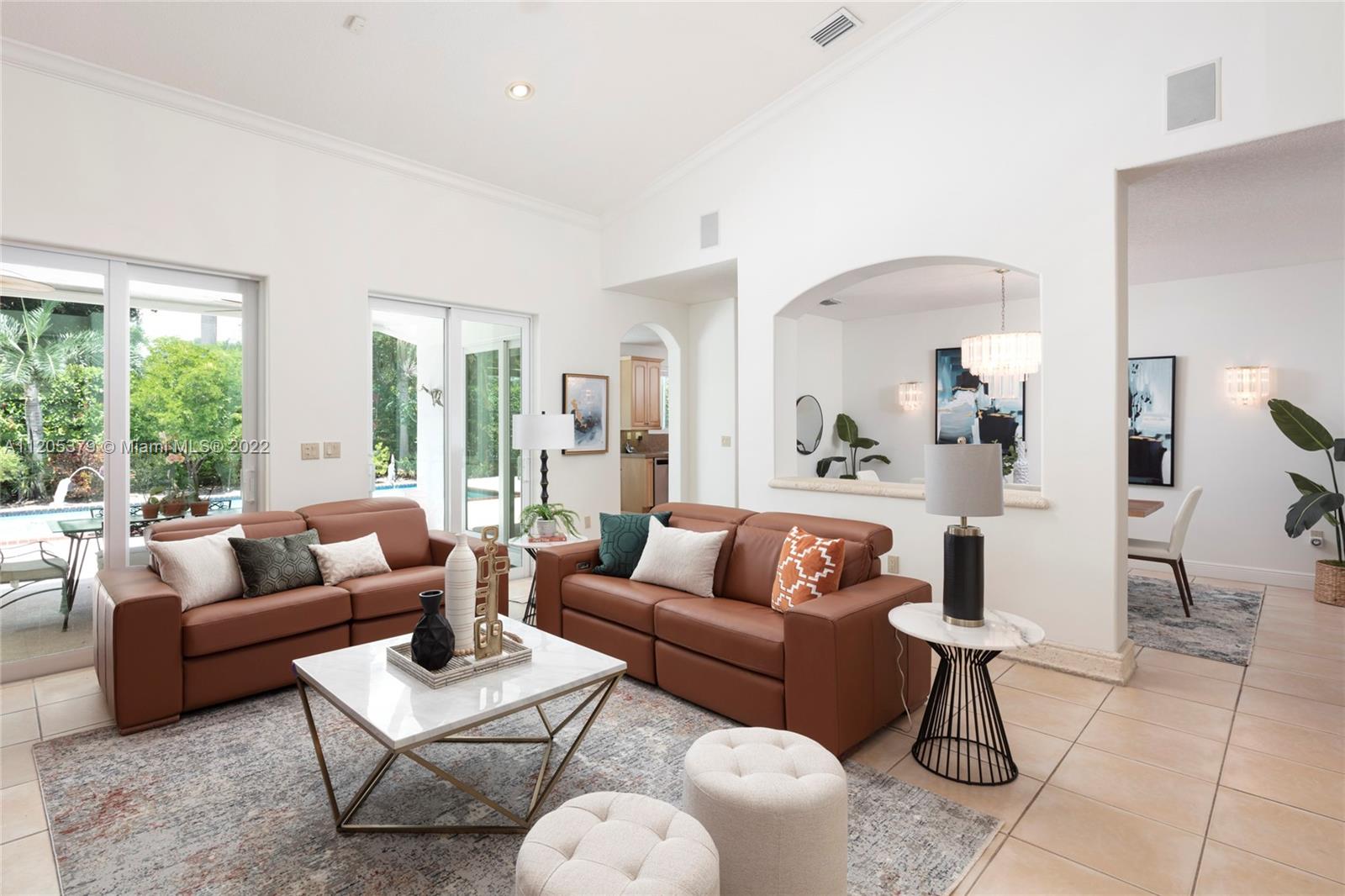 Set on the corner of a quiet North Pinecrest cul-de-sac with views of one of Miami’s largest banyan trees, this inviting home is too good to miss! As you step into the formal foyer, be enchanted by the high vaulted ceilings and bright open floor plan. With formal living and dining rooms, a family room, and a large kitchen with a breakfast area, there’s plenty of space for family and friends. From the kitchen or family room, step out on to your covered terrace and enjoy the pristine backyard with fountains into the pool, tropical landscaping, and 25+ orchids hanging from the trees. Zoned for Pinecrest Elementary with top private and public schools nearby. Impact windows/doors, whole house generator, two-plus-car garage, and two paved driveways complete this picture-perfect home.