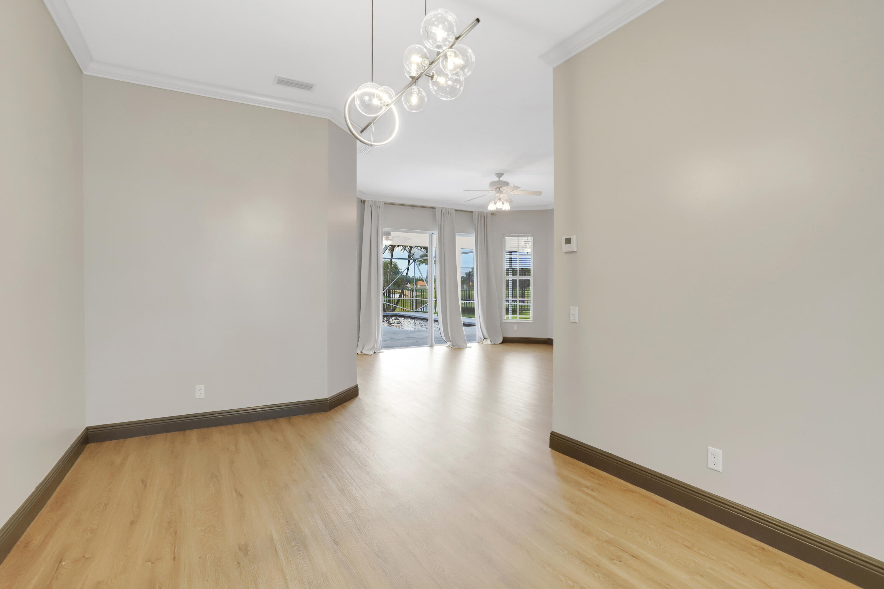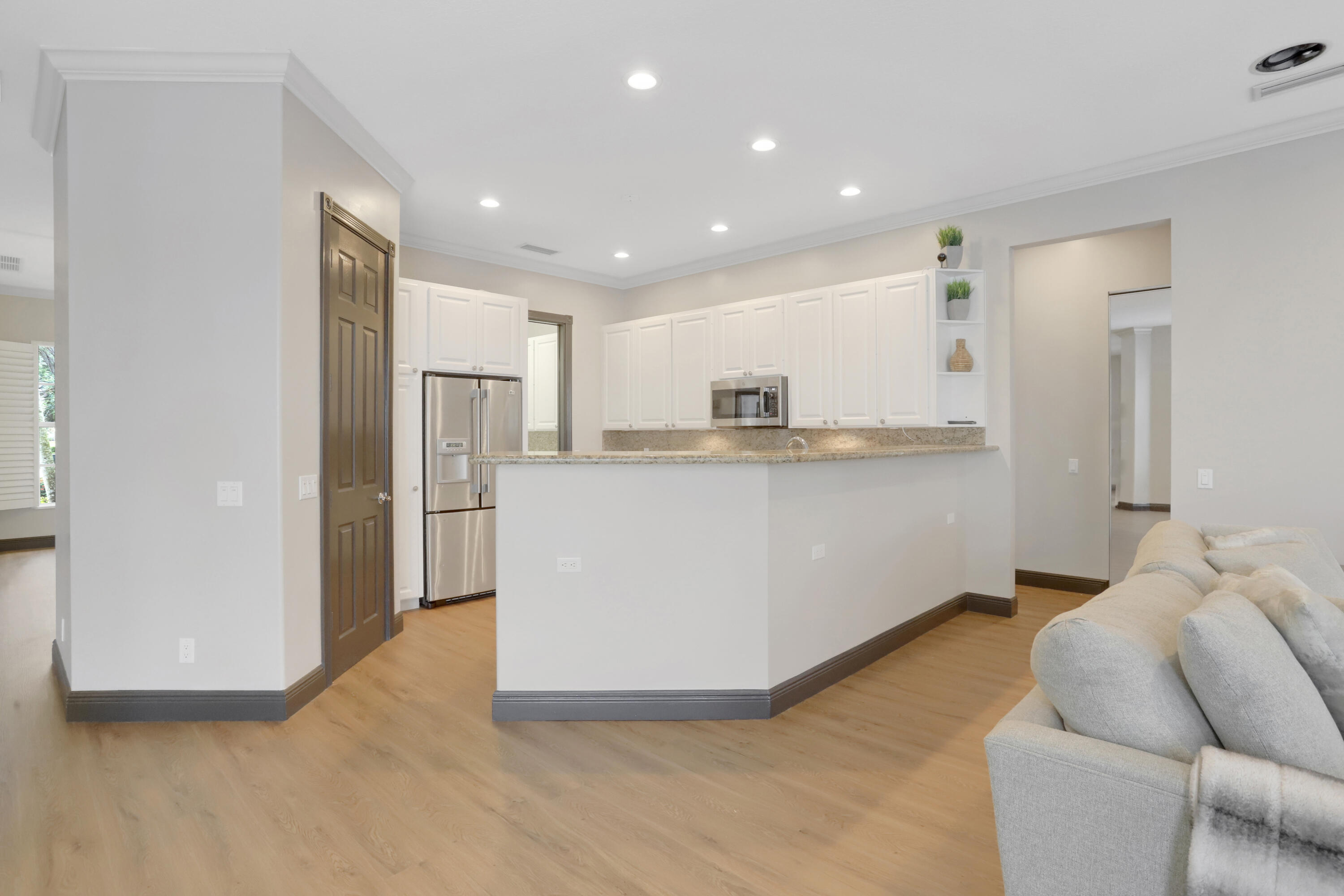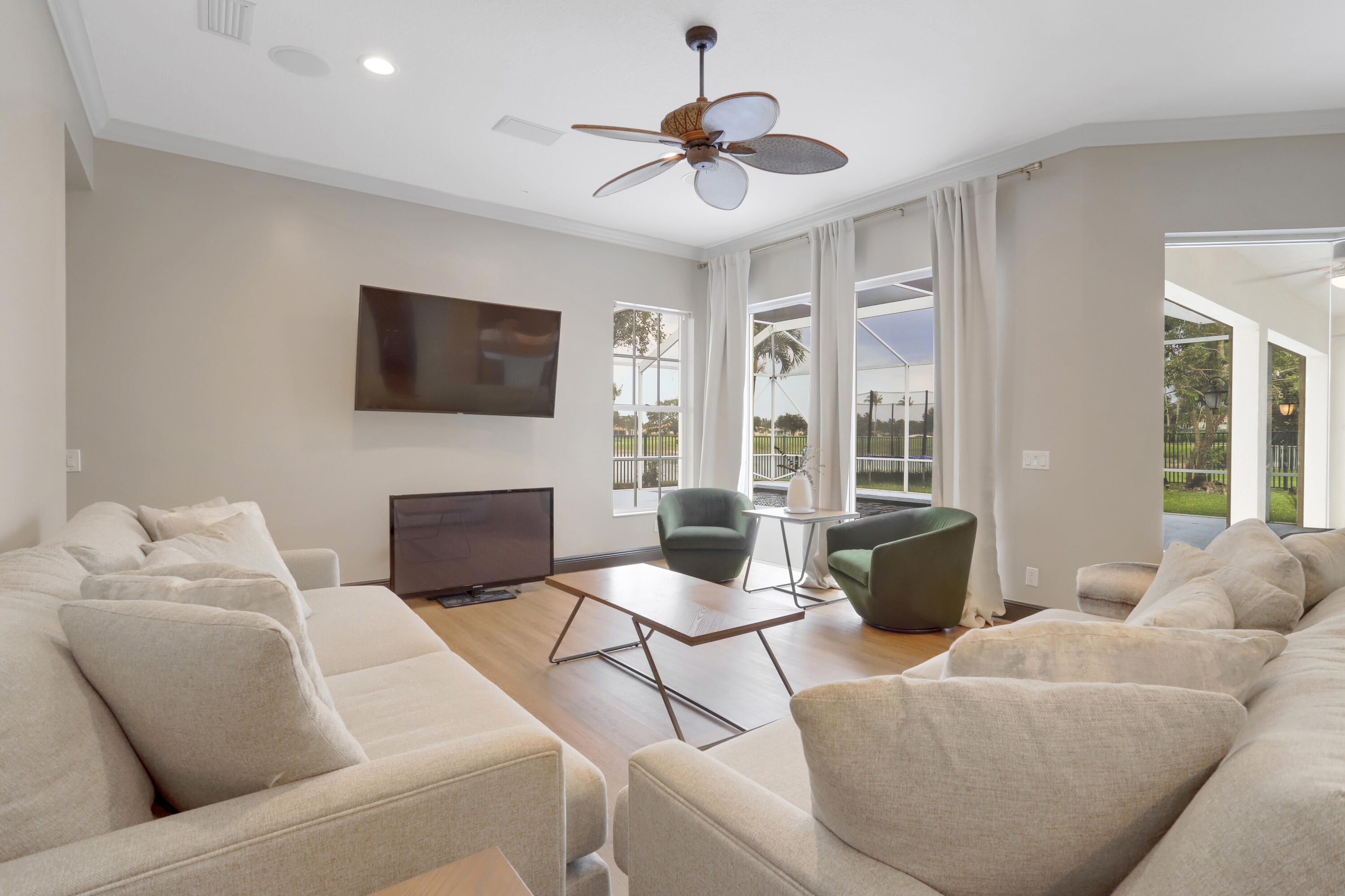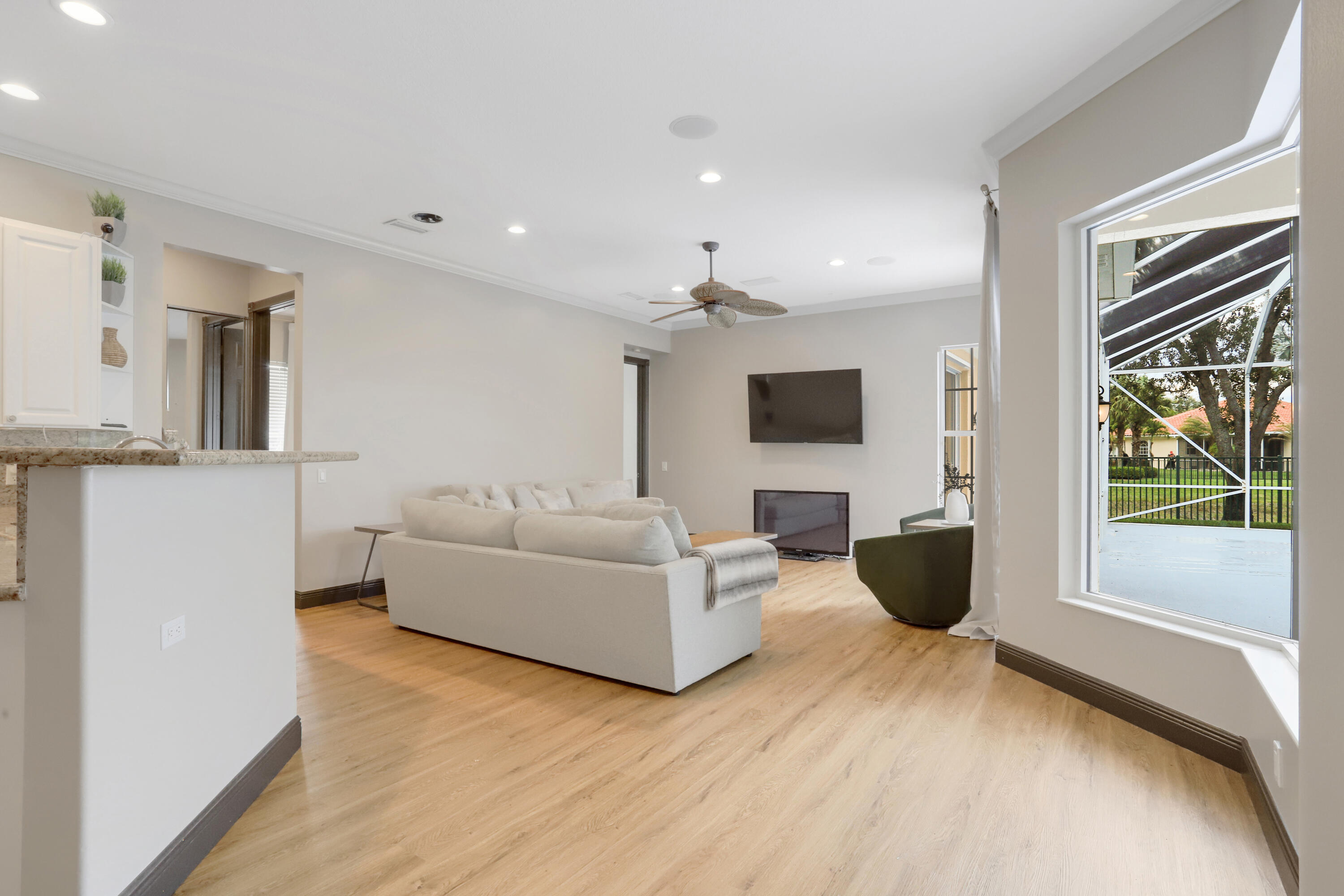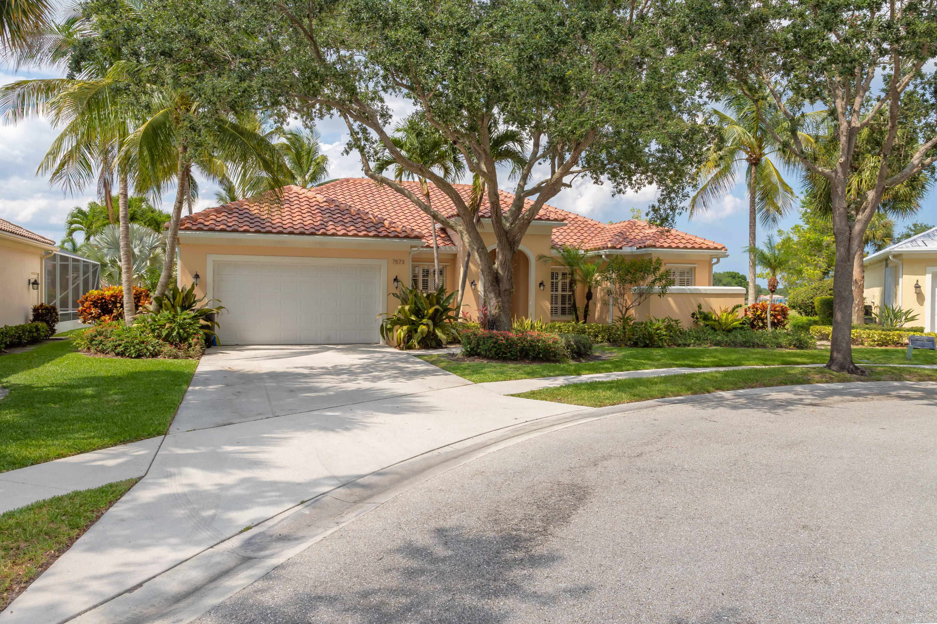 Introducing 7573 Red River Road; a pristine Windsor floor plan nestled in a cul-de-sac within Riverwalk - one of the most sought-after gated communities in West Palm Beach. This updated lakefront home features 4 bedrooms with a den, 3 full bathrooms, and sits on an exquisite oversized lot offering an abundance of privacy and wide lake views. The home's open-concept creates a bright and airy atmosphere from it's high-volume ceilings and plethora of natural light throughout. This property is the perfect place to entertain family and guests, having a large screened-in patio and pool area with additional yard space adjacent. Other upgrades include a new roof, new floors, newly-refinished pool, and brand-new solar panels, which are currently being installed. Riverwalk residents have access