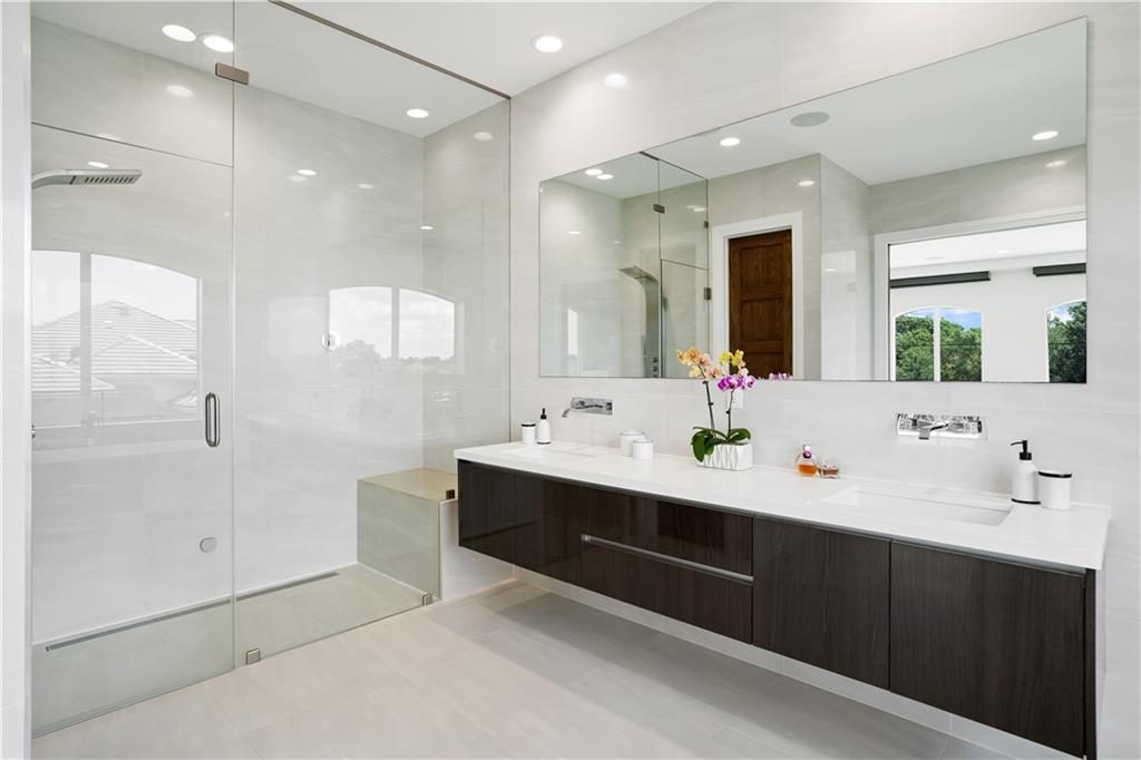 This spectacular home was created with attention to detail using the finest of materials. This 6 bed 5 full bath plus office, contemporary gated home sits on a beautiful acre+ lot. A kitchen that would delight a chef, Miele double ovens, Miele built in coffee maker, induction cooktop, extra large fridge, lots of cabinets & pantry area all open to dining & living area. First floor includes a glass wine cellar, cinema room, home office, 1st floor bedroom. 2nd floor master suite with luxurious master bathroom, huge closet & balcony overlooking pool & spa. Additional beds and baths plus TV/playroom perfect for kids. A stunning guest house with its own bed, bath, living room & full kitchen. 4 car garage w/electric charges. Oversized pool & spa. Great covered area perfect home for entertaining.