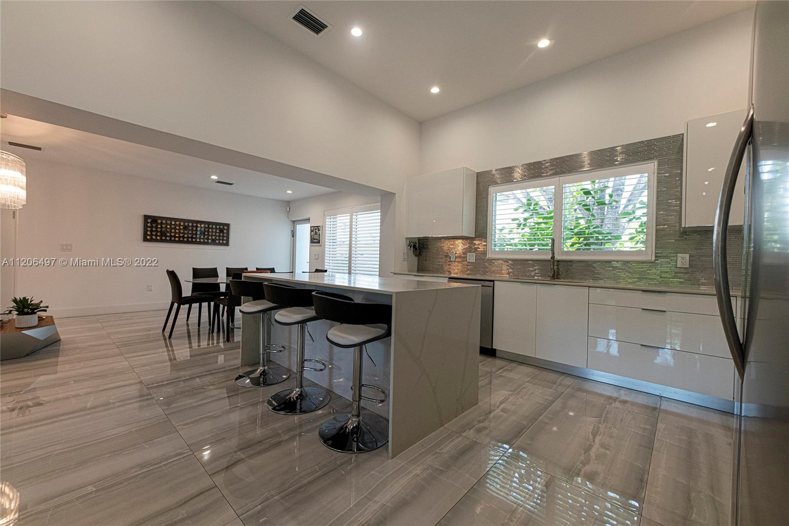 Your dream home awaits you with easy access both from I95 and West Dixie Highway. This totally 2018 remodeled gem is set on a lot which boasts Golden Hour Sunsets overlooking Highland Oaks Park, which becomes the extension of your private backyard and grants direct access at your leisure. Enjoy this modern layout gem, featuring a custom kitchen and open areas perfect both for entertaining and for family life. No expense or detail was spared so as to create a perfect balance of taste and functionality. Bring your most detailed oriented client and they will not be let down. Home features a storage that has been converted into a 4th bedroom/4th bathroom which is utilized as a separate housekeepers quarters, if buyer wishes seller will convert back to storage at sellers expense.