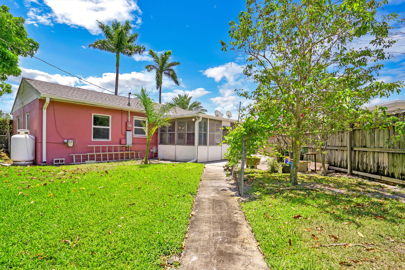 Don't miss out on the chance to call this beautiful & centrally located single-family home yours! It's situated on a corner lot and features a large front yard, spacious circular driveway, and covered front porch entrance. Upon entering this light & bright home, you'll appreciate the diagonally laid tile floors, updated kitchen with white cabinetry & granite countertops, and tons of natural light seeping in from the newly installed impact windows. The bathroom has been renovated with a new vanity, light fixture, and a newly tiled walk-in shower with a glass shower door. Additional features & upgrades include a separate family room for more space to entertain, updated plumbing, updated electrical panel, impact windows throughout, and a brand new roof. The large backyard is conveniently...