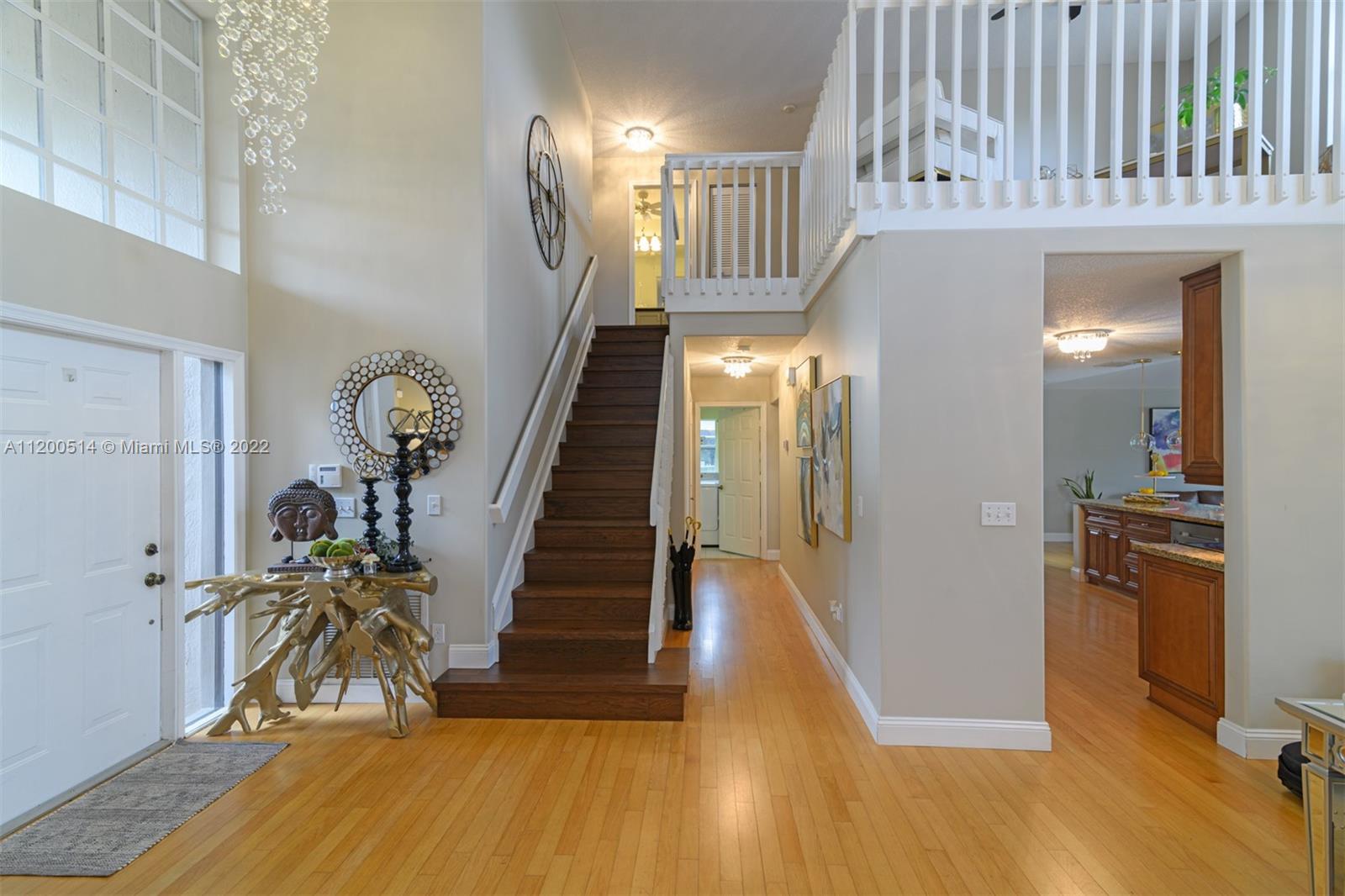 BEAUTIFUL HOME ON A SPARKLING LAKE IN HIGHLY SOUGHT AFTER SILVER LAKES - This spacious four bedroom, two and a half bath home sits on an oversized lake lot with a screened pool. Open floor plan with soaring two story ceilings and a views the wide and sparkling lake from almost every room. Large Primary Suite on the main floor with engineered wood floors and an ensuite with soaking tub and stand alone shower. Large kitchen with granite countertop, lots of storage, stainless steel appliances is open to additional dining space and spacious family room. Second floor features 3 additional bedrooms and full bath plus a loft that can be used as work from home office or play room. Manicured lawns flanked by mature trees and has a private backyard with magnificent sunset views over the lake.
