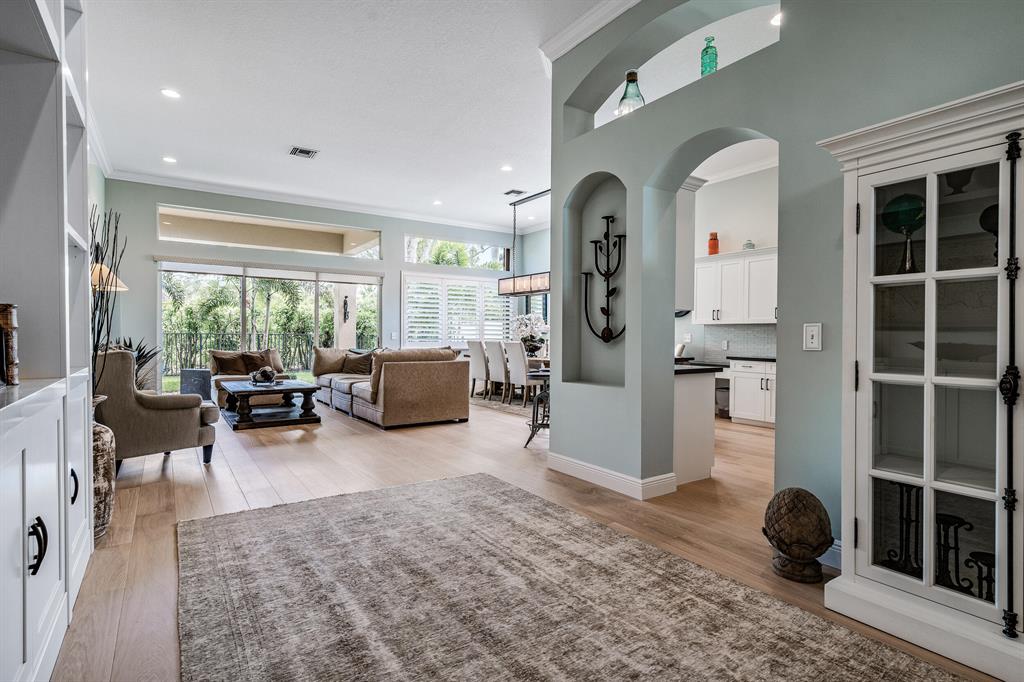 Major wow-factor in this REMODELED great room home with NEW ''Riva'' Brand engineered HARDWOOD 10'' planks throughout (except in the remodeled baths.) NEW travertine patio and recently redone backyard offering privacy and yard space--perfect for the pet owner or gardener. Designed in a timeless Coastal/Transitional style, the redone kitchen boasts quartz counters, glass back-splash and stainless appliances. The redone baths were gutted to the studs. Seamless shower, custom cabinetry, new designer lighting, fixtures, mirrors, and more. The refurbished garage features NEW epoxy floors and replaced garage doors with hurricane close and a replaced garage door opener. This home features a replaced washer and dryer. Crown molding throughout the recently painted home.