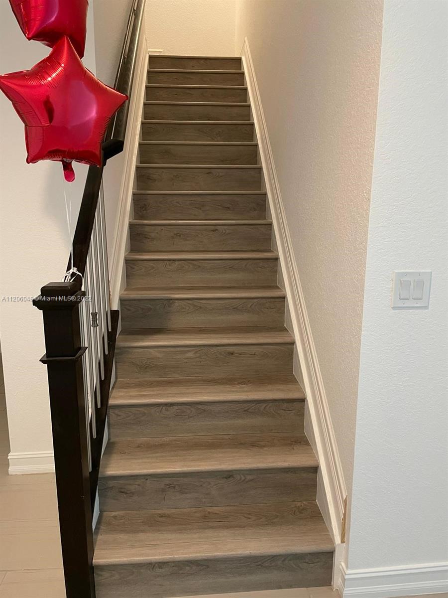 Gorgeous 3 bedroom 2.5 bathroom 2 story townhouse. Features open space kitchen, granite countertops, stainless steel appliances, big pantry, 2 walking closets on master bedroom, dual sinks, plenty of closets, second floor laundry, HIGH IMPACT windows, smart light in bedrooms, upgraded tile throughout first floor & BRAND NEW laminated flooring on stairs & second floor. Unit has a nice covered patio with garden view. Master bedroom balcony overlooks the garden & background lake. 2 car garage with 2 parking driveway. Freshly painted. This gated community offers full amenities. Pet friendly. Great schools. Centrally located, easy access to I-75, Turnpike, Sawgrass Expressway, Pembroke Pines Mall, shopping centers, Memorial Hospital West & more.