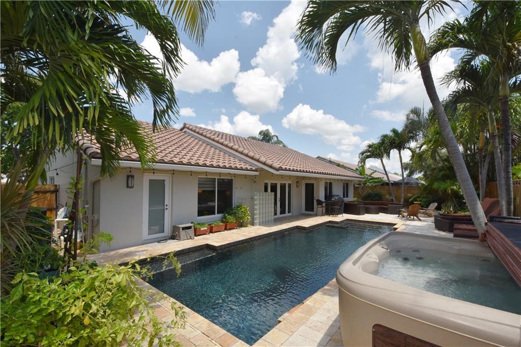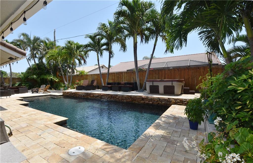 Welcome to your new home! A wonderful East Boca residence highly sought after Boca Raton school district. Gorgeous 4 bedroom 3 bath home with pool and hot tub . Open floor plan with natural light and breath taking views of an unbeliveble backyard from your great room and master bedroom. Inside your home you will find high end contemporary window treatments Impact windows and doors with new retractable screens on doors to enjoy fresh air.The backyard features a travertine deck with saltwater black bottom pool with waterfalls, pool heater,outdoor shower and cabana bath off the Master bedroom.Wonderful landscaping shows pride in ownership. The community offers tennis,playground and no HOA.