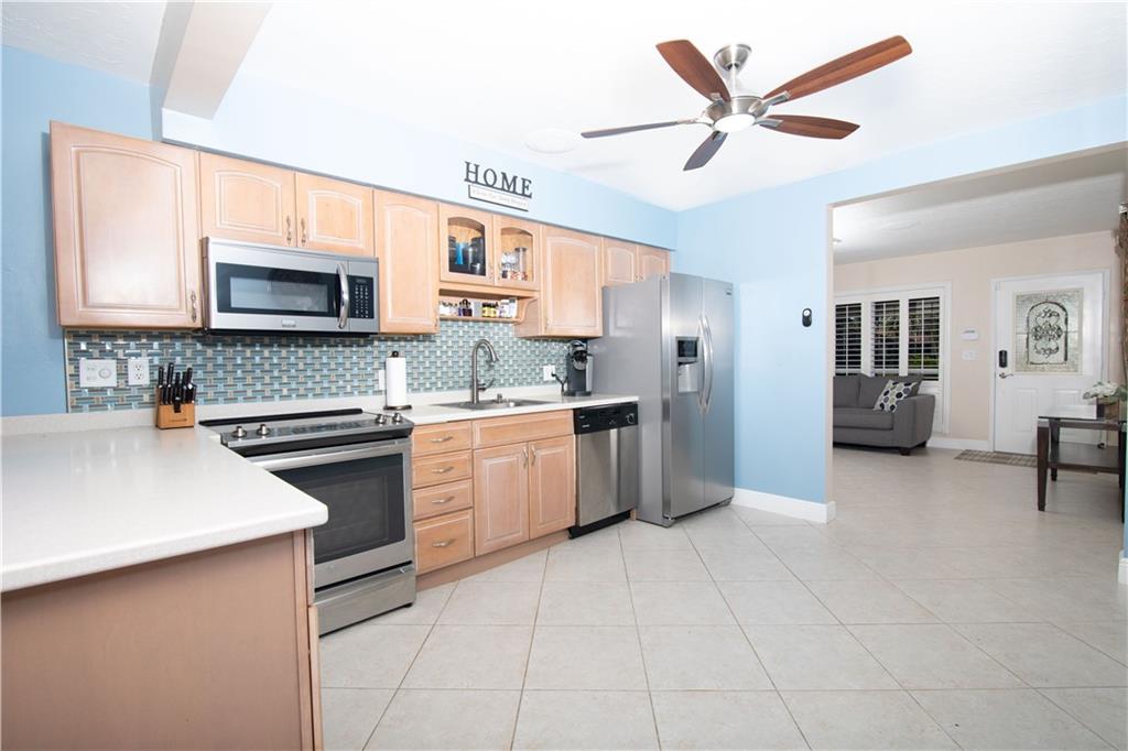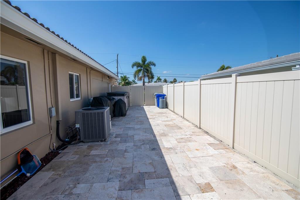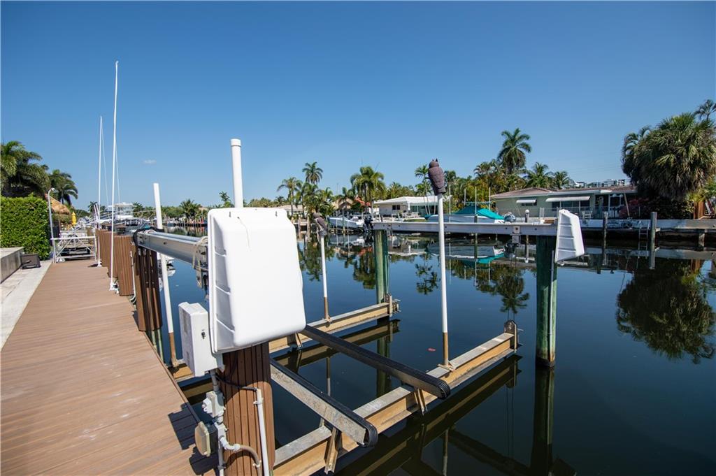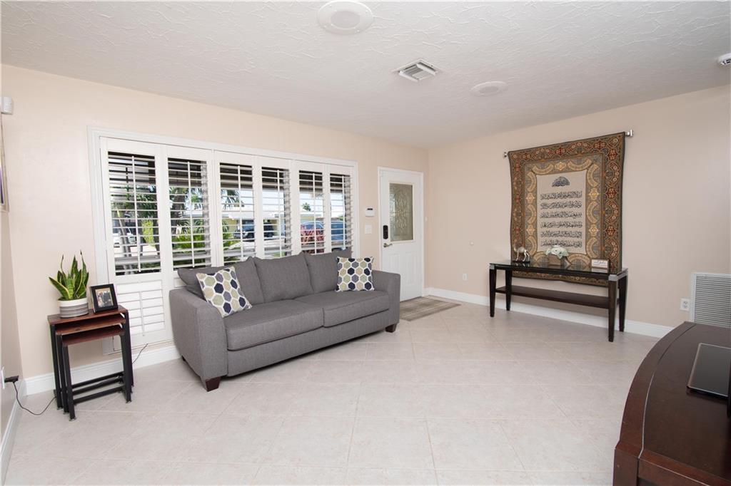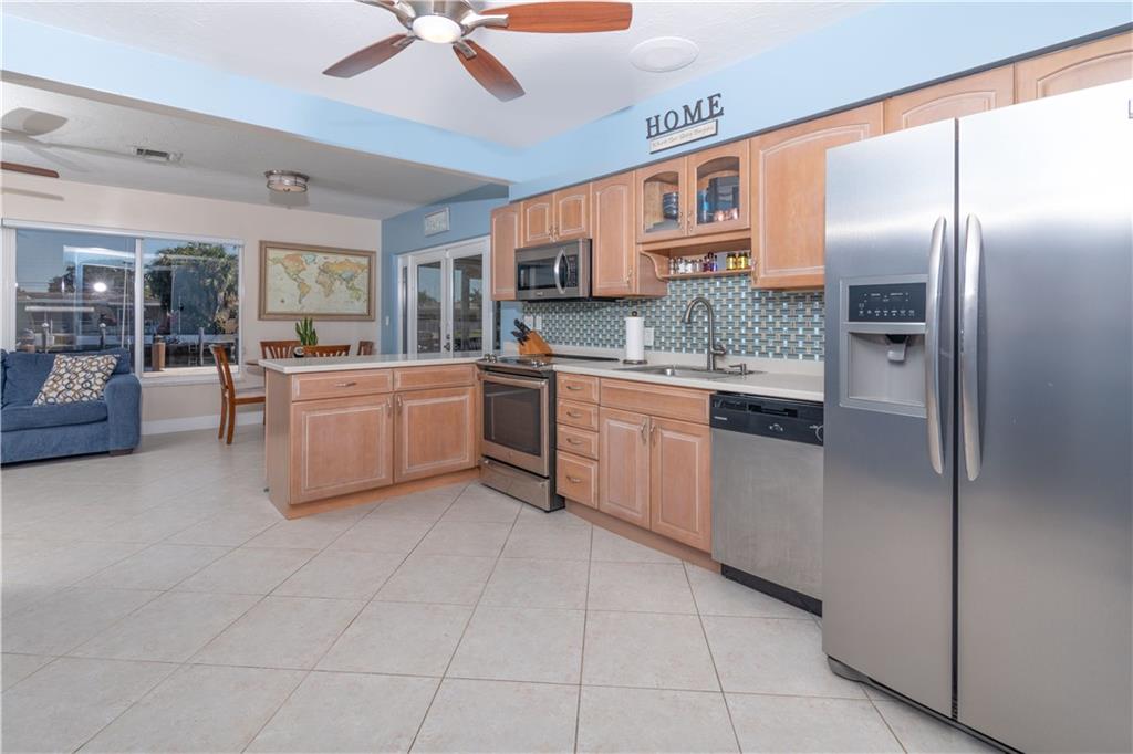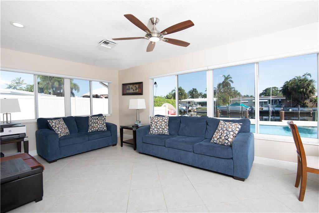 This stylish waterfront home offers 75' of ocean access waterfrontage on a wide canal. The home offers 3 bedrooms (3rd bed has no closet) and two baths that have been remodeled with elegant detail. The open kitchen boasts new Frigidaire SS appliances and glass top range/oven. The family room seamlessly opens to the back yard for unparalleled indoor and outdoor living. The back yard is a tropical oasis with raised travertine paver pool deck, re-surfaced pool with all new equipment, including heater/chiller. Enjoy the new Trex dock and pilings, with 12,000 lbs boat lift, personal watercraft float pad. Other features include all high impact windows, new garage door, new privacy fence, new sprinkler system. This home is a true gem. Schedule an appointment today.