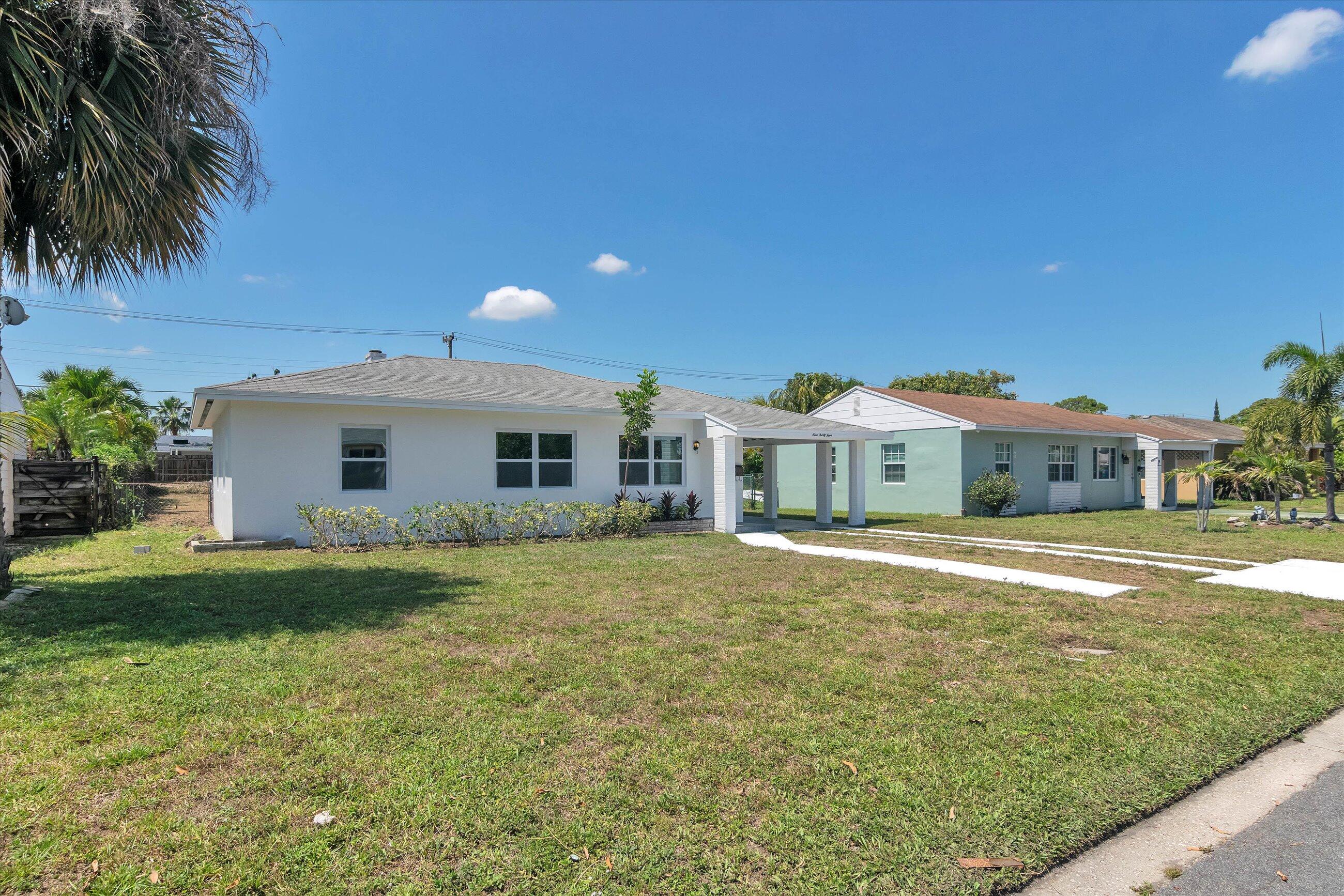 Home has been updated with new floors, paint, new kitchen cabinets, counters and new bathroom. New appliances include, stove, fridge, washer, dryer. Single story house with carport. Centrally located and east of 95. 12 mins to PBI Airport, 14 mins to the heart of downtown West Palm Beach and 15 mins to the beach!
