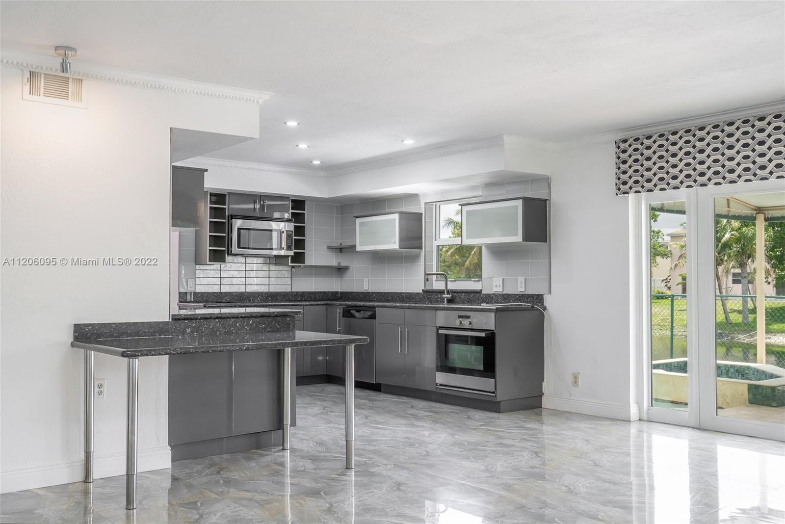 This spacious 2-story waterfront pool home on culdesac street features a newer roof 2016, impact glass doors & windows throughout 2018 & is totally carpet free. Large inside laundry room & 2 car garage. Remodeled kitchen complete with granite countertops. Pool & spa have electric heater while enjoying oversized covered deck with beautiful water views. 2 story ceiling in Living room & dining room with great natural light. The wall to the 4th bedroom has been opened to use as a sitting room, office or nursery off master but can easily be put back so it can be used as a 4th bedroom. Enjoy this great location, convenient to a beautiful park, schools, shopping, & major highways for great access to Miami or Ft Lauderdale. Low HOA fees are only $115 per quarter. Vacant & Ready for Quick closing!