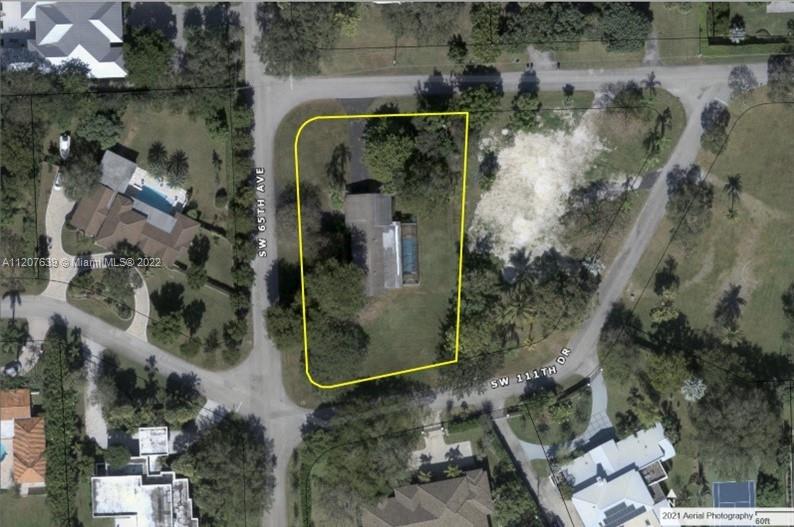 Mid Century home on a nice quiet street East of US1 in the heart of Pinecrest. The property is a large .73 acre dual corner lot. New buyers can renovate the house to a Mid Century modern home, or tear it down and build a large custom home on the property. The house was the model home when the neighborhood was established. It is a 4/3 with one of the bedrooms used a den. It's a typical rectangular ranch style home. There are original terrazzo floors, tile, and carpet throughout. It has a large deep in ground pool surrounded by a large screened patio. It has an attached 2 car garage, a circular drive in the front, and a straight driveway to garage. It has removable hurricane shutters. It is in the Pinecrest Elementary, Palmetto Jr. High, & Miami Palmetto Sr High school districts.