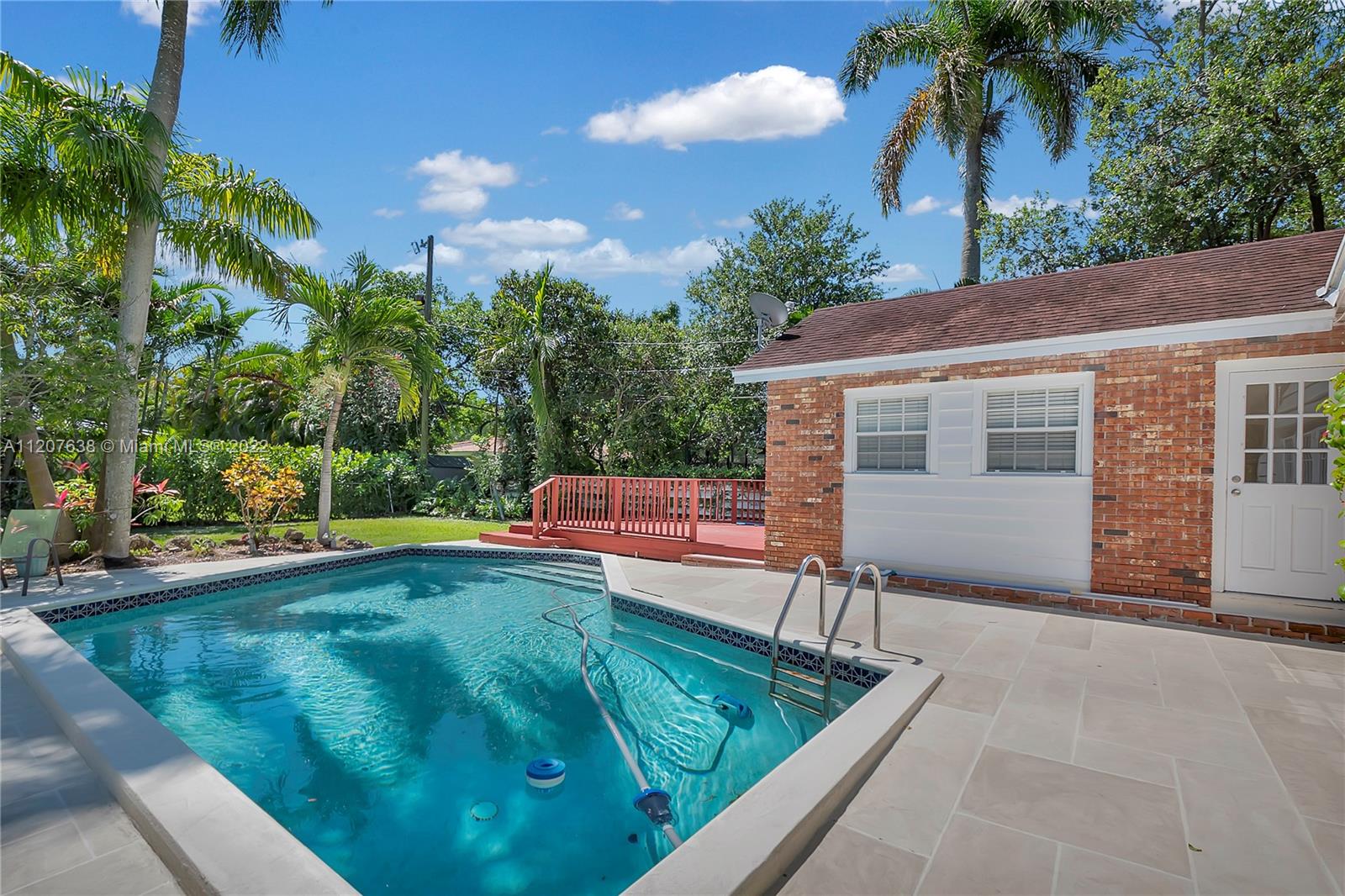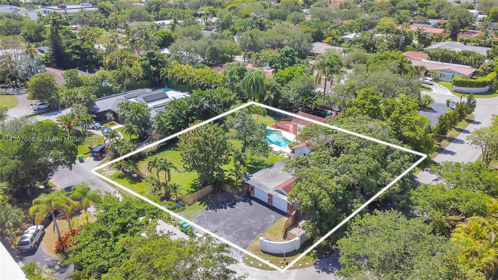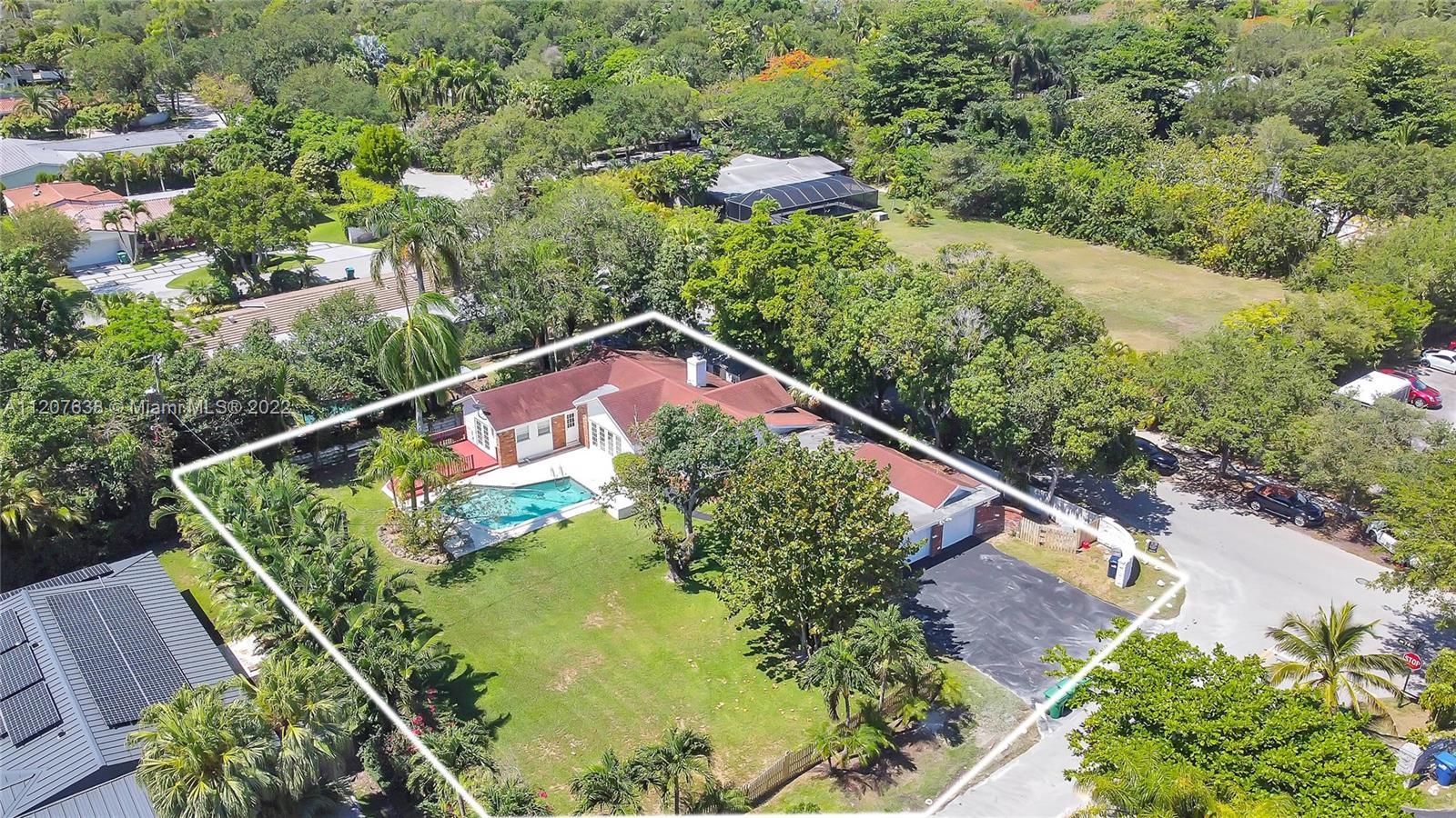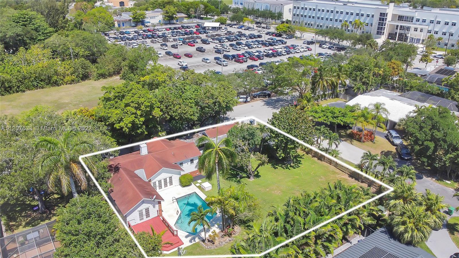 Location! This Pinecrest charmer is situated on nearly a builder's half acre corner lot surrounded by lush landscaping, fruit trees, and is completely fenced in. Built in 1960 this home has numerous upgrades, 2009 roof, two 5 ton Ac's in 2018,plumbing converted to PVC, and new electrical 2010. Main house features an open layout with 4 bedrooms in a split floor plan and 2 baths. Original Dade County pine floors. Kitchen has ample storage. Vaulted ceilings w/ exposed wood beams add to its charm. French doors open to spectacular pool area and master opens to attached deck with garden/pool views. Guest house features 1 bed/1 bath, kitchen, and living area with concrete floor ready to be updated to buyer's desires. Generator hookup. Seconds to Palmetto High and Elem, Synagogue, and The Falls.