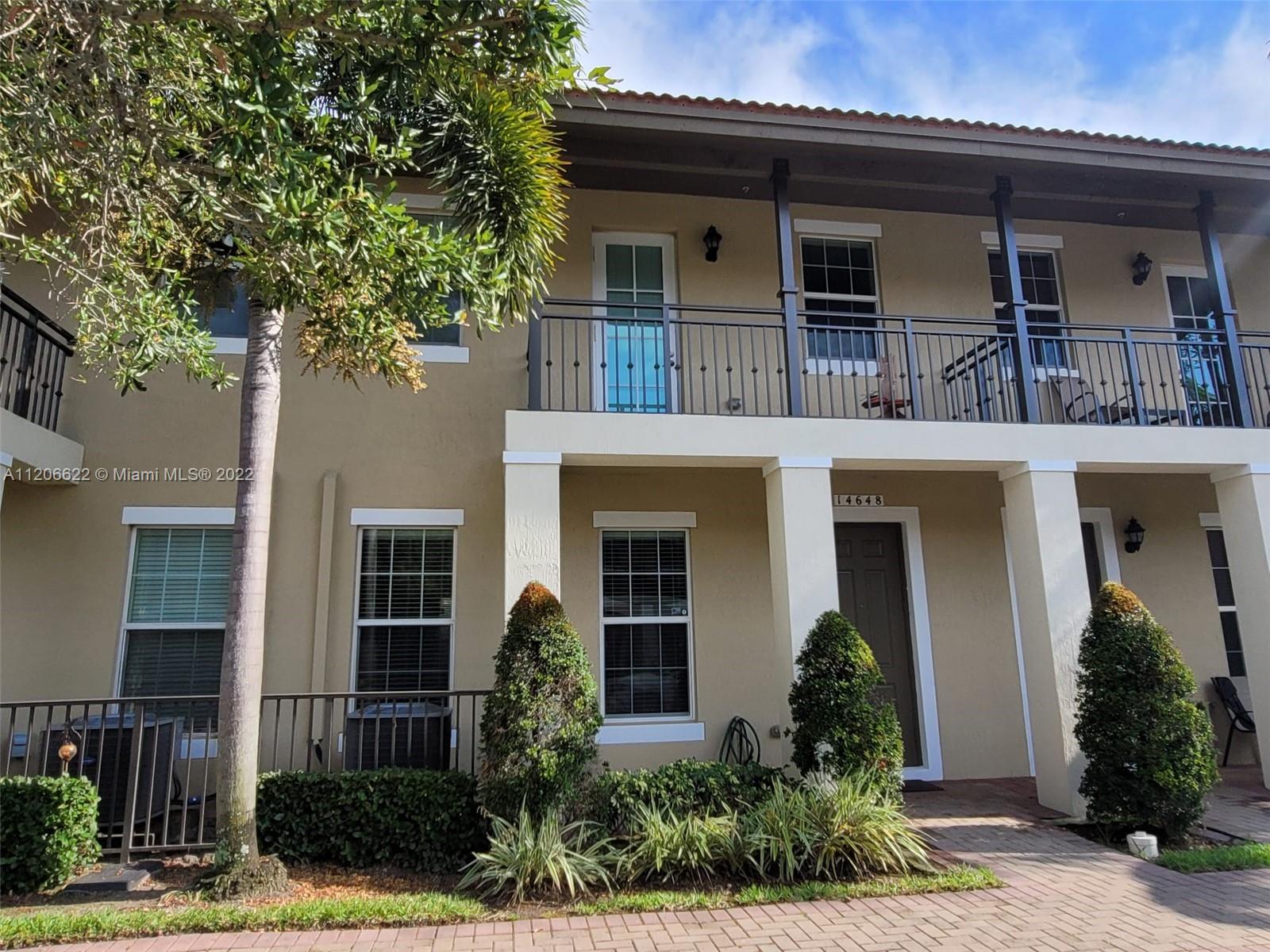Welcome to this beautiful 2 story townhome. Built in 2014, located in the desirable gated community of Cobblestone. This charming 3-bedroom 3-bathroom townhouse features an interior courtyard, contemporary kitchen w/granite countertops, SS appliances & new washer & Dryer. Integrated living and dining areas & bedroom w/a full bathroom downstairs. 2nd floor has an open family/media room & balcony, perfect outdoor space. Master bedroom w/ large custom closet & suite bath w/dual sink vanity. Bedroom # 3 -walk in closet & full bathroom. Hurricane Impact windows & doors & nearby resort style pool, clubhouse, fitness room, jogging paths & playgrounds. Gated community w/ 24-hour manned security. Amazing location, minutes from shopping, restaurants and easy access to 1-75 & Turnpike.