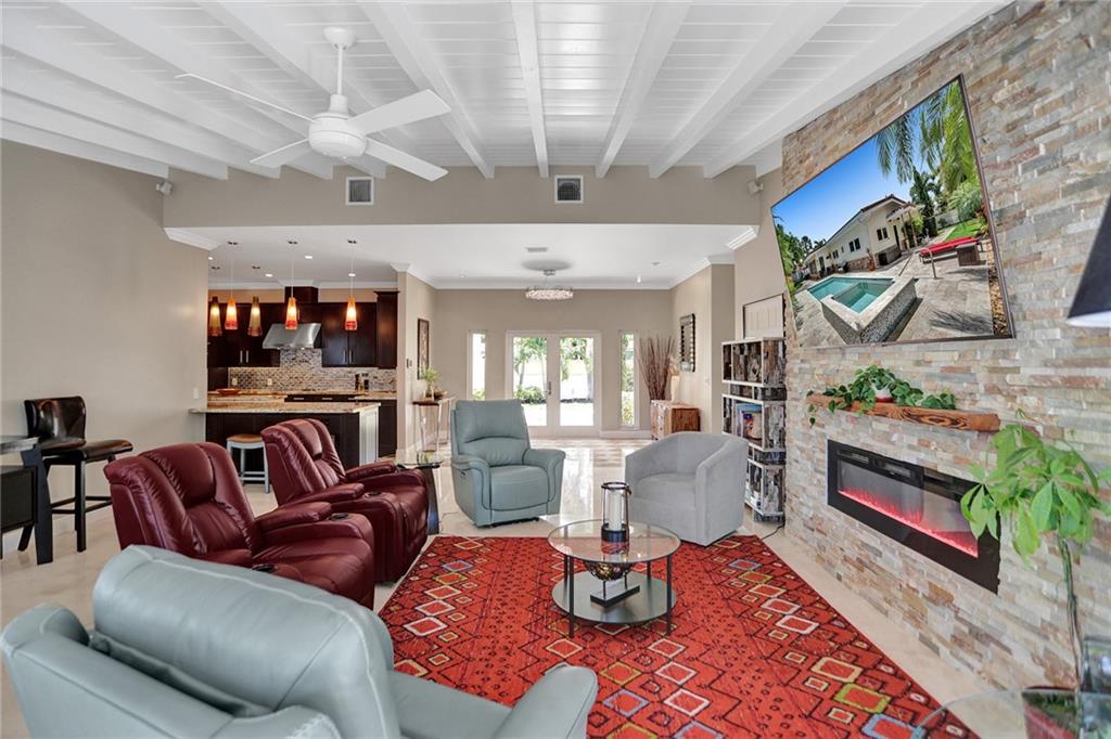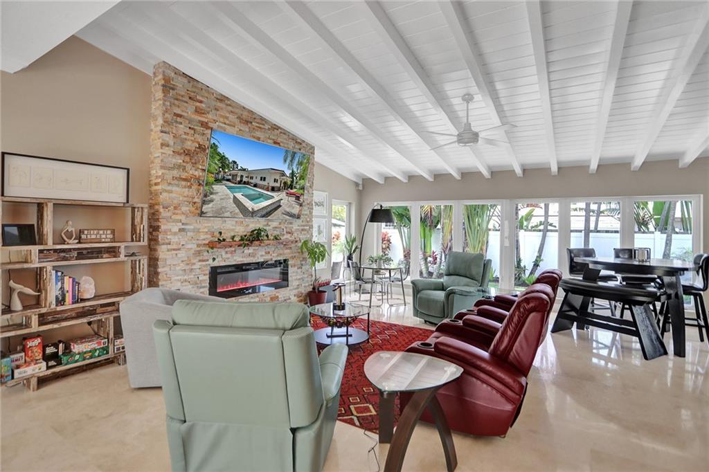 Total New Renovation in desirable Coral Ridge neighborhood. Fabulous 3BR/2BA/,2 Car garage with complete privacy. Vaulted, Open beam ceilings that add charm to the Great room which includes a new modern split rock fireplace. All new Impact windows and doors w/sun blocking shades Enjoy a Huge master Master bath w/soaking tub. A total WOW kitchen w/island &, Kitchen Aid appliances. The home is behind a stately masonry wall with custom decorative gates and travertine up lit walkway to the double glass entryway. Landscaping includes Italian Cypresses and over 70 palm trees. New 19 x 27' covered outdoor granite kitchen/Bar/Fire-pit. Saltwater Pool/Spa, New underground sewer/water lines/electrical/cable to street. Bose system in & out, Brand new A/C, Maintenance free grass. security cams,