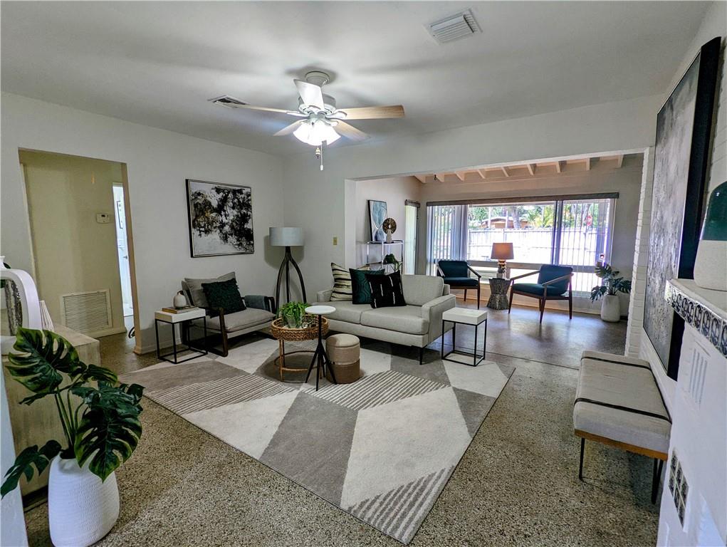 Mid Century 3 bed 1 bath 1,560 sf home on a large corner lot in Sought After Shady Banks. Cool Terrazzo Flooring, Vaulted Ceiling, Fireplace, Open Living/Dining, Plus Florida Room. Updated Kitchen with Wood Cabinets & Granite Counters. Fully Fenced 8,835 sf lot with plenty of room for a Pool, RV/Boat Parking. Exterior features a covered carport, Large Workshop with electric & additional storage shed. Neighborhood offers 2 parks. Horrt Park with Tennis, Volleyball, Softball Walking Paths, Playground plus Bill Keith Preserve 3+acres along the New River, serene walking paths, natural crest shoreline, drop a paddleboard or kayak and explore the New River. One way in/out, no through traffic and surrounded by the New River, this is one of the hottest neighborhoods in Ft Lauderdale