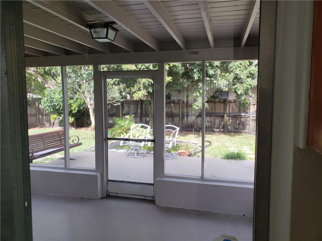 This LARGE 2 bedr / 2 bath home comes with a bonus OFFICE or hobby room. Screened outdoor room and extensive patio area adds to the usable space in the large fenced backyard. Lots of storage! Master bedroom can easily accommodate a king size bed and features a walk-in closet and newly updated bathroom. Home has newer roof and hot water heater, 2 year old new A/C and heater with a transferable warranty. No HOA. Hurricane shutters. Convenient location.