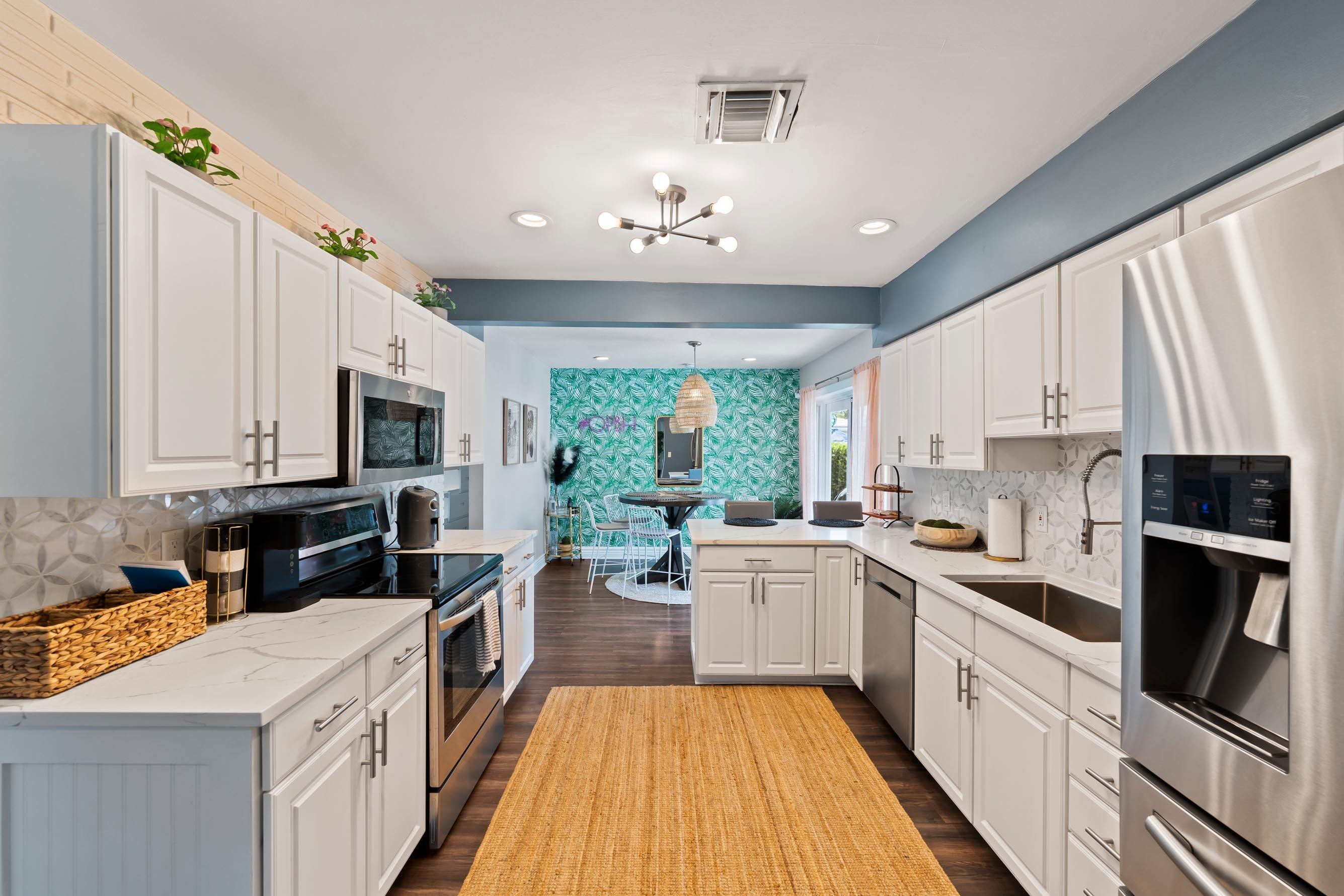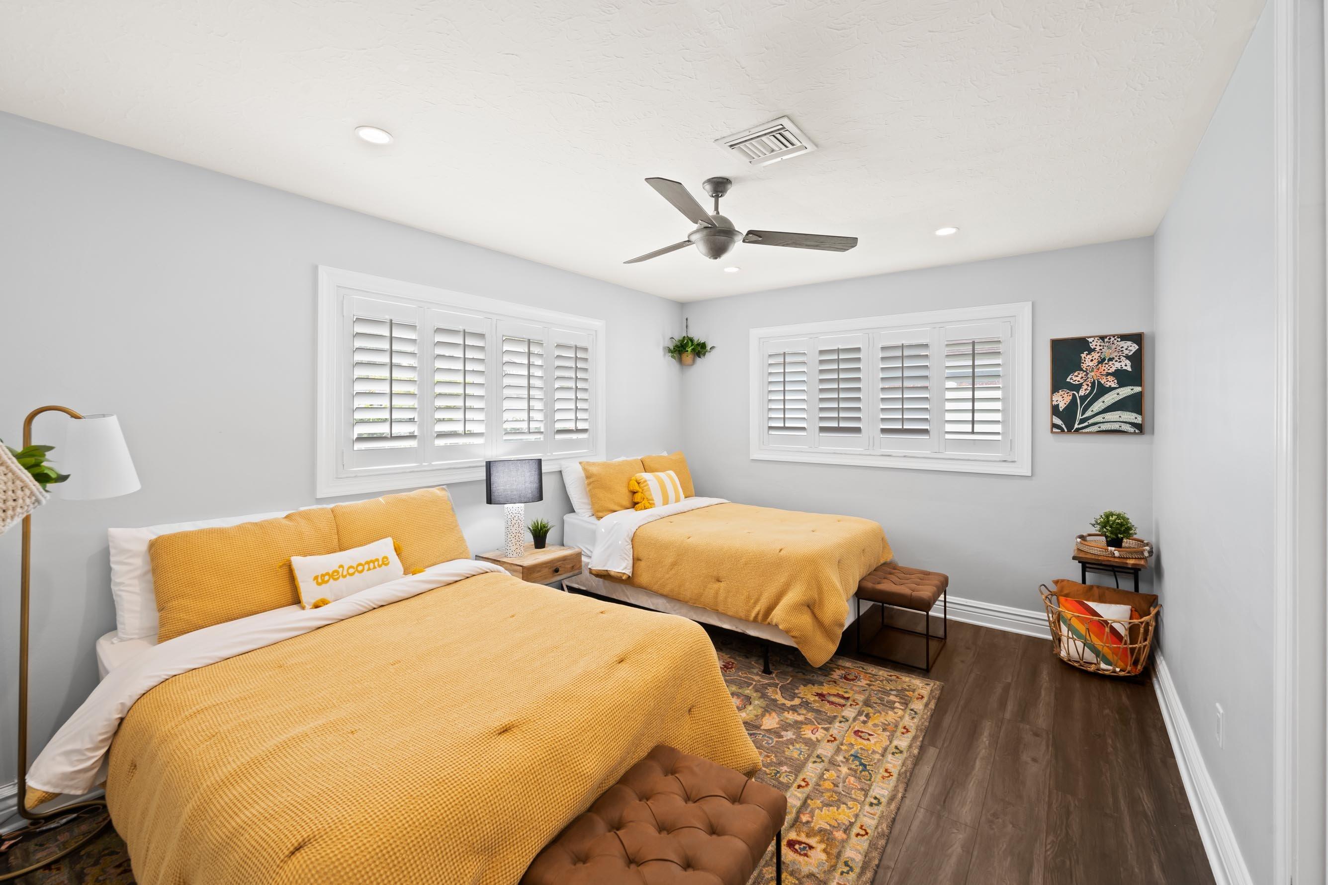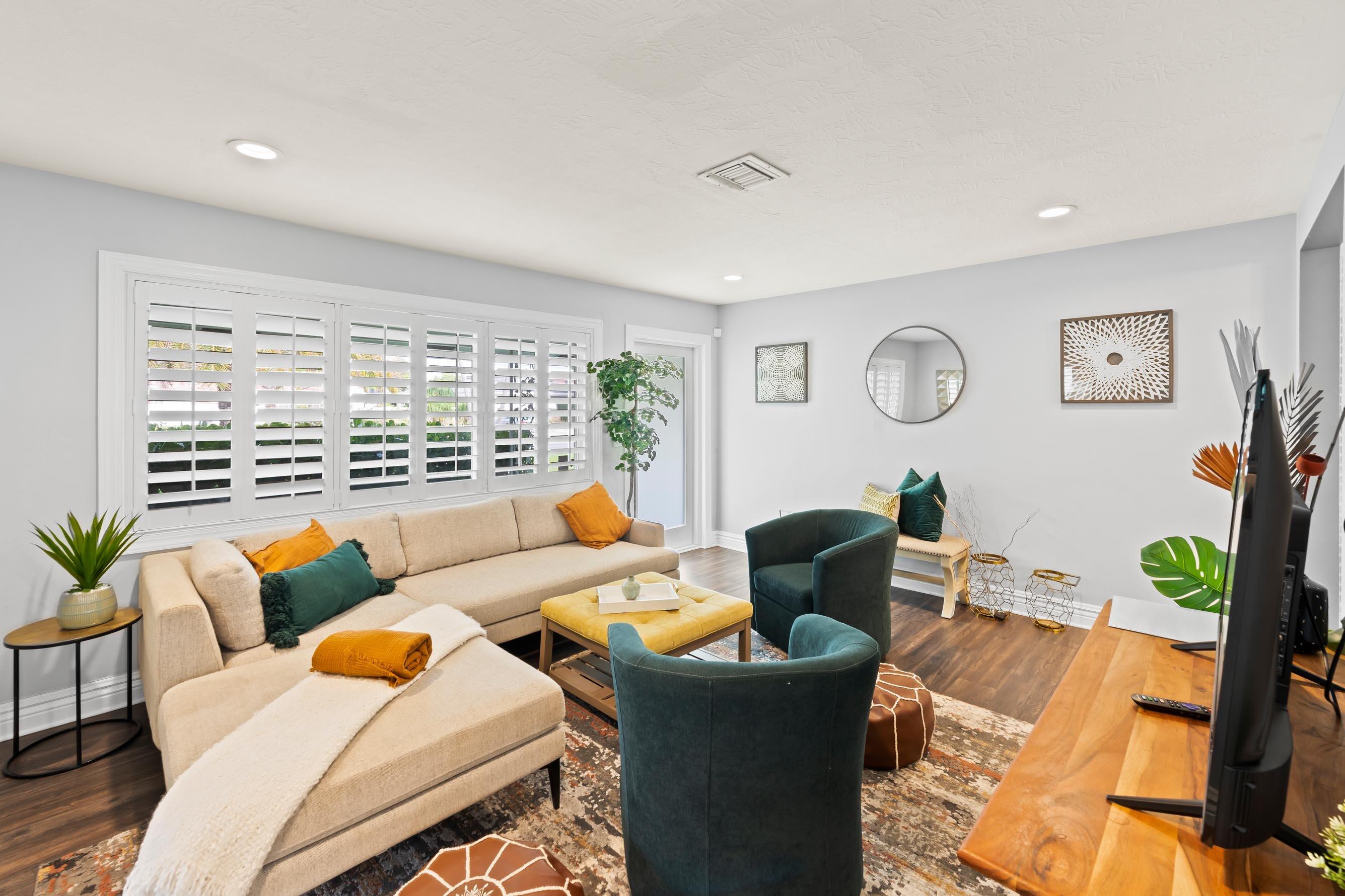 Welcome home! This lovely 2 bedroom 2 bathroom house is located in Garden Isles, a cozy coastal community located 3 miles from the beach. This home is being sold turnkey and was an airbnb bringing in 6k-9k per month! As you walk in you will be delighted to find a fully renovated kitchen equipped with stainless steel appliances and expansive quartz countertops. As you enter each bedroom you will notice the closets have been completely built out to your liking and each bathroom has been updated to match current design trends.. A multipurpose den is located right off the main living area, perfect for an at home office space or an extra space for entertaining. Step outside onto travertine pavers which lead you through your huge fenced-in yard to your newly built fire pit.. This bright and airy