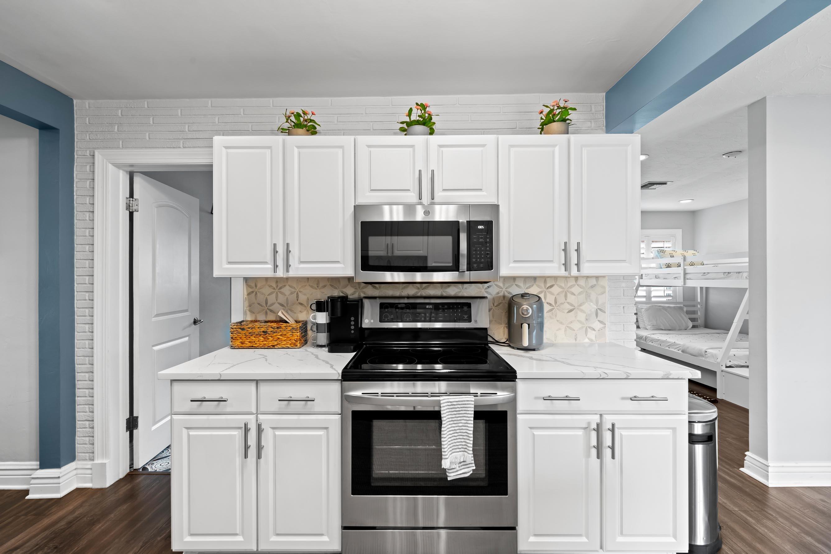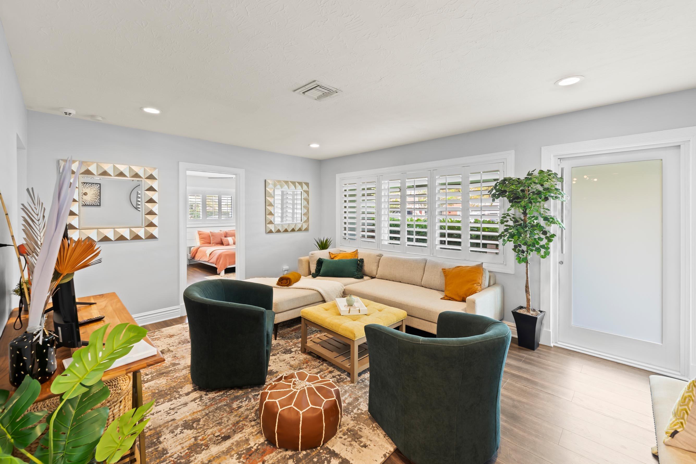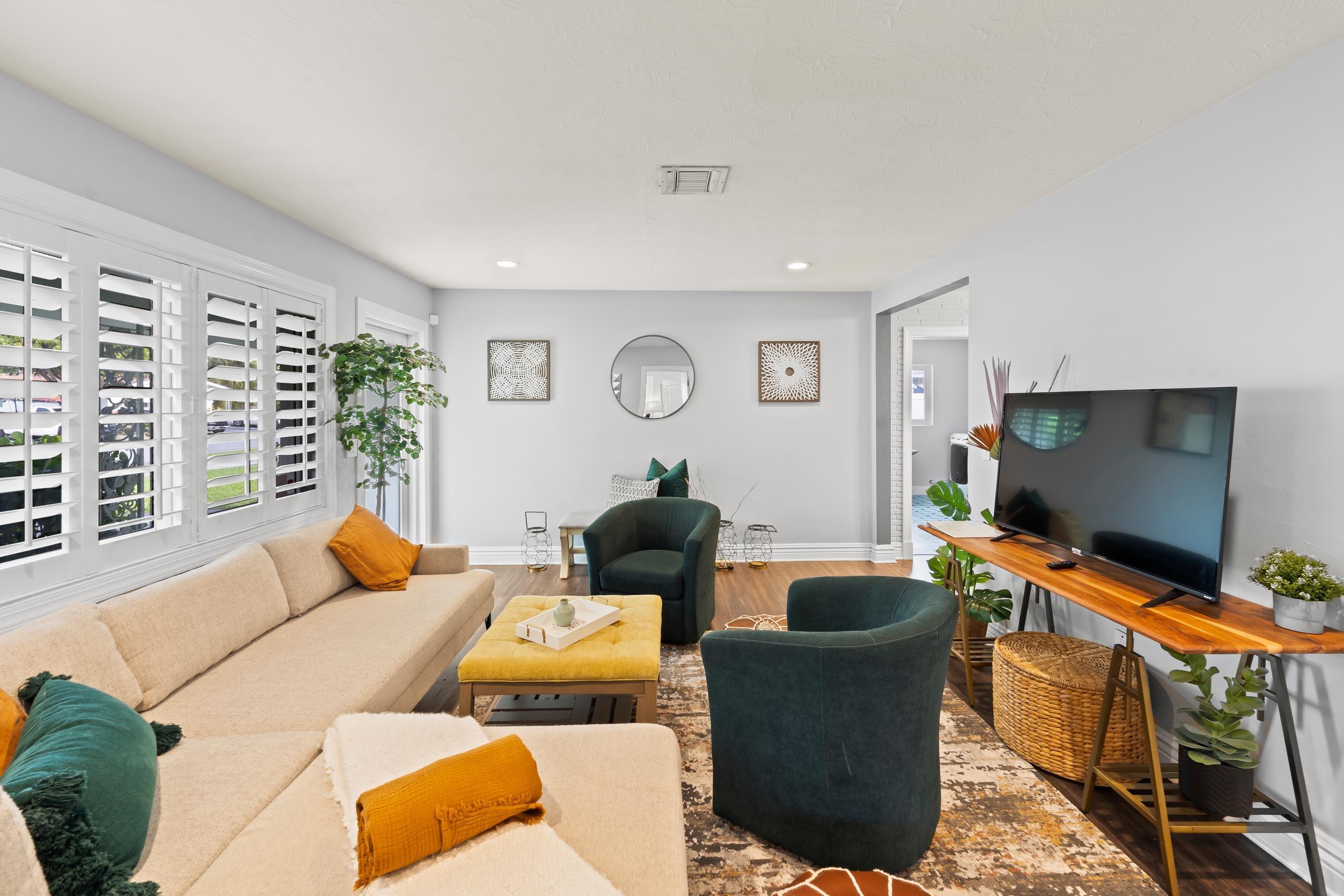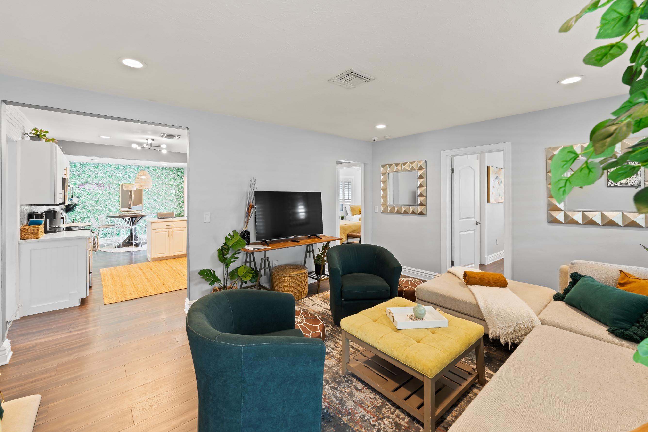 Welcome home! This lovely 2 bedroom 2 bathroom house is located in Garden Isles, a cozy coastal community located 3 miles from the beach. This home is being sold turnkey and was an airbnb bringing in 6k-9k per month! As you walk in you will be delighted to find a fully renovated kitchen equipped with stainless steel appliances and expansive quartz countertops. As you enter each bedroom you will notice the closets have been completely built out to your liking and each bathroom has been updated to match current design trends.. A multipurpose den is located right off the main living area, perfect for an at home office space or an extra space for entertaining. Step outside onto travertine pavers which lead you through your huge fenced-in yard to your newly built fire pit.. This bright and airy