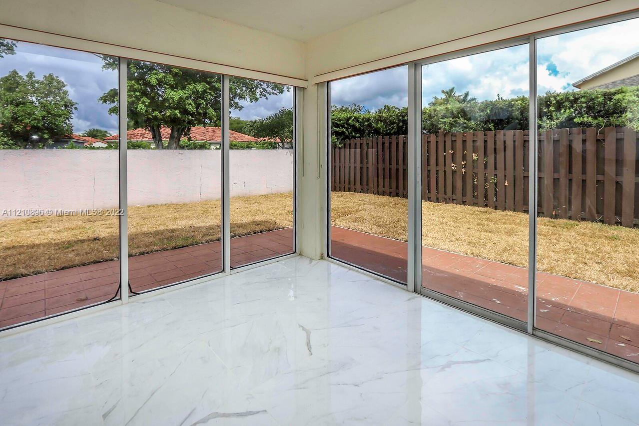 Great One Story Family Home with 3 bedrooms and 2 bathrooms, garage is converted, gated community and centrally located, you can enjoy the access to a gym at Doral Park Country Club. The roof was replaced on 2016 and AC unit on 2017, Impact windows, also unit has a gas line. Monthly association is $290 and Doral Park Country $98.