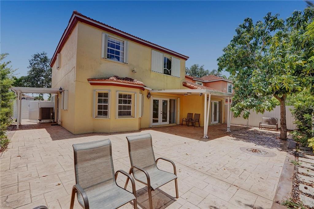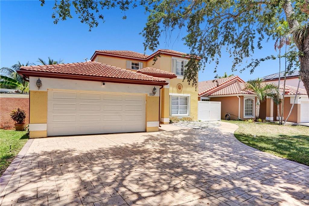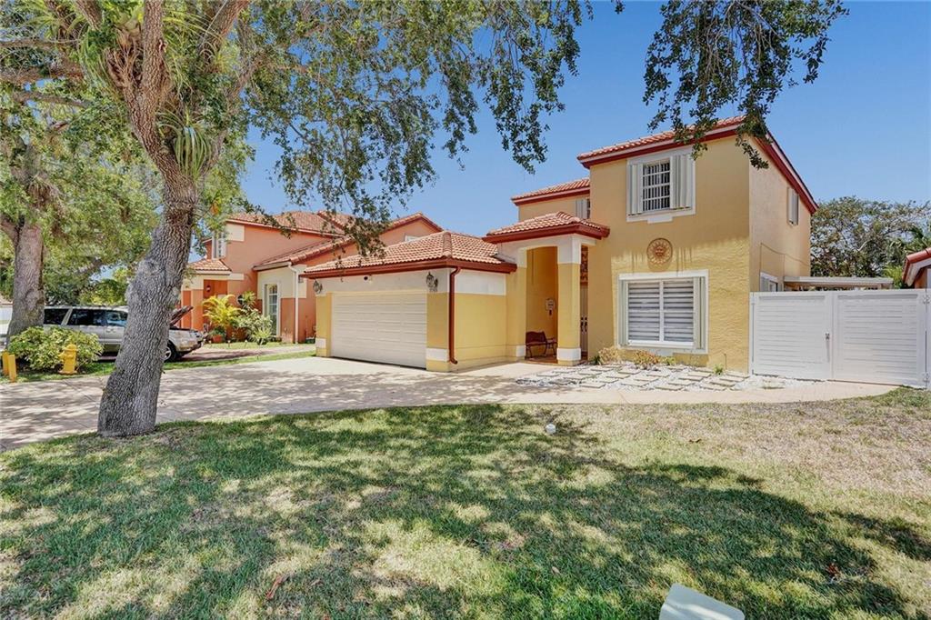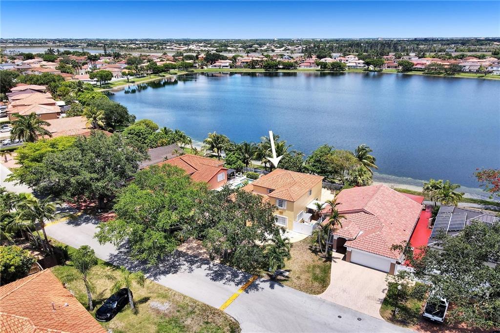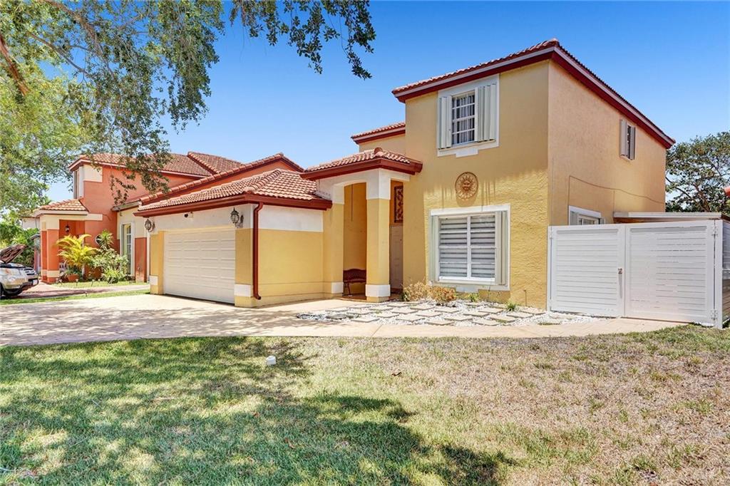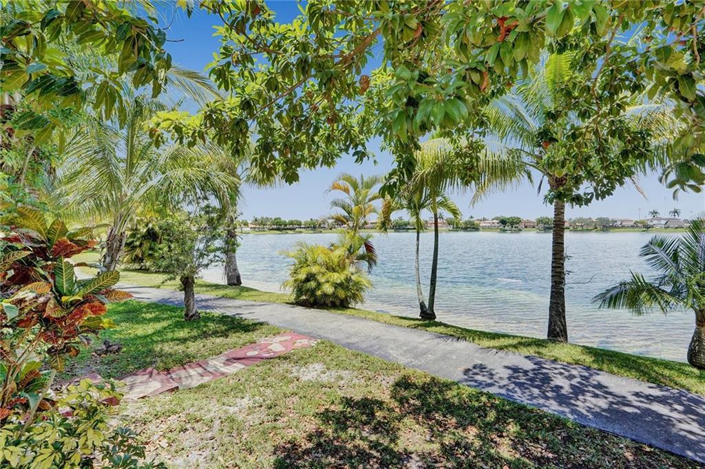 Welcome to this move in ready home, ready for its new owners! From the moment you enter, you are greeted by vaulted ceilings & water views. This waterfront beauty is bright, spacious & full of light. It features 3 beds(with the possibility to add a 4th), 2.5 baths, kitchen w/island, granite countertops, stove & beverage cooler, & an attached 2 car garage (with impact rated garage door), accordion shutters throughout the entire home, a mango tree, & a patio w/ lake views. From the backyard you have access to a walking path that leads to the clubhouse & pool. Situated in the lovely private community of Marbella Park, with 24Hr manned guard gates, clubhouse & community pool. Located near highways, shopping, dining, schools & more! EASY TO SHOW! Do not miss it!