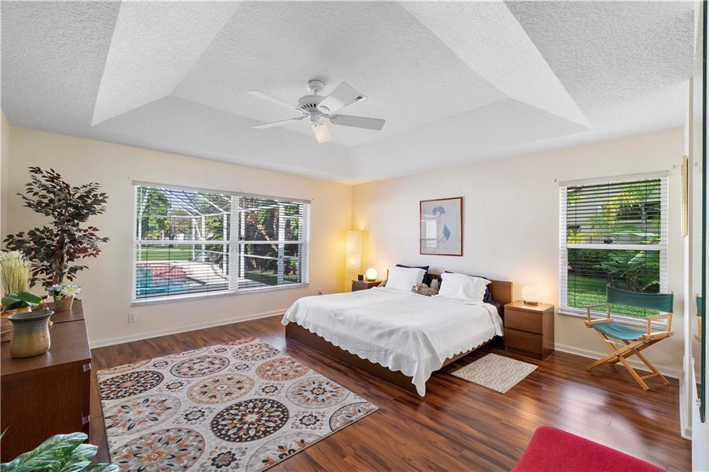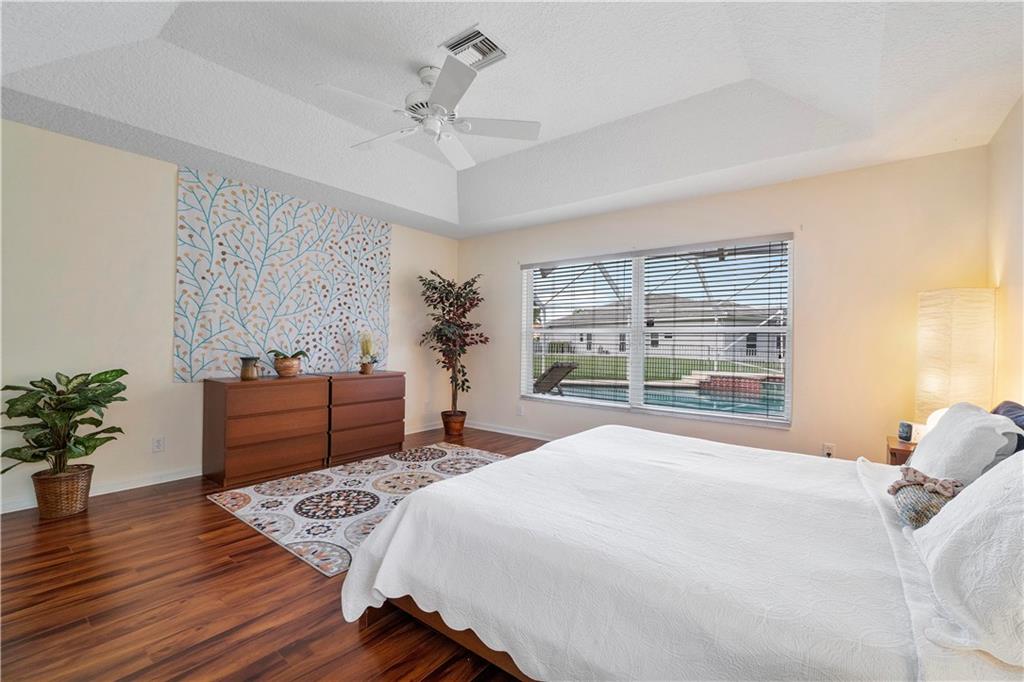 Welcome home to this well maintained sprawling 4 bedroom 3 full baths with warranted NEW ROOF plus Screened Resort style pool and spa all overlooking a tranquil lake . Home sits on a oversized 12,063 sf lot on prime cul de sac location. Dramatic high ceilings and architectural appeal throughout this open triple split Maplewood Addition home with plenty of natural lighting. No Carpet! Newer "wood like" floors in the bedrooms and new tile in all bathrooms. Spacious kitchen with wood cabinets. Large pantry and breakfast area overlooking the family room and backyard. Primary bedroom has 2 large closets and tray ceiling huge bath with seperate tub and shower and 2 seperate vanities. Water your yard for free as sprinkler is off the lake. NO HOA! Close to parks, stores, schools and shops.