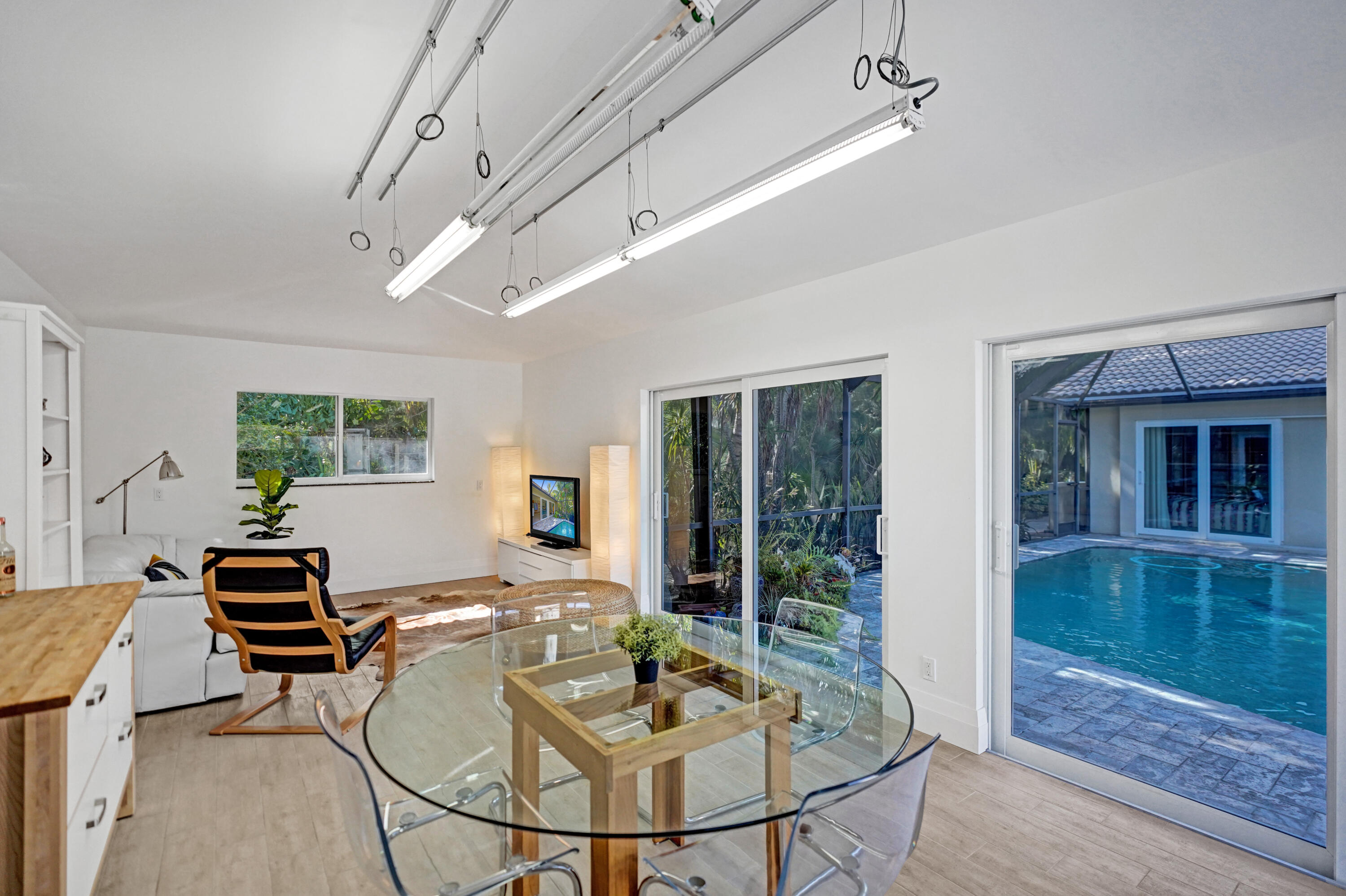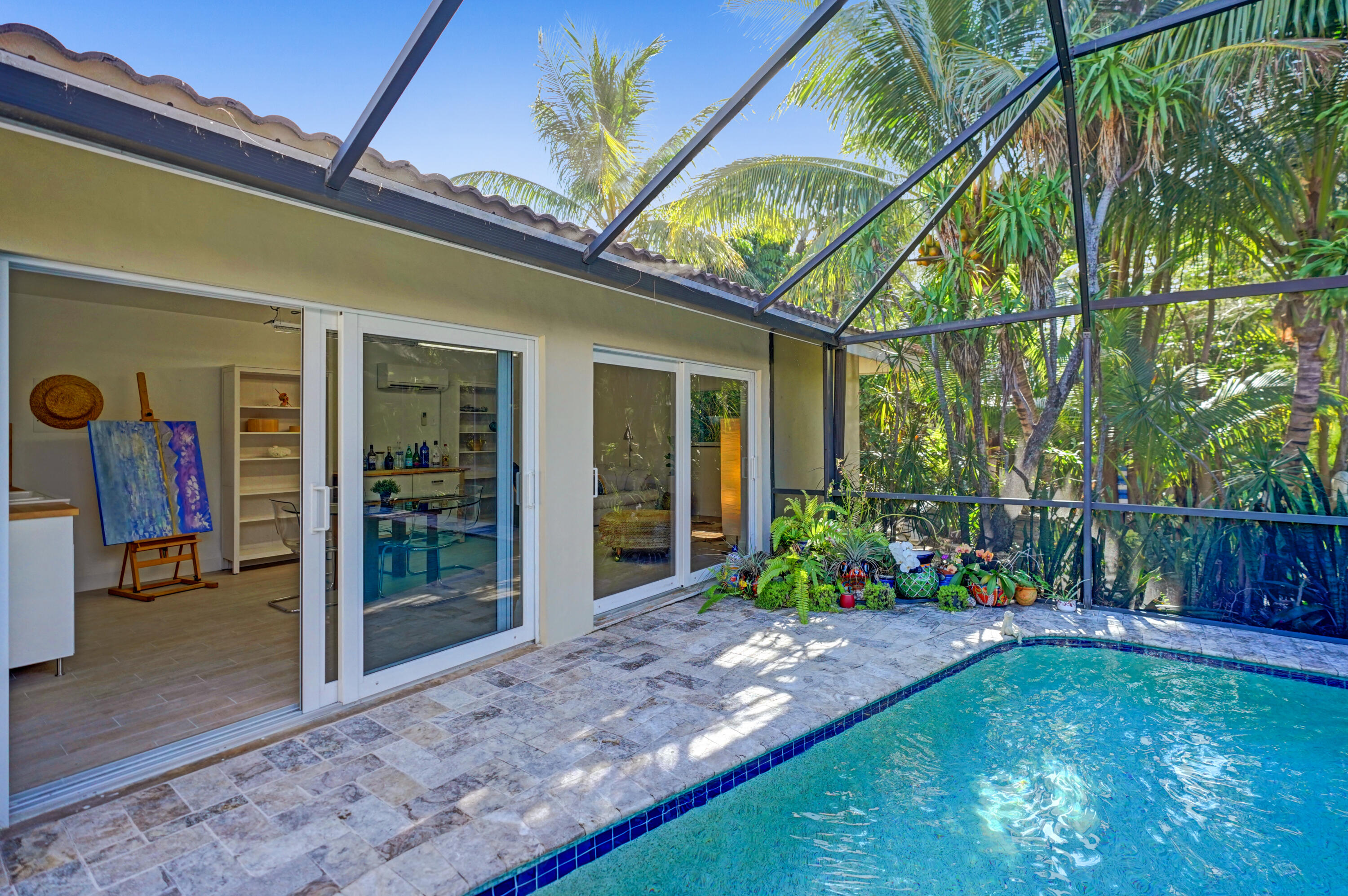 Absolutely stunning 3 bed (convertible 4) 2 bath home in the sought after community of Lake Floresta! A+ schools, great shopping, fabulous restaurants and close proximity to 95 and the beach make this location prime. There are 2 structures on the property, the main house and a 392 sq ft unit that is set up as an art studio currently but could have many purposes such as an entertainment room, office, etc. This property boasts a private screened in pool, large patio, mango tree, impact windows and lush landscaping. Inside the home you will notice a large dining room, modern white kitchen cabinets, ss appliances, granite countertops, range hood, tile backsplash, recessed lighting, tile floors throughout, large family room, modern bathrooms, and so much more. This home is a must see!!