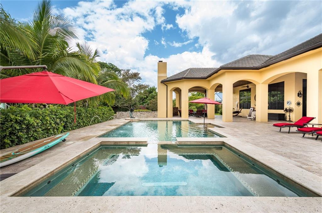 AMAZING FAMILY ESTATE LOCATED ON A QUIET CUL-DE-SAC, BOOSTING 1.4 ACRES OF LUSHLY TROPICAL PARK LIKE SETTING. CONSTRUCTED BY RENOWNED BUILDER WITH ALL THE QUALITY FEATURES IN MIND. THIS ENTERTAINERS PARADISE DELIVERS A WONDERFUL OPEN FLOOR PLAN WITH GENEROUS USE OF DESIGNER ELEMENTS THROUGHOUT. ALL BEDROOMS ARE ON-SUITES FOR LIFES PRIVATE COMFORTS. ONE OF A KIND LANAI WITH OVER 2,000 SQFT OF ROOFED AREA COMPLEMENTED BY FULL SUMMER KITCHEN AND CHARMING OUTDOOR FIREPLACE. NOT 1 BUT 2 PRIVATE APARTMENTS (GUESTHOUSES) 5 CAR GARAGES ON PROPERTY WITH PLENT OF ROOM TO PARK RV/BOAT.