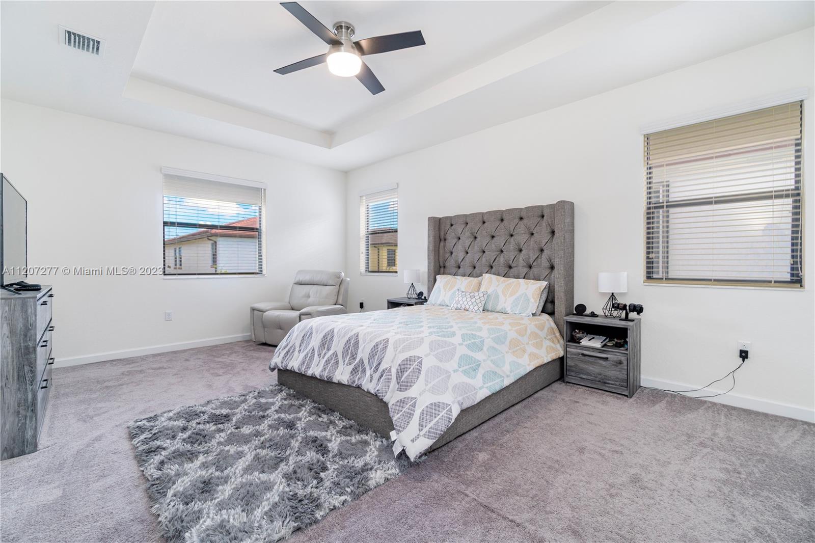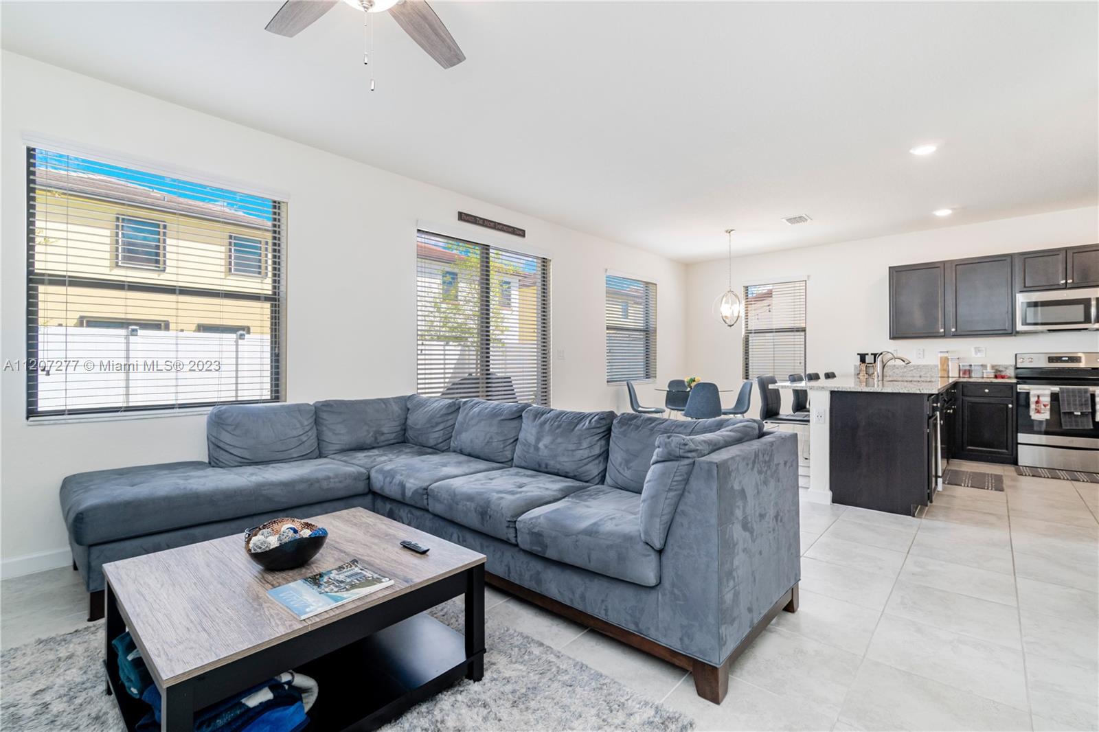 This home features 3 bedrooms, 2.5 baths in 2,407 Sqft with a modern kitchen, stainless steel appliances, double-door refrigerator. Spacious Master Bedroom. Modern tile downstairs and carpet upstairs. Lots of natural light. Full size Washer & Dryer. Two car garage and parking for 2 cars on the driveway. Residents will enjoy a great lakefront Clubhouse with children's playground, resort-style pool and state of the art gym. Excellent location, close to Miami Lakes excellent schools, shopping, restaurants and easy access to the main highways.