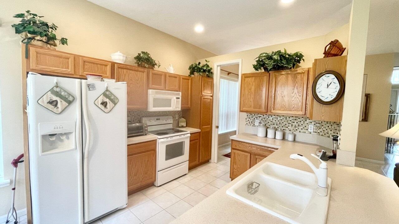This beautiful home has been gently used by a single owner and lovingly maintained. Located on a cul del sac in a very private setting, tile in the main living areas, wood floors in two bedrooms and carpet in the third bedroom/den. The 3rd bedroom is currently used as a den but could easily act as a bedroom.The kitchen is very spacious and also offers an eat in kitchen and opens to the family/living area. There is a formal dining area which could also be used as an alternate living/work space. The water heater was replaced in 2021 and the ac in 2011. The master suite has tray ceilings, huge walk in closet, large bathroom with soaking tub and separate shower and double sinks. Other great features - separate laundry room, screened lanai overlooking a peaceful garden view,
