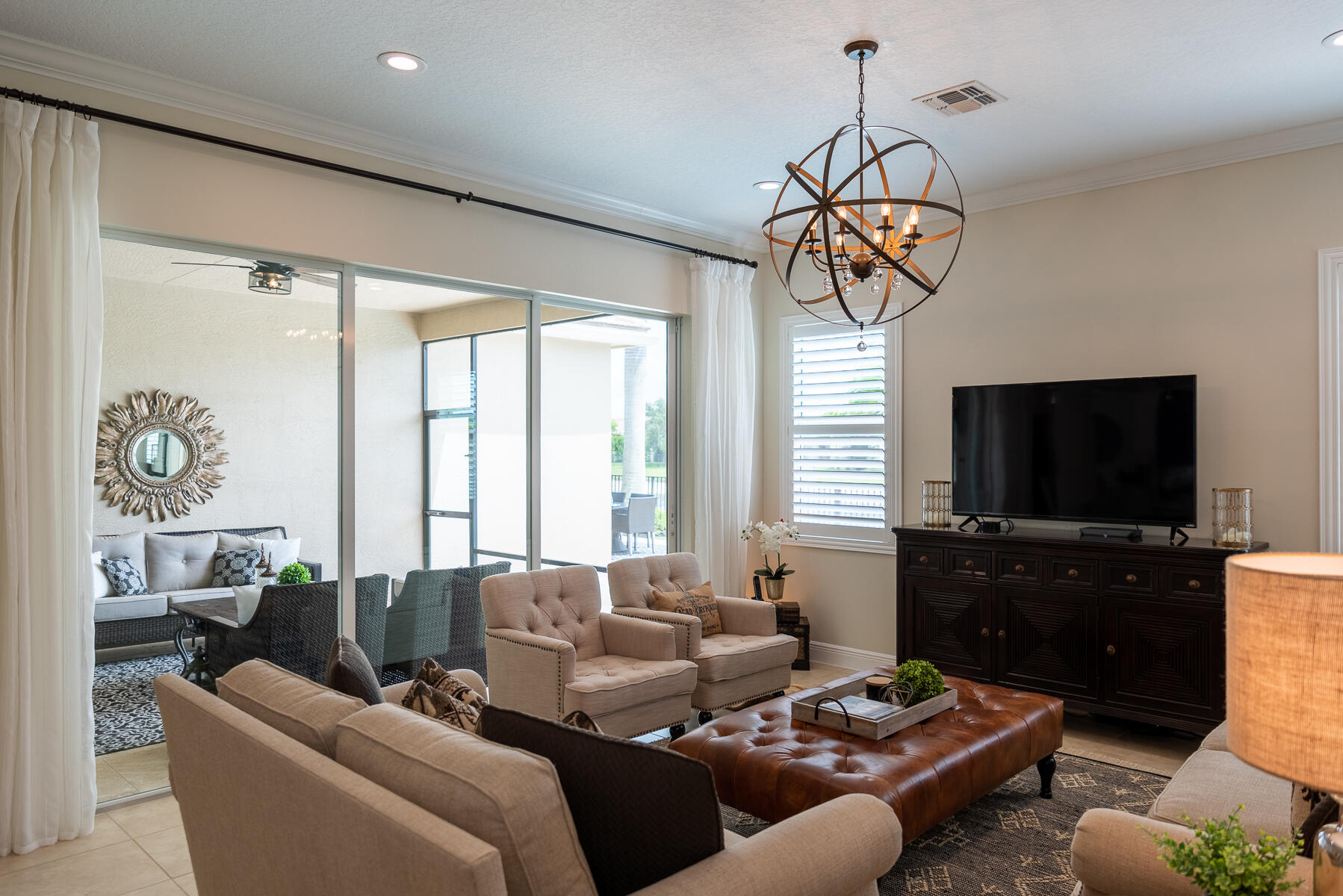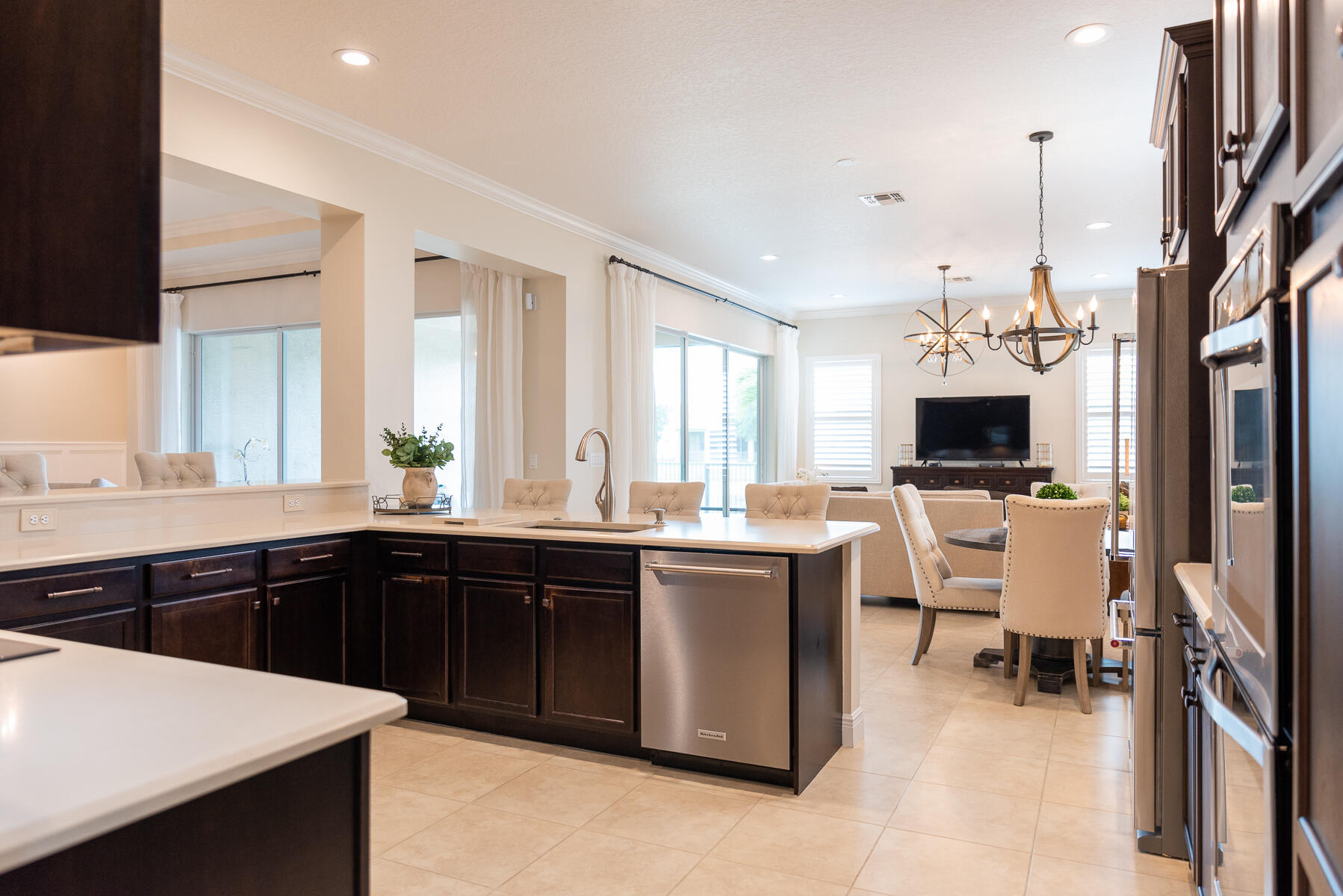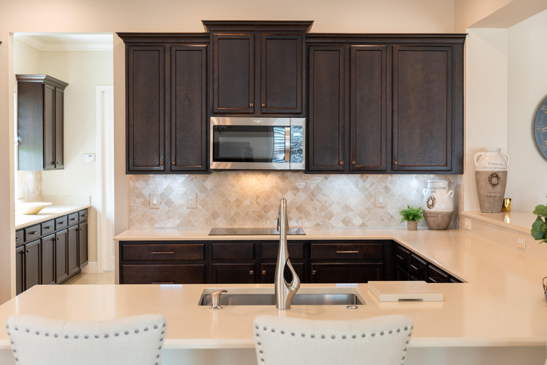 RARE OPPORTUNITY! This stunning pool home is one of only five properties in the community with lake views in the front AND back. With 4 bedrooms, 3 bathrooms, 3 car garage, this single-story home carries exceptional finishes throughout. This home features a large, renovated chef's kitchen with quartz countertops and marble backsplash and is open to the living room and family room. The large dining room, with butler's pantry, is perfect for entertaining. The updated saltwater pool features new travertine tile throughout the lanai and pool deck areas, new glass pool tile and all new pool equipment. The 2-car garage features Racedeck Snaplock flooring and the 1-car garage is insulated with AC.