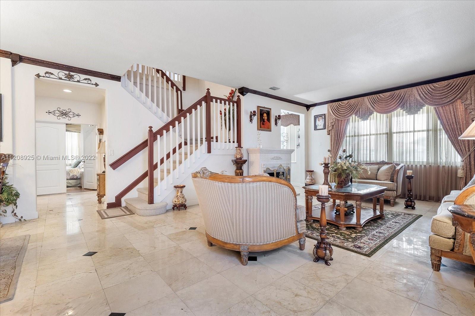 Two-story home with 5 bedrooms and 3 bathrooms in oversized lot with plenty of space for a pool. Located in gated community Nautica in West Miramar. One bedroom and full bathroom are located on 1st floor. Master bedroom w/ seating area. This home features formal dining and living rooms, marble floors throughout the 1st floor, and carpet on the 2nd floor; Kitchen with wood cabinets, granite countertops, and stain steel appliances with a separate breakfast area. Spacious family room and covered area in the backyard, perfect for entertaining. Large laundry room and 3-car garage. Resort-style amenities include 24-hour security, pools, clubhouse, gym, party room, tennis and basketball courts and jogging trails. Close to I-75, shopping, restaurants, parks and the Memorial Hospital. A+ Schools.