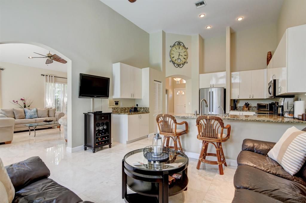 Enjoy a great Florida lifestyle in this stunning pool home in turn- key condition. Rooms flow from foyer w/ cathedral ceilings, to the living & dining room which overlooks the resort style pool area & lush tropical garden. Chef's kitchen w/SS appliances, lots of cabinets & breakfast bar. Relax in family room. Master suite w/ a walk-in closet, tub, dbl. vanities & glass door shower stall. This split bedroom plan creates privacy for you and your guests, with a spacious guest bedroom, a hall bath w/glass door shower, tub & vanity, 1/2 bath & flexible 3rd bed or office. Marble floor throughout. Utility room. Santa Barbara is an lovely community, zoned for top-rated public schools, short drive to private schools & Universities. Community has a clubhouse, w/ a pool & gym & other amenities