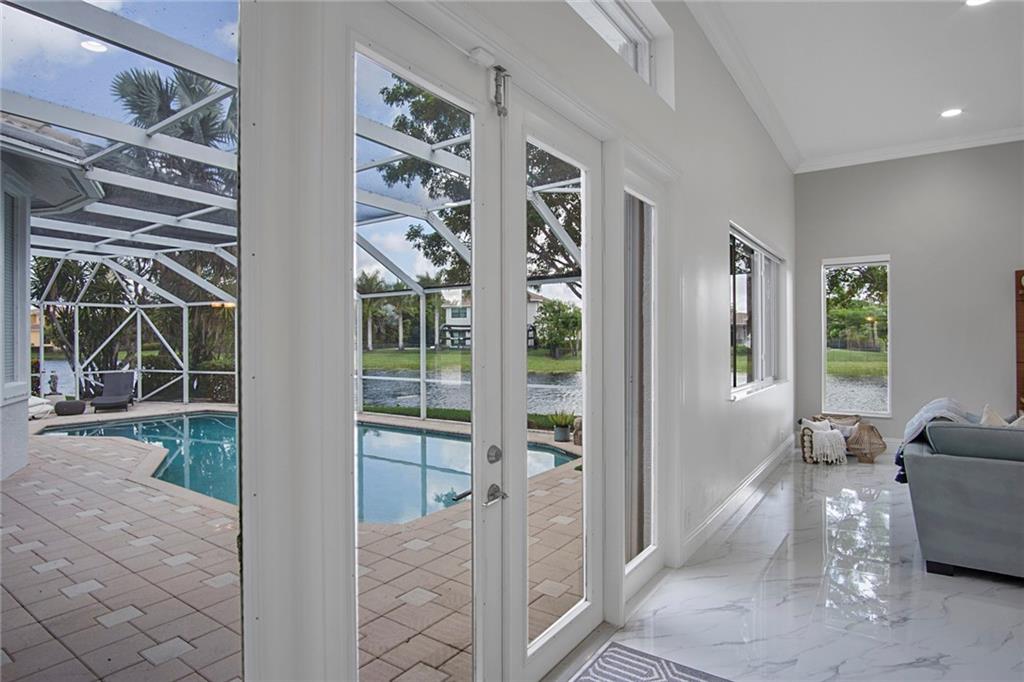 BEST DEAL IN THE CITY*AMAZING OPPORTUNITY TO PURCHASE THIS 5/3 TRIPLE SPLIT ON OVERSIZED (OVER 1/3 ACRE)WATERFRONT TROPICAL CUL-DA-SAC LOT IN MANNED GATED MEADOW RUN ESTATES. THIS OPEN FLOOR PLAN HOUSE HAS BEEN TOTALLY RENOVATED W/ NEW KITCHEN WITH QUARTZ COUNTERTOPS, EXTRA LONG ISLAND, STAINLESS STEEL APPLS INCLUDING DOUBLE OVEN, BUILT IN WINE COOLER, PULL OUT DRAWERS IN PANTRY, NEW TILE FLOORING THROUGHOUT INCLUDING “WOOD LOOK” TILE IN THE BEDROOMS, EXTRA LARGE MASTER BEDROOM WITH SITTING ROOM, 2 WALK IN CLOSETS, DUAL SINKS IN THE MASTER BATHROOM, SHOWER WITH BODY JETS, SEPARATE TUB, PRIVATE TOILET & BIDET ROOM, ACCORDION SHUTTERS THROUGHOUT, 3 CAR GARAGE, HOT WATER HEATER 2018, SCREENED IN PATIO/POOL OVERLOOKING LAKE, VERY PRIVATE LOT & MORE!