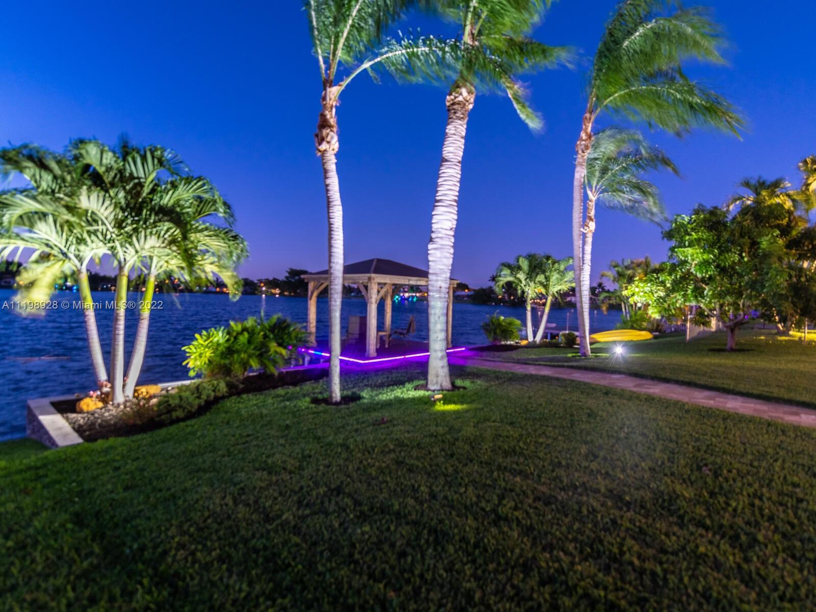 Indulgent tropical paradise from the moment you step out of the back doors leading to an enclosed & covered 20x80' travertine patio, just outside that you will find the outdoor kitchen & shed. The yard has a mature mango tree, sprawling palms, & massive lake view with 80' water frontage. Extended yard leads to a custom dock with pavilion & sunshade. The home has been immaculately maintained & extensively updated with all impact windows and doors (including the garage) & a newly upgraded kitchen, including spotless Samsung appliances & a/c unit all about a year and 1/2 new. You'll enjoy the customs closets, updated guest bath, & high end laminate flooring in most of the main area. You can see the pride in ownership reflected throughout this highly sought after lakefront home in Sunrise!!!