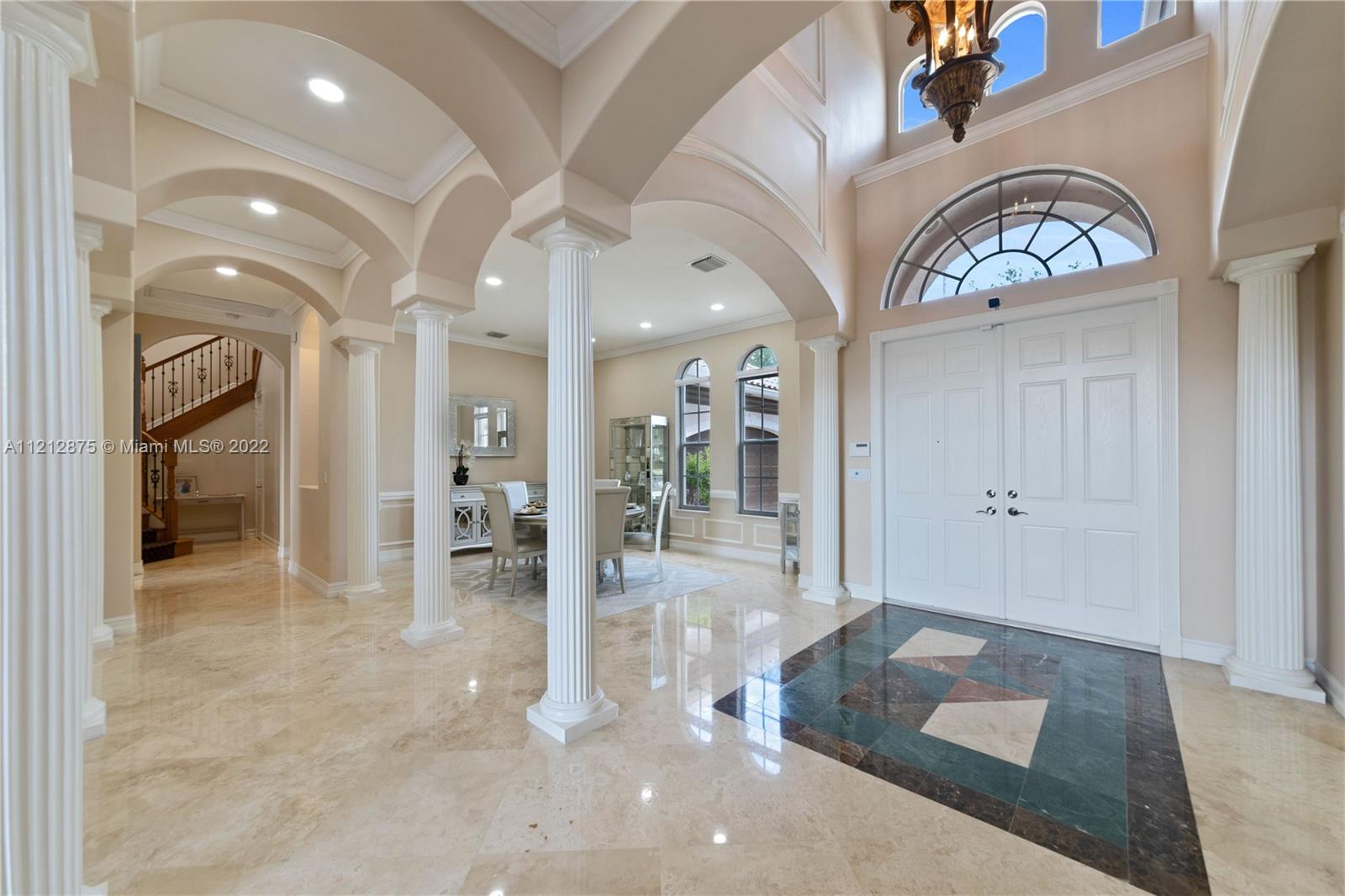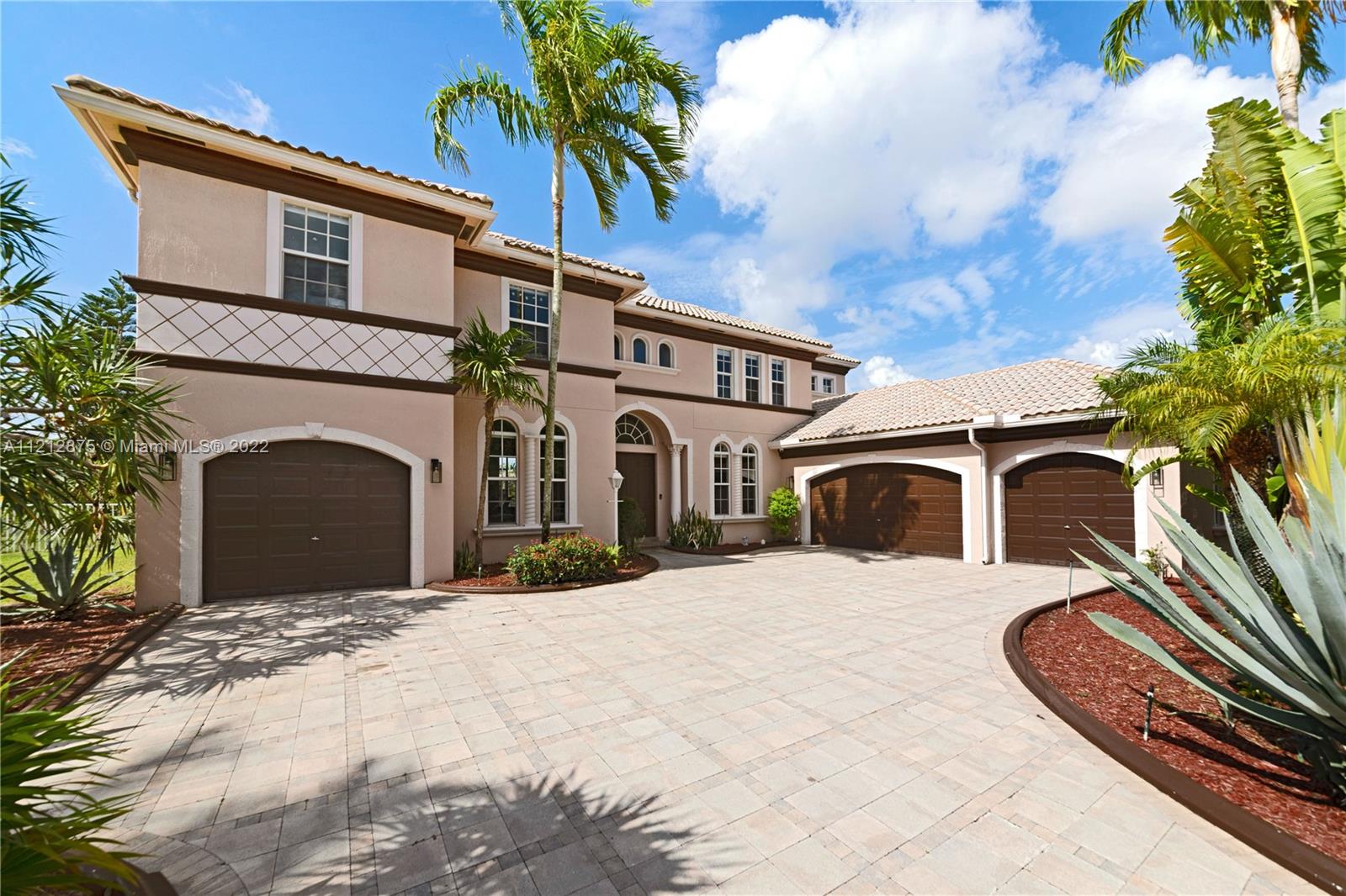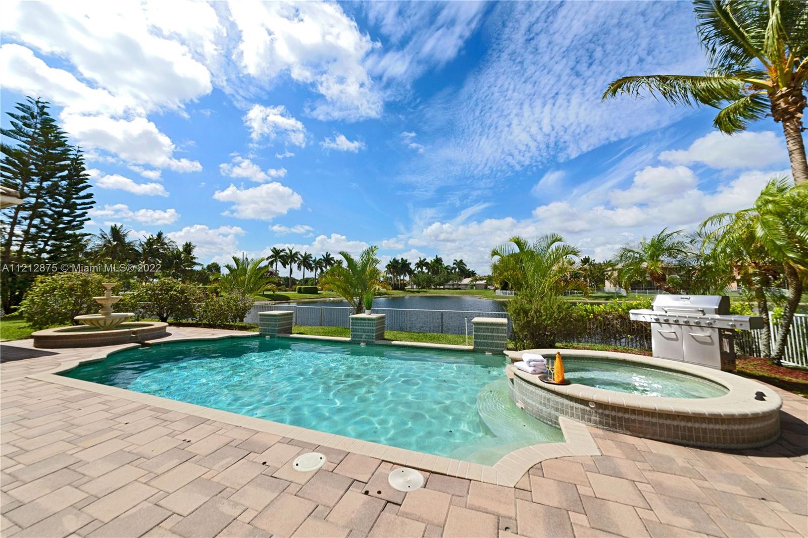 WELCOME TO THE SANCTUARY AT PEMBROKE FALLS! THIS RARELY AVAILABLE HOME IS PART OF THE ESTATES COLLECTION WHICH IS SITUATED ON A WATERFRONT PRIME LOT IN THE EXCLUSIVE GATED COMMUNITY WITHIN PEMBROKE FALLS. THE 5,843 SQ FT HOME OFFERS THE MOST SOUGHT AFTER FLOORPLAN ENCOMPASSING THE PRIMARY SUITE ON THE GROUND LEVEL WHICH OFFERS 2 FULL BATHS ALONG WITH STUNNING WATERVIEWS FROM THE SITTING AREA. STEPPING OUT OF YOUR PRIMARY SUITE, YOU HAVE FULL ACCESS TO A FULL OFFICE, FORMAL DINING, 30FT CEILINGS AND OPEN CONCEPT GOURMET KITCHEN INCLUDING WHITE CUSTOM CABINETRY WITH SPECTACULAR WATER VIEWS. THE 2ND LEVEL ENCOMPASSES AN OVERSIZED LOFT, 3 BEDROOMS & 3 FULL BATHS. ADDITIONAL FEATURES INCLUDE A FOUR CAR GARAGE, A WELL DESIGNED OUTDOOR SPACE INCLUDING A HEATED POOL, JACUZZI, DINING & LOUNGE AREA.