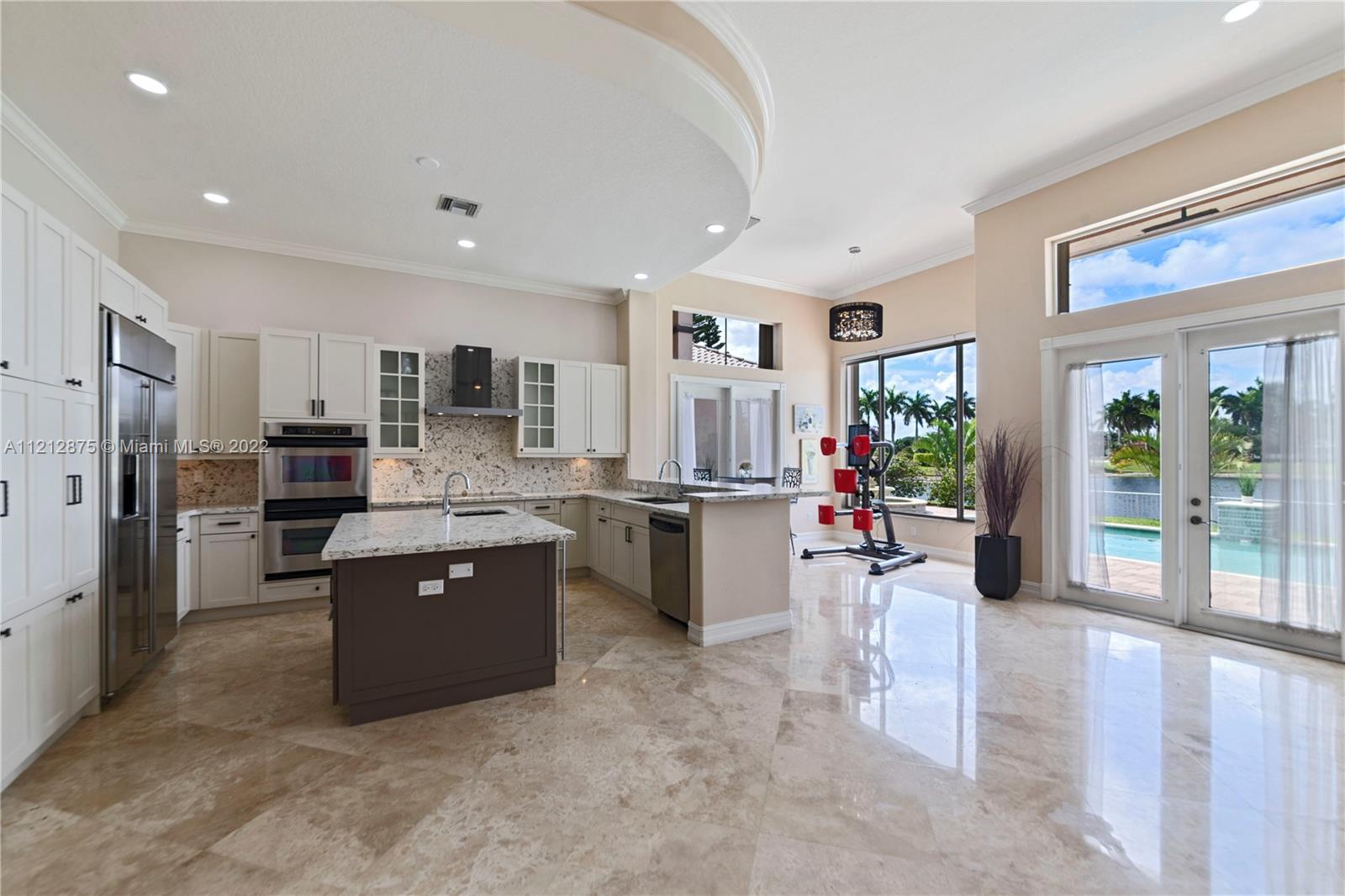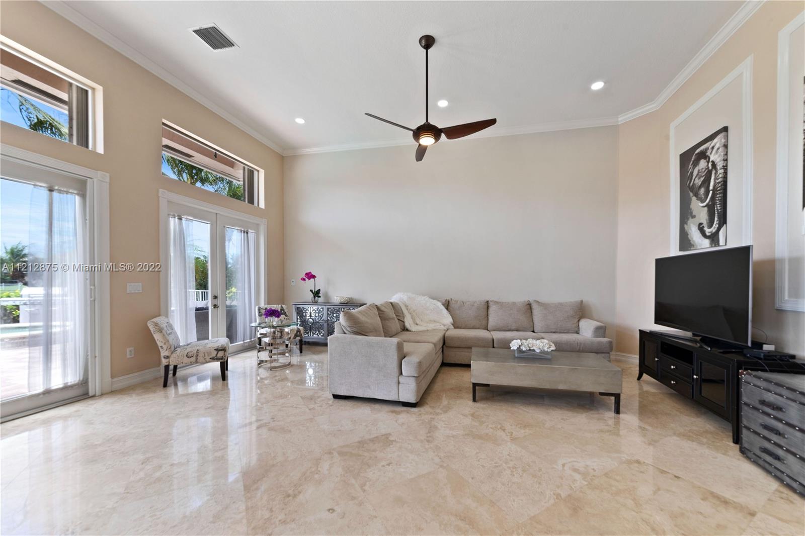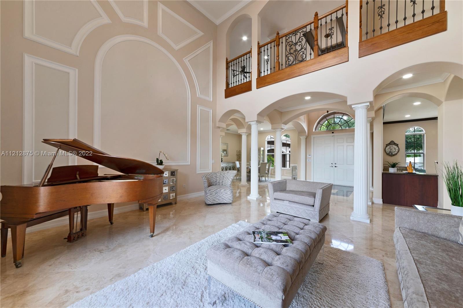 WELCOME TO THE SANCTUARY AT PEMBROKE FALLS! THIS RARELY AVAILABLE HOME IS PART OF THE ESTATES COLLECTION WHICH IS SITUATED ON A WATERFRONT PRIME LOT IN THE EXCLUSIVE GATED COMMUNITY WITHIN PEMBROKE FALLS. THE 5,843 SQ FT HOME OFFERS THE MOST SOUGHT AFTER FLOORPLAN ENCOMPASSING THE PRIMARY SUITE ON THE GROUND LEVEL WHICH OFFERS 2 FULL BATHS ALONG WITH STUNNING WATERVIEWS FROM THE SITTING AREA. STEPPING OUT OF YOUR PRIMARY SUITE, YOU HAVE FULL ACCESS TO A FULL OFFICE, FORMAL DINING, 30FT CEILINGS AND OPEN CONCEPT GOURMET KITCHEN INCLUDING WHITE CUSTOM CABINETRY WITH SPECTACULAR WATER VIEWS. THE 2ND LEVEL ENCOMPASSES AN OVERSIZED LOFT, 3 BEDROOMS & 3 FULL BATHS. ADDITIONAL FEATURES INCLUDE A FOUR CAR GARAGE, A WELL DESIGNED OUTDOOR SPACE INCLUDING A HEATED POOL, JACUZZI, DINING & LOUNGE AREA.