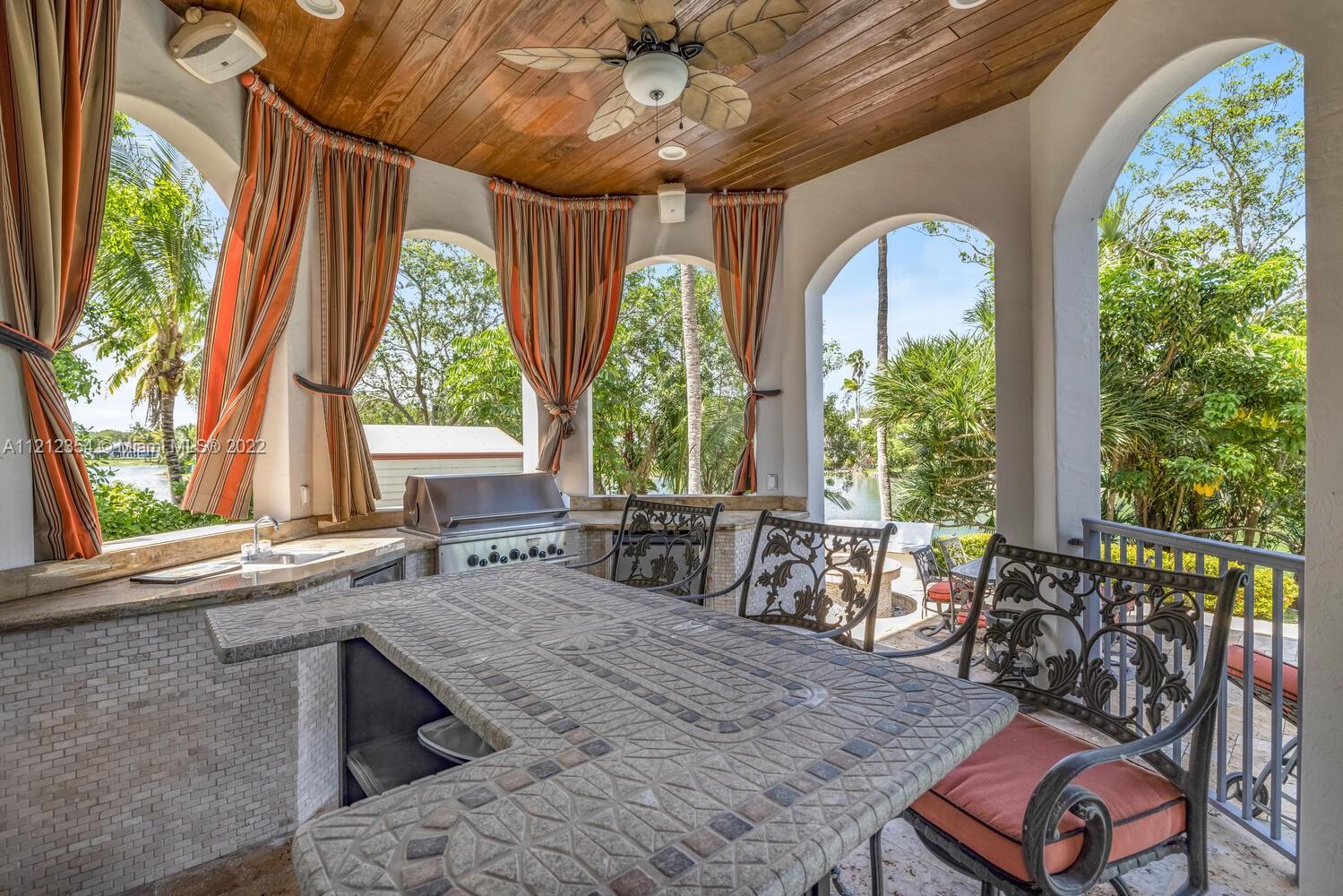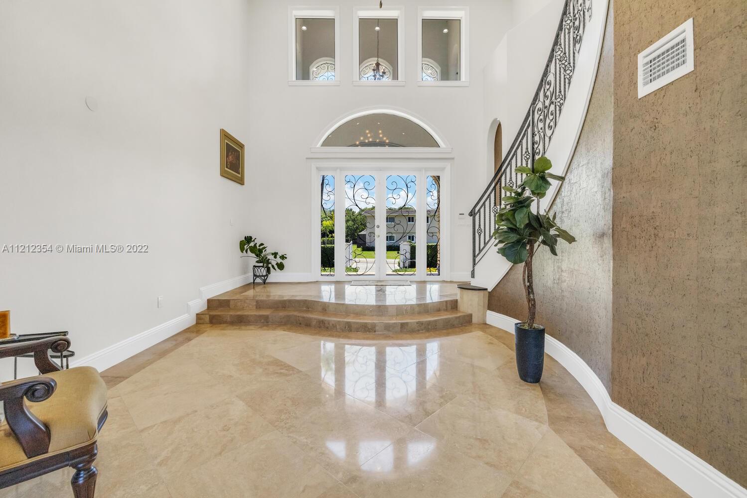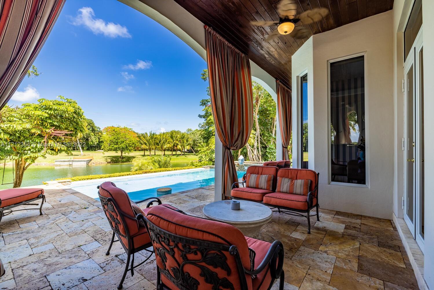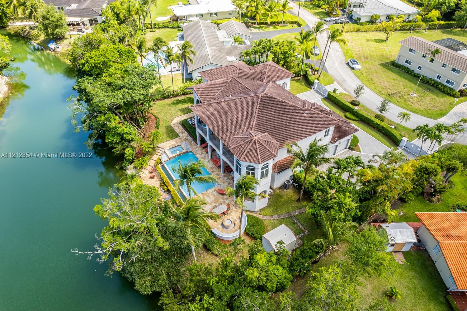 Old world meets modern in this Chateau-inspired estate, built in 2008, featuring panoramic lake views throughout. Lapping water beckons ..... sit and enjoy tranquility and serenity at the edge of Rock Lake in Pinecrest. Flowing staircase, double height ceilings, infinity pool, terrace with summer kitchen, 3 car garage, butler's pantry, wine cellar, Viking appliances (gas stove), elevator shaft. Dreamy master bedroom offers foyer and parlor with wrap around windows for majestic lake views. Every room with bathroom en-suite. Rich stonework and textures throughout, travertine marble floors. Built in firepit. AC's replaced in 2019, A-rated Pinecrest schools nearby. Two bedrooms and full baths downstairs. Immerse yourself in the grandeur and luxury of this home. You'll never want to leave!