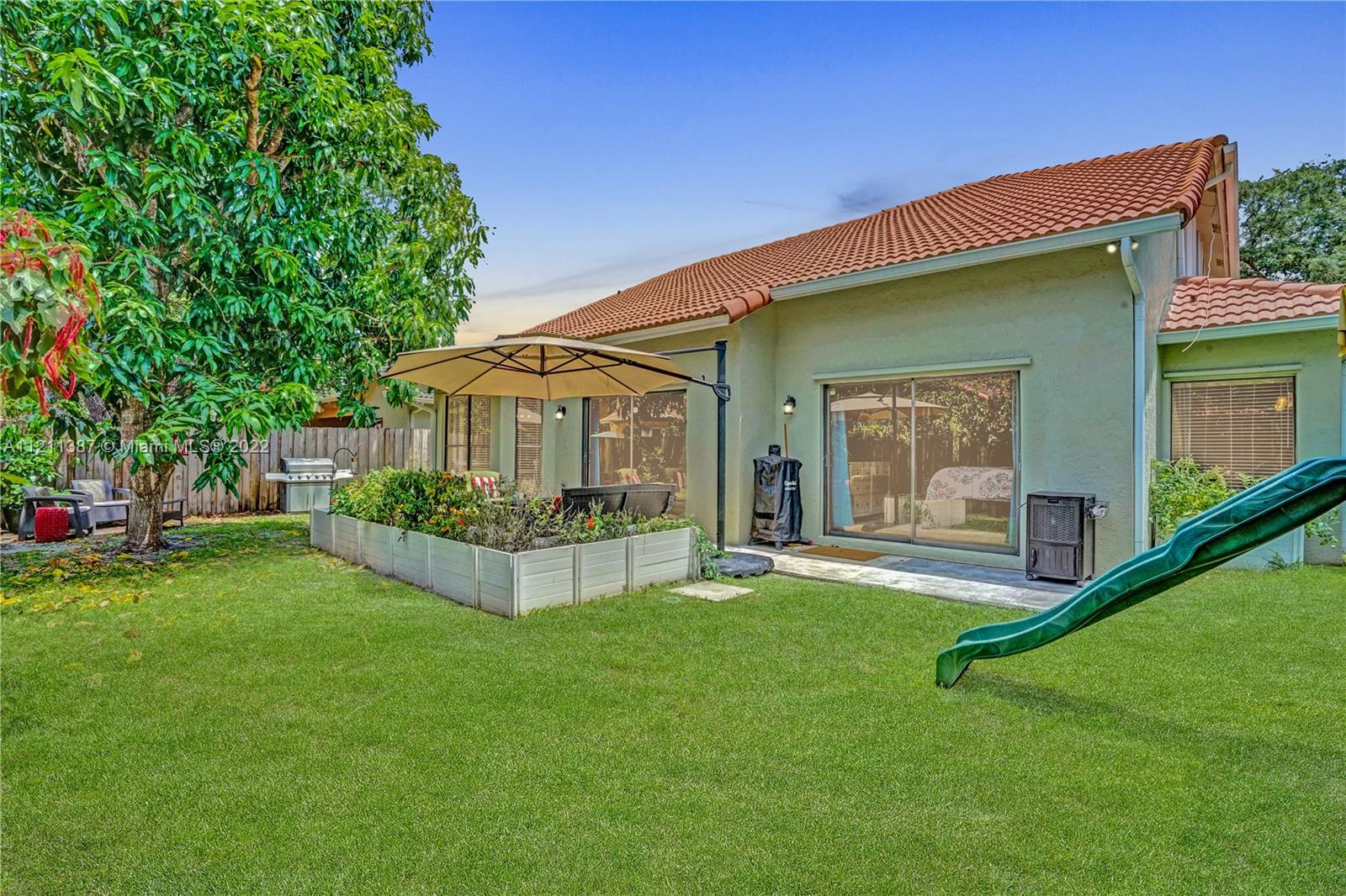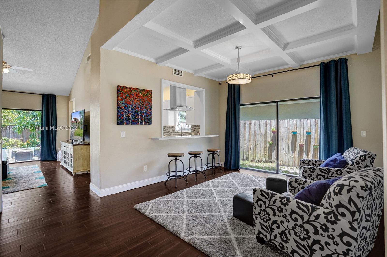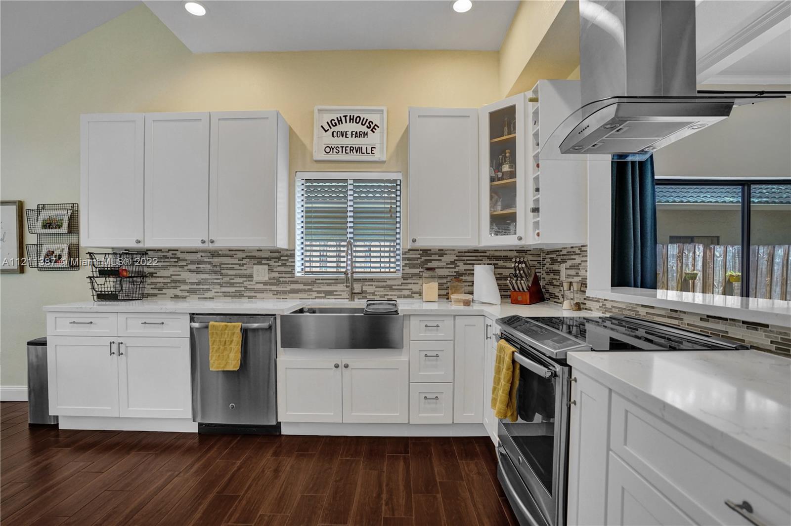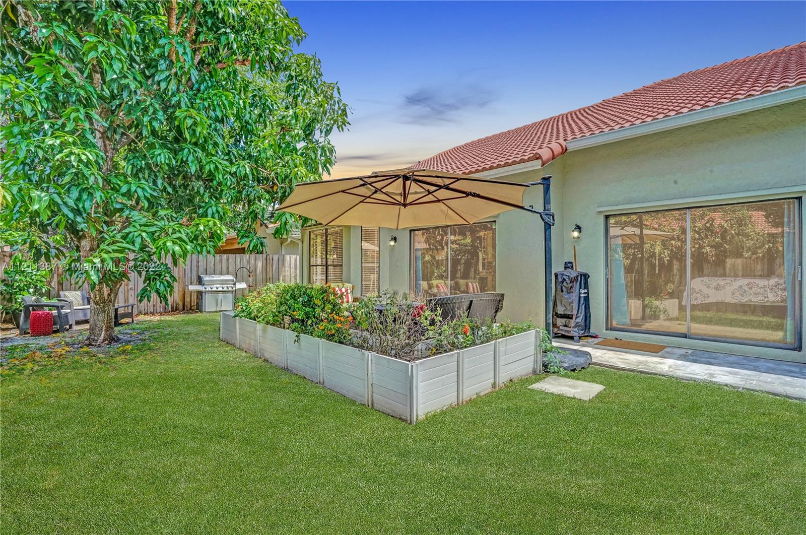 Gorgeous, light & bright, this freshly painted 4 bed, 2.5 bath, 2 car garage home is waiting for you! Featuring an open concept layout w/designer plank tile flooring throughout spacious living areas, a generously sized kitchen w/high end Napoli quartz countertops & tastefully remodeled baths. Offering amazing outdoor living space w/an extended patio perfect for BBQ, large fenced yard, Valencia Pride mango tree, Barbados cherry, vegetable garden & butterfly garden! Indoors, watch hummingbirds, butterflies & painted buntings from the breakfast nook over morning coffee. Smart light switches, irrigation system & Ecobee thermostat! Great location in the heart of Cooper City, close to A+ schools & the Cooper City Community Center (featuring pool, splash pad, tennis, gym, basketball & more)!