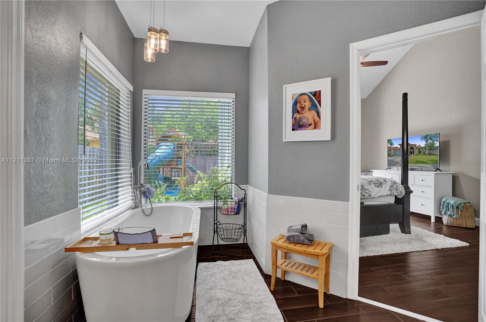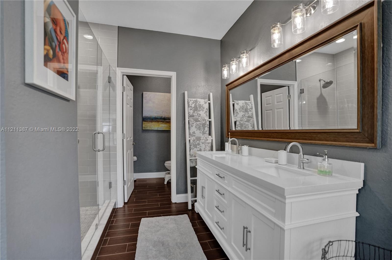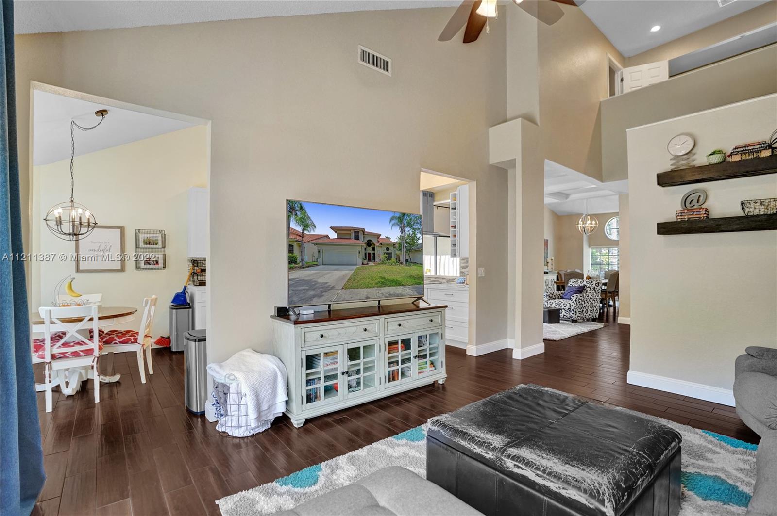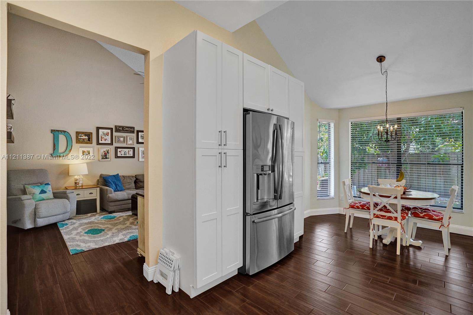 Gorgeous, light & bright, this freshly painted 4 bed, 2.5 bath, 2 car garage home is waiting for you! Featuring an open concept layout w/designer plank tile flooring throughout spacious living areas, a generously sized kitchen w/high end Napoli quartz countertops & tastefully remodeled baths. Offering amazing outdoor living space w/an extended patio perfect for BBQ, large fenced yard, Valencia Pride mango tree, Barbados cherry, vegetable garden & butterfly garden! Indoors, watch hummingbirds, butterflies & painted buntings from the breakfast nook over morning coffee. Smart light switches, irrigation system & Ecobee thermostat! Great location in the heart of Cooper City, close to A+ schools & the Cooper City Community Center (featuring pool, splash pad, tennis, gym, basketball & more)!