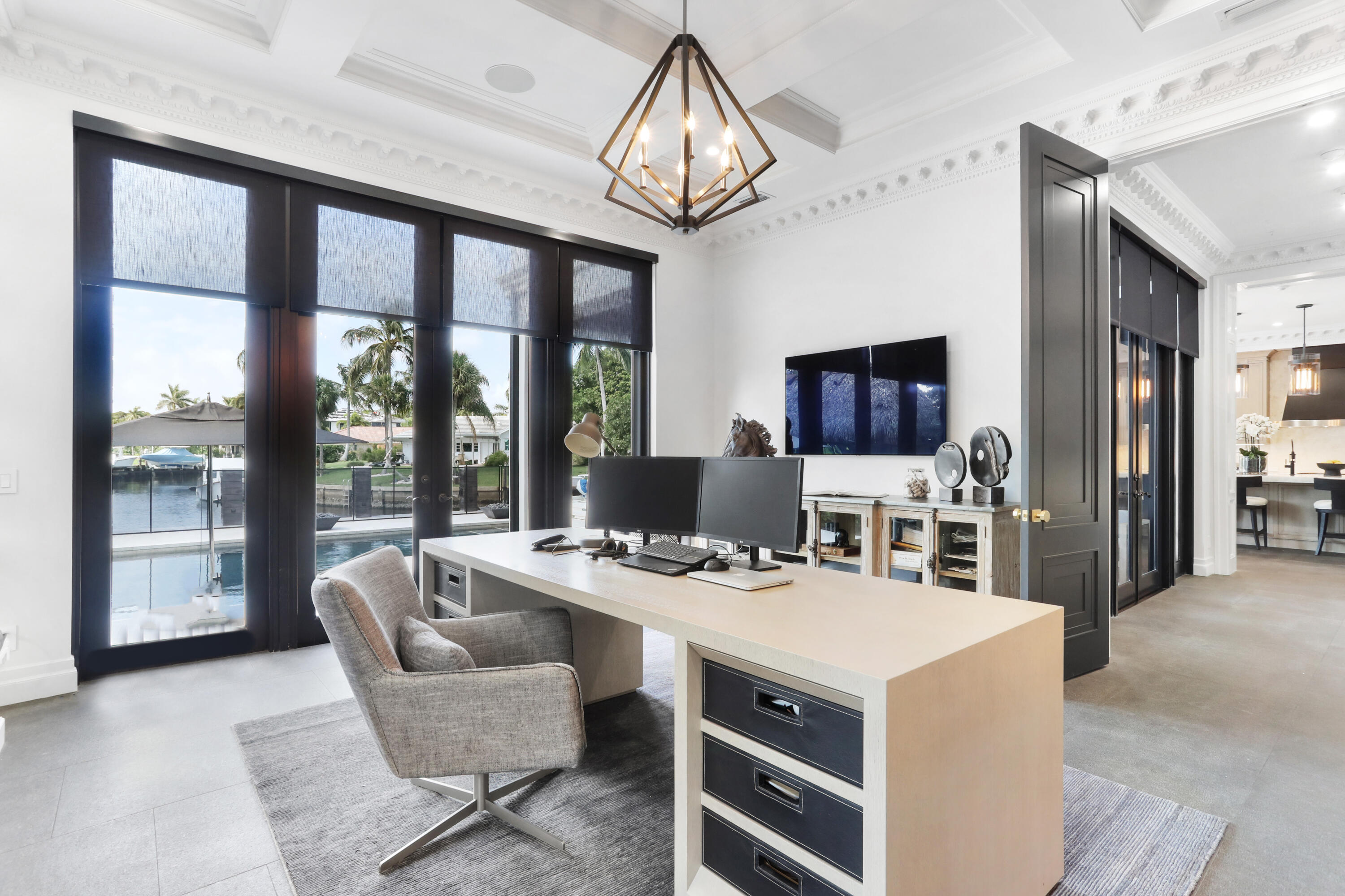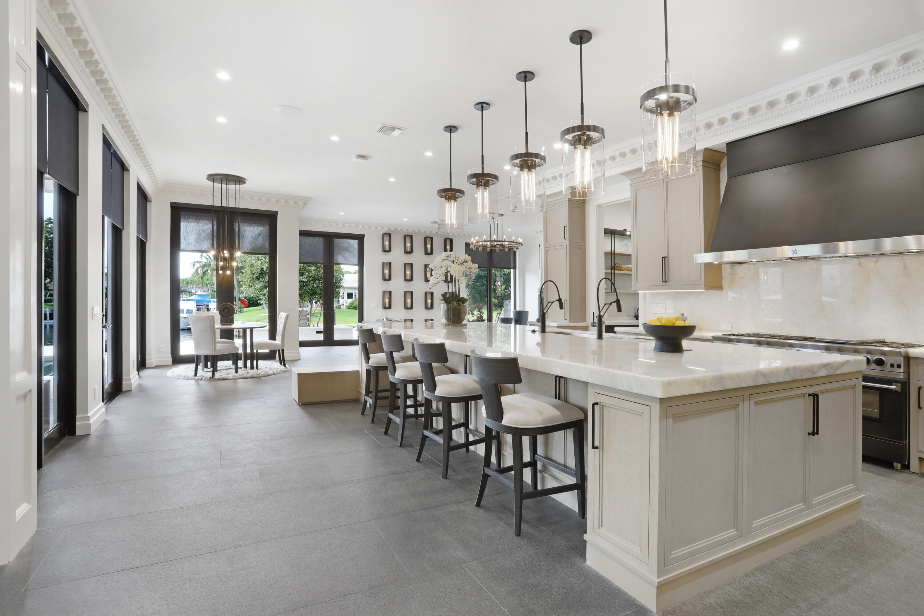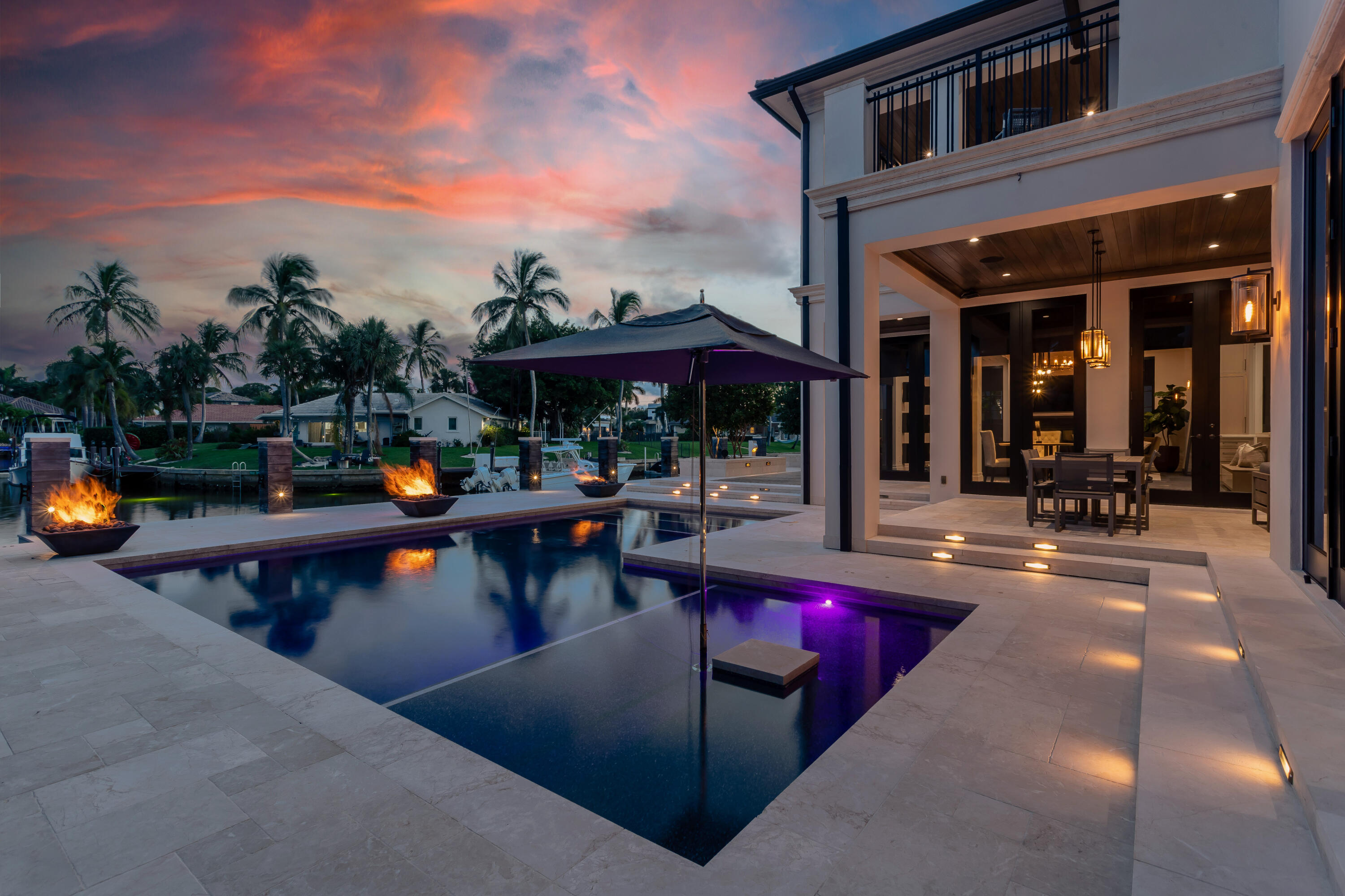 Located on one of the most sought-after streets & communities in East Boca Raton, this spectacularly custom crafted contemporary waterfront estate exudes quality and refinement. This prime lot situated on 85 feet of deep water with a brand new raised dock and seawall, is the perfect retreat for the avid boater with no fixed bridges and only minutes away from the ocean. A complete rebuild transformed this two story estate into a stunner, boasting exceptional indoor-outdoor living, with no attribute left untouched. Step into the grand foyer featuring soaring ceilings and opening to an exceptional floor plan. Sleek craftsmanship, unparalleled quality, and a unique mix of bespoke and warm finishes throughout the entire home makes this estate fit for the most discerning occupant. See 'More'..