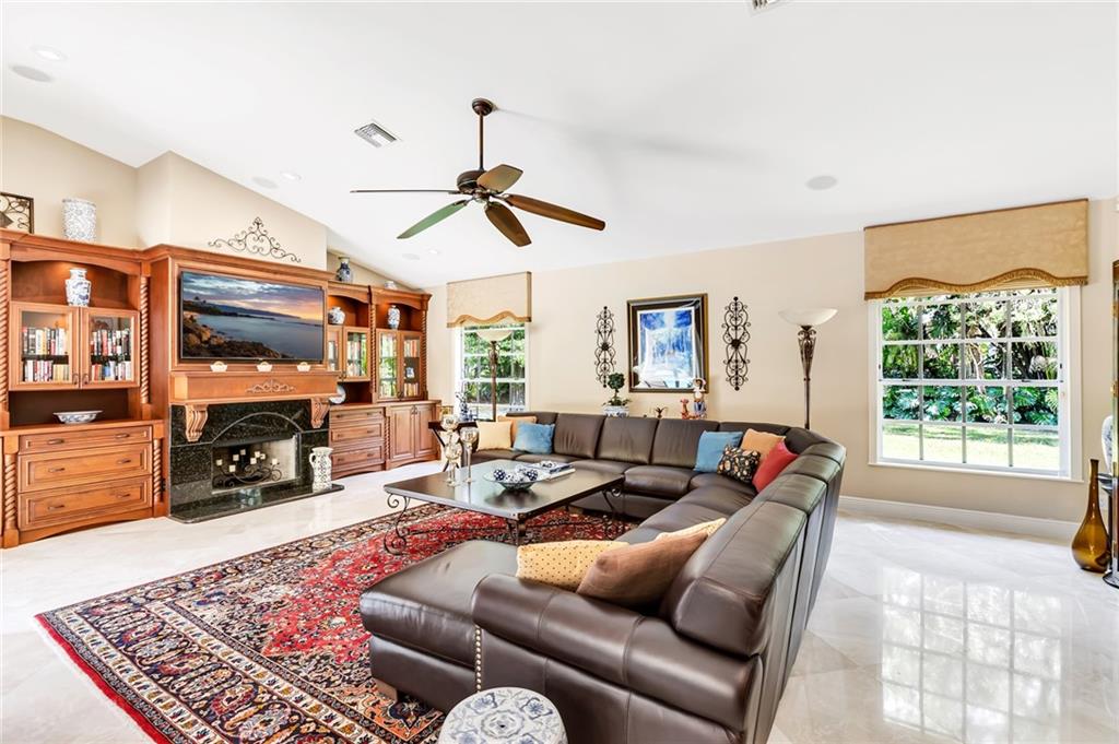 WELCOME HOME to this Expansive 5 bedroom 4 bath, 3 car garage home on a 1.25 acre lot in the Exclusive neighborhood of Whispering Woods! When you drive through the manned gated community you will notice the beautiful tree lined streets with one of a kind homes. This Spacious home has beautiful Marble Floors throughout the living areas with large windows looking out to the incredible pool and patio area with outdoor kitchen and bar with plenty of seating great for entertaining. The Gourmet kitchen has Liebherr refrigerator, Thermador oven, microwave, cooktop, and dishwasher. The Family room, Living room, and Patio all have Surround Sound throughout. There are new 3 zone Carrier A/C units. The garage has new Garage Doors, Custom Cabinets and Epoxy floors. A Definite Must See!