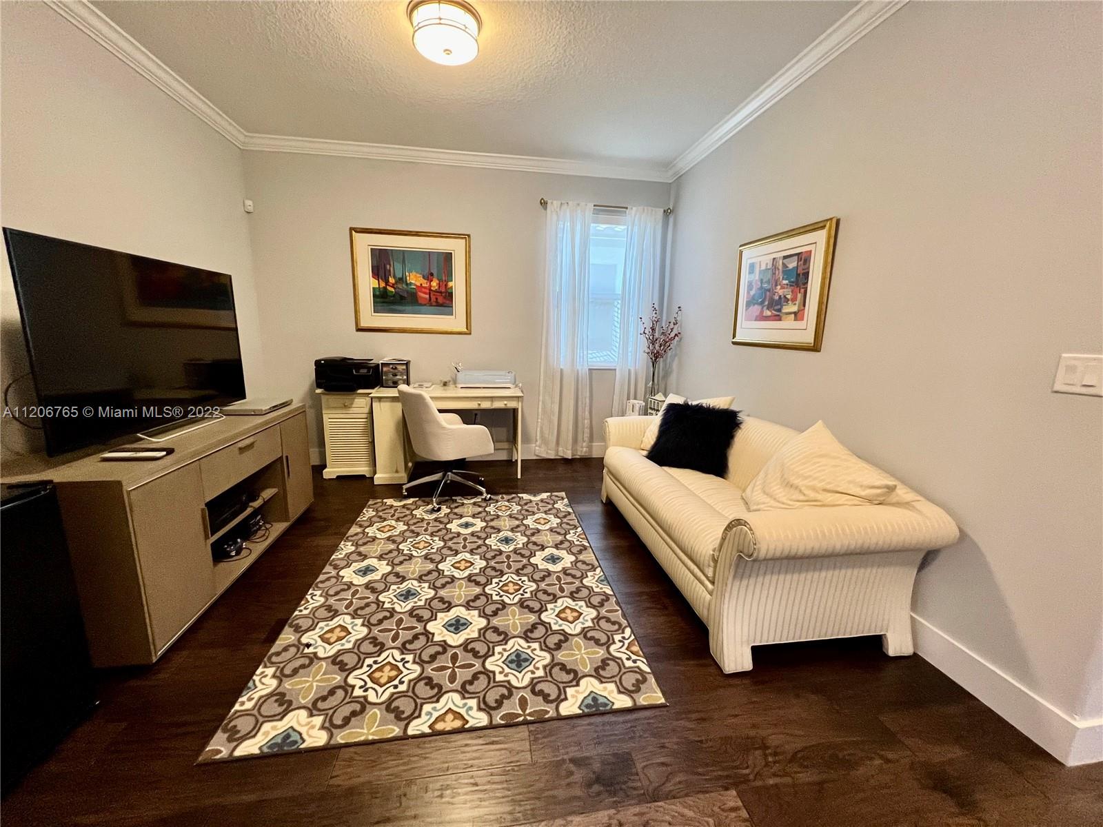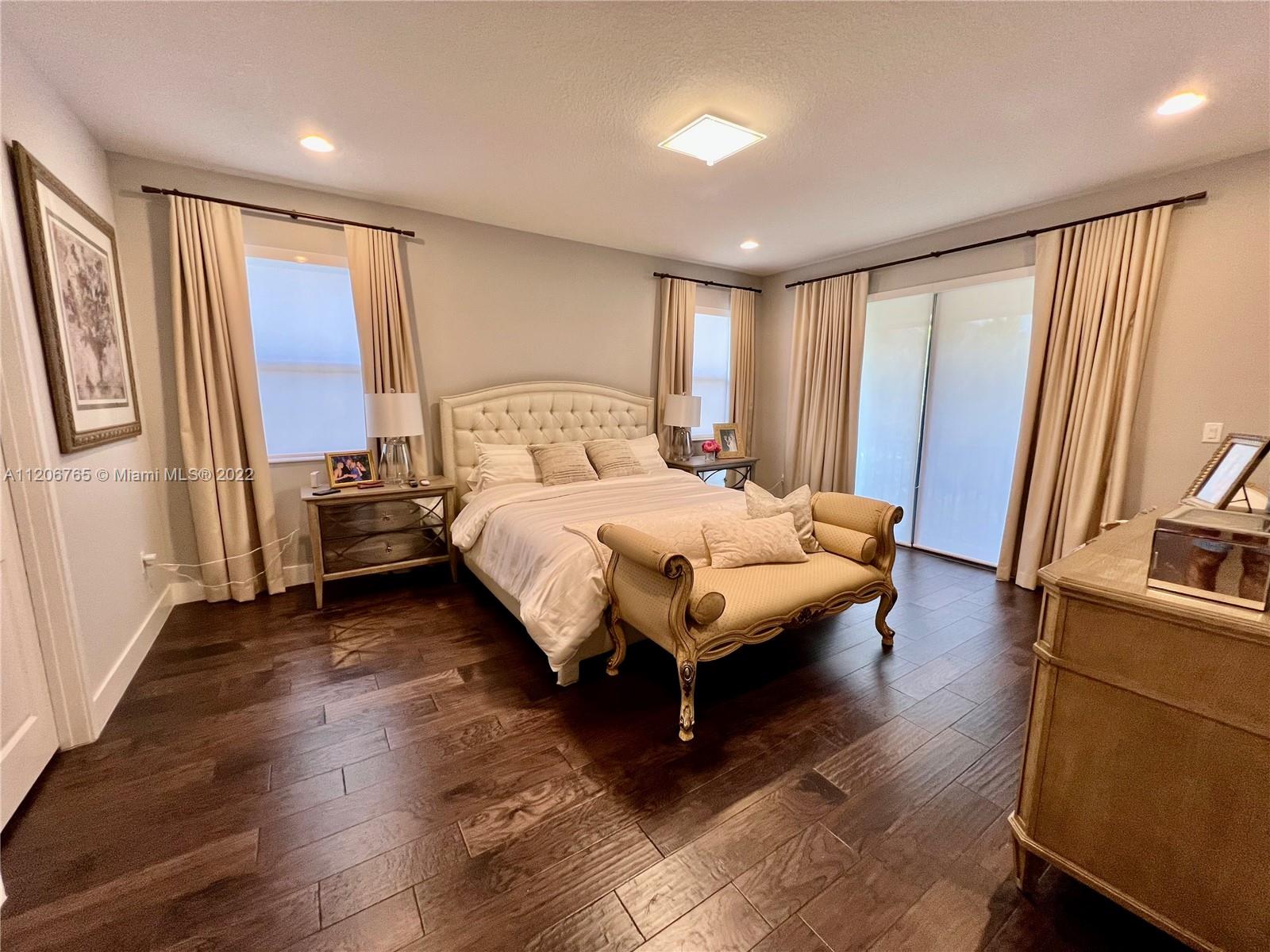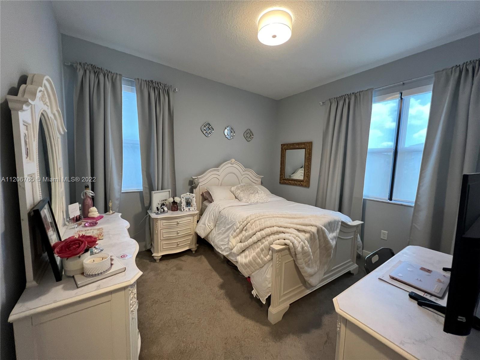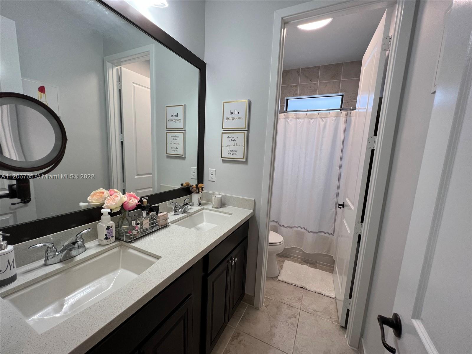 This beautifully upgraded 3 bedroom with 2 1/2 bathroom is a must see. Enjoy the open floor plan with crown moldings and high ceilings, 24 x 24 porcelain tile in the first floor, and impact windows/sliders throughout. The kitchen has custom cabinetry with stainless steel appliances, granite countertops and marble backsplash. The stairs, second floor and master bedroom have high-end laminate flooring with carpeting in the 2nd and 3rd bedrooms. Large loft area can be converted into 4th bedroom. The backyard is completely fenced in with greenery for privacy. Spacious patio has extended paver area for entertaining. Bonterra is a gated community with 24 hour security and amenities including pool, playground, gym and clubhouse. Easy access to I-75, Turnpike and Palmetto expressway.
