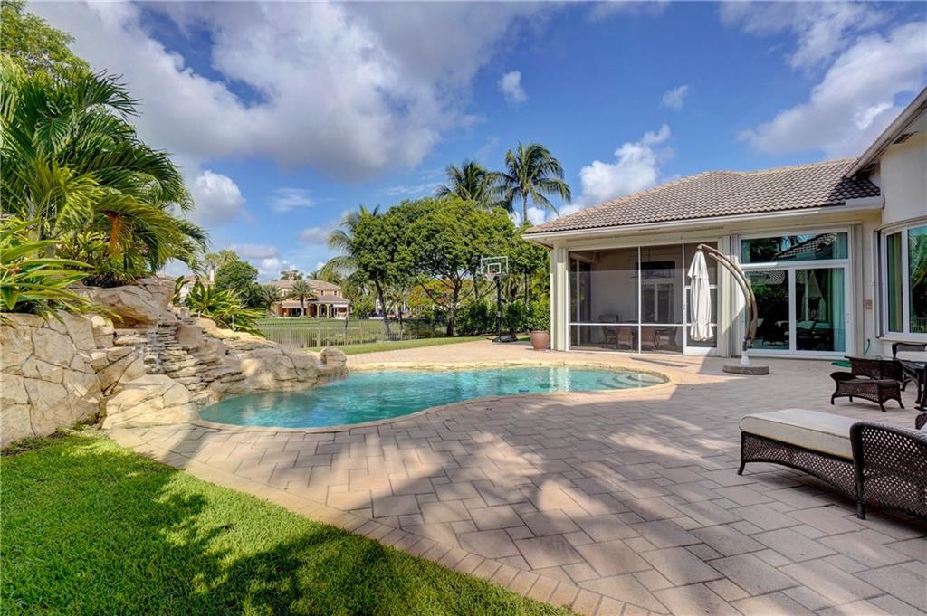 5 Bedroom, 4 1/2 Bath Pool & Waterfront Home. 5th bedroom has been converted to an office. Every bedroom has its own bathroom. Heron Bay - with a second gate for The Falls. 3 car garage. Circular driveway. Wood floors. Impact windows and doors. Screened area and open pool with amazing rock waterfall. Landscape lighting. Working fireplace. Central Vacuum. Mosquito mister in entire backyard. New water heater. High solid core doors. Crown molding. Gated community with 2 clubhouses, community pool, tennis, basketball, large fitness center, plus much more.